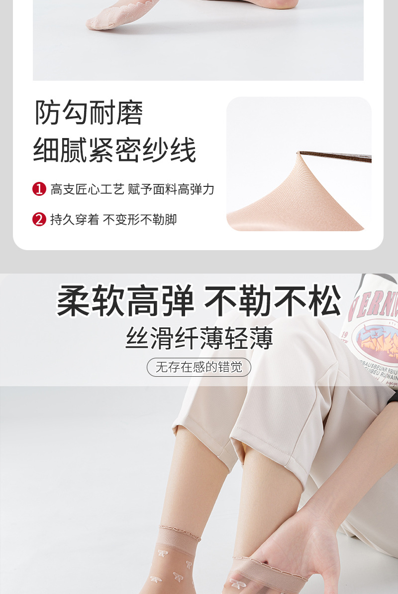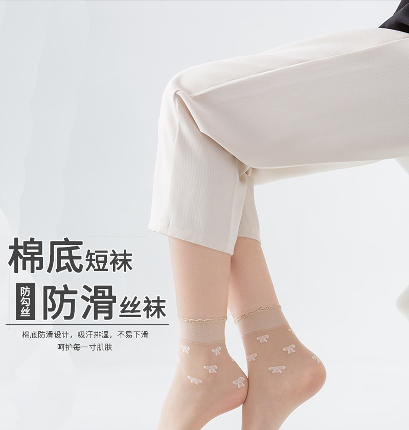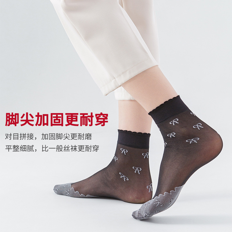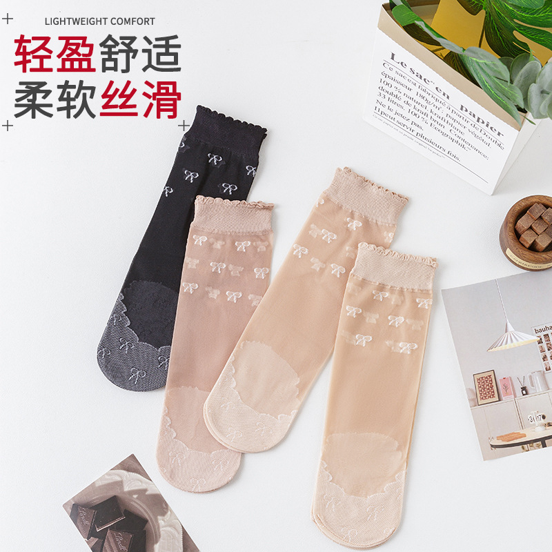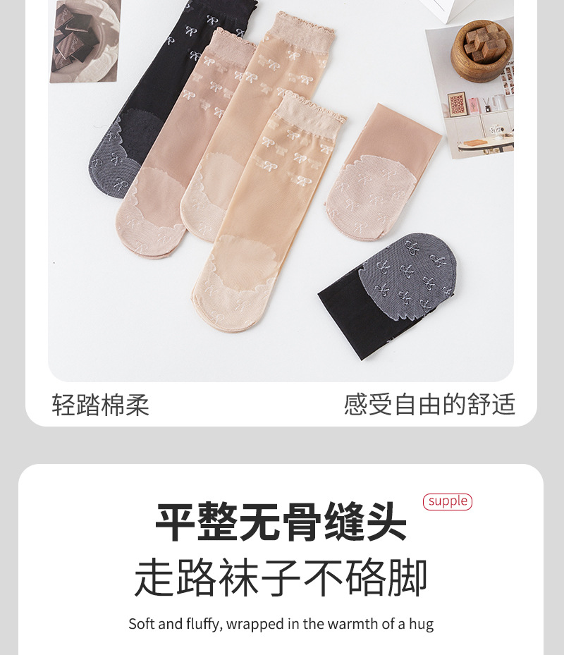 丝袜女夏薄款隐形透气蝴蝶结女袜子吸汗短筒防滑丝袜短款百搭