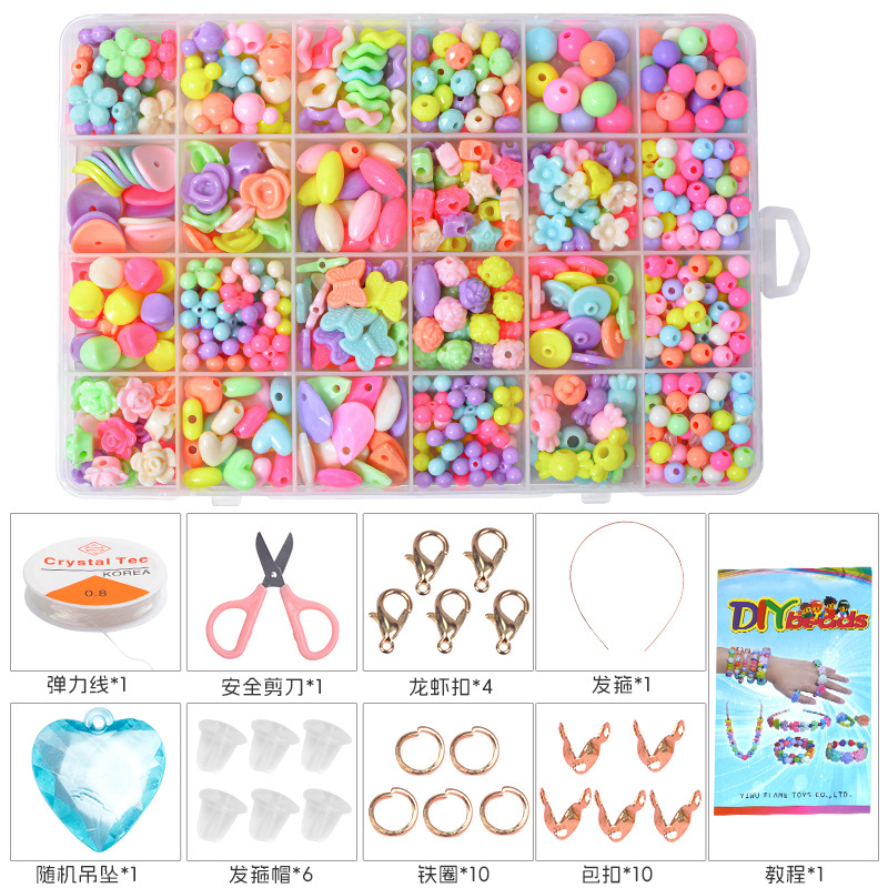 24格儿童串珠益智玩具女孩DIY穿珠子手链项链材料包串珠配饰散珠