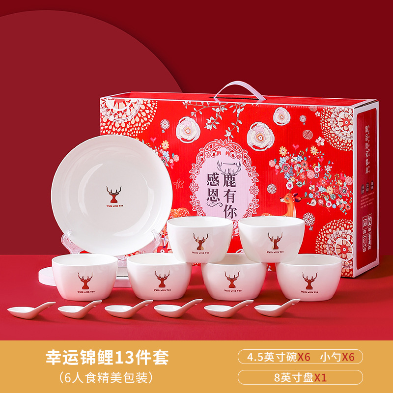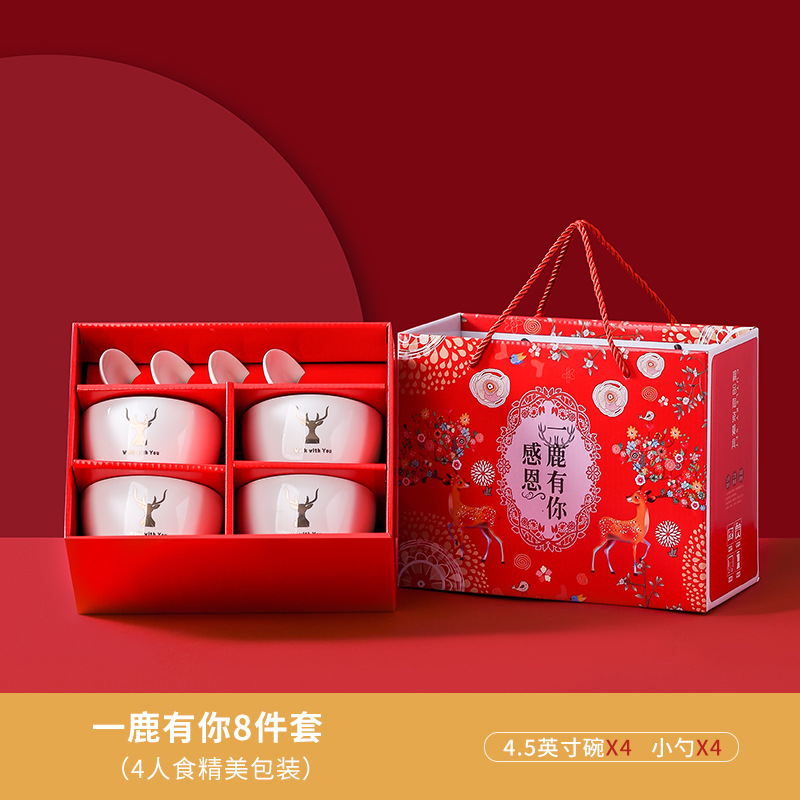 一鹿有你碗勺盘套装陶瓷餐具套装礼盒活动会销礼品批发碗碟套装
