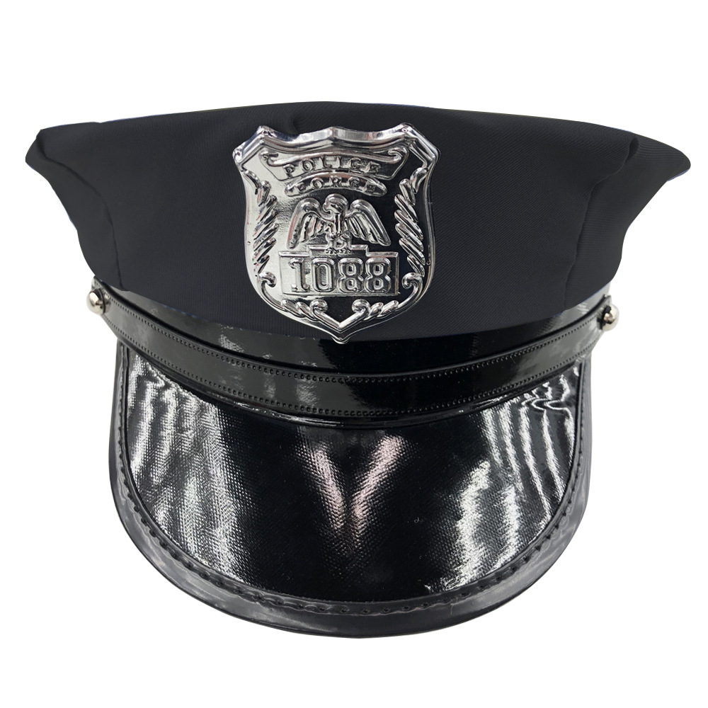 跨境欧美警察帽黑色成人女警义乌万圣节平顶八角帽服装配饰帽子