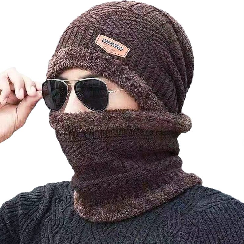 帽子男冬天韩版加绒毛线帽加厚针织帽秋冬季套包头棉帽保暖帽女士
