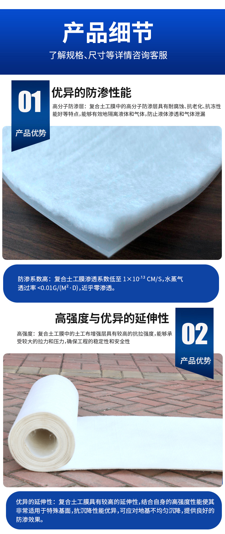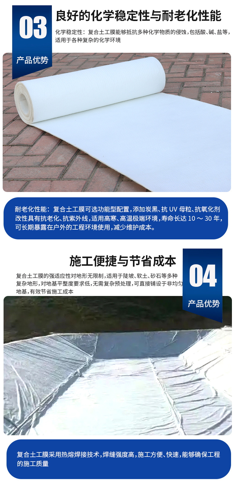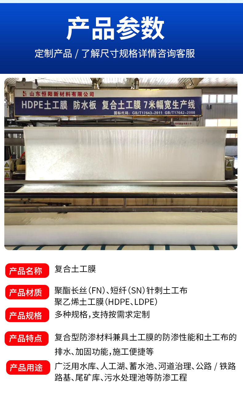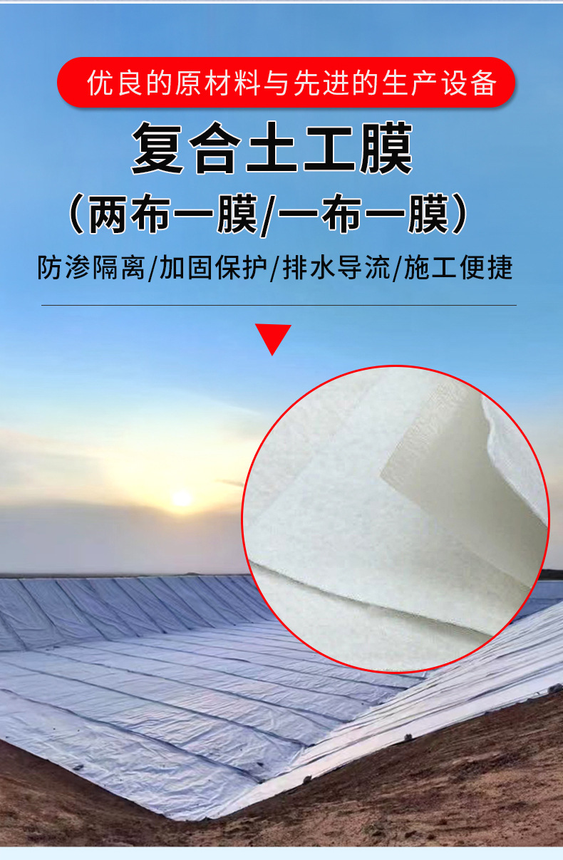 两布一膜复合土工膜河道治理水库蓄水池防渗复合土工膜生产厂家