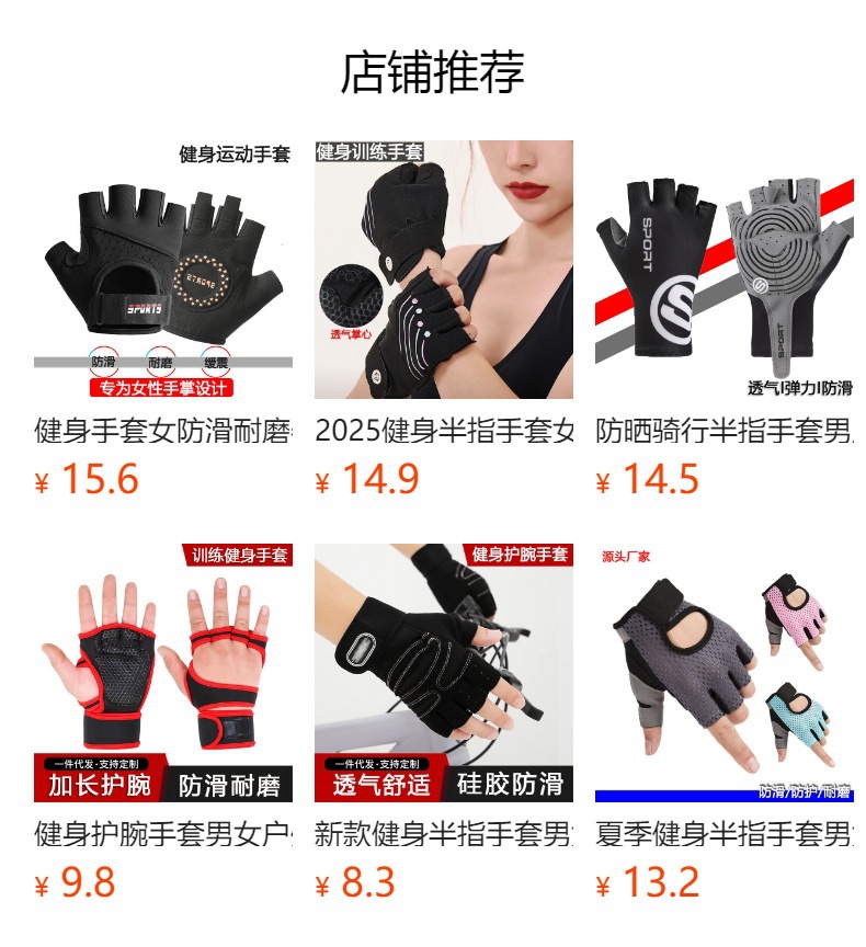 新款健身手套男女防护防滑护腕杠铃骑行运动装备半指手套外贸跨境