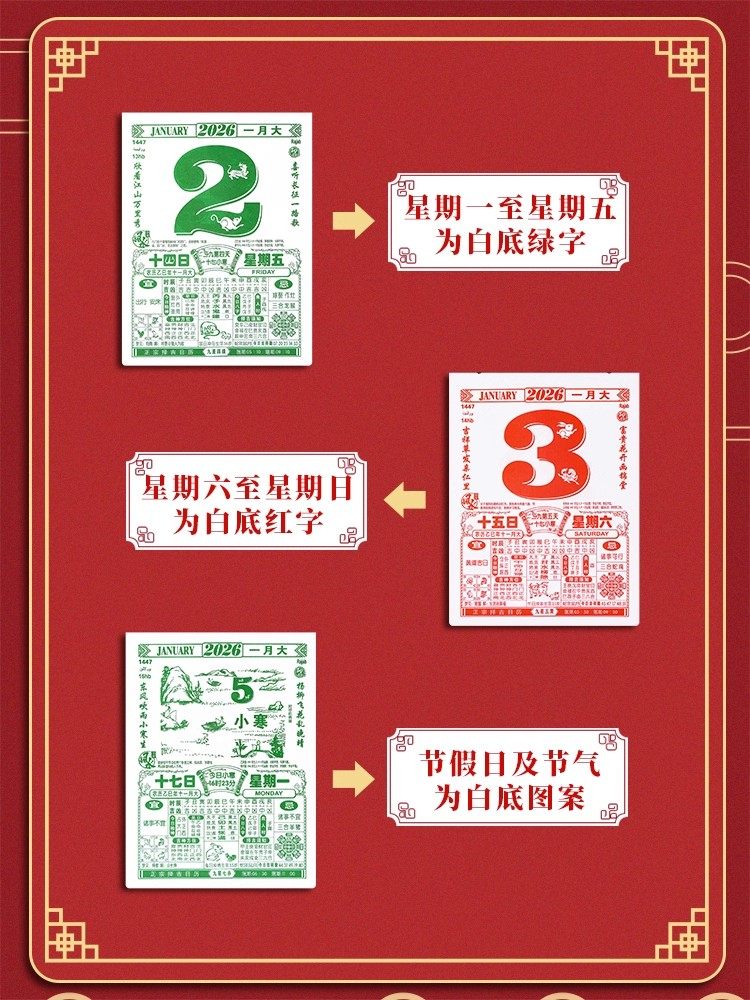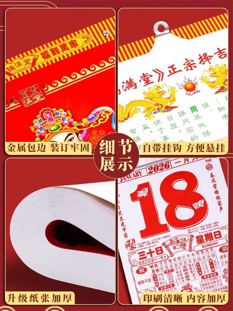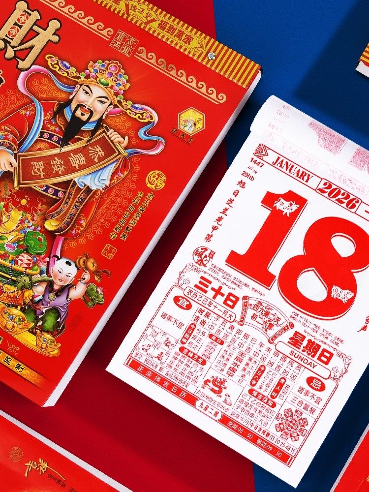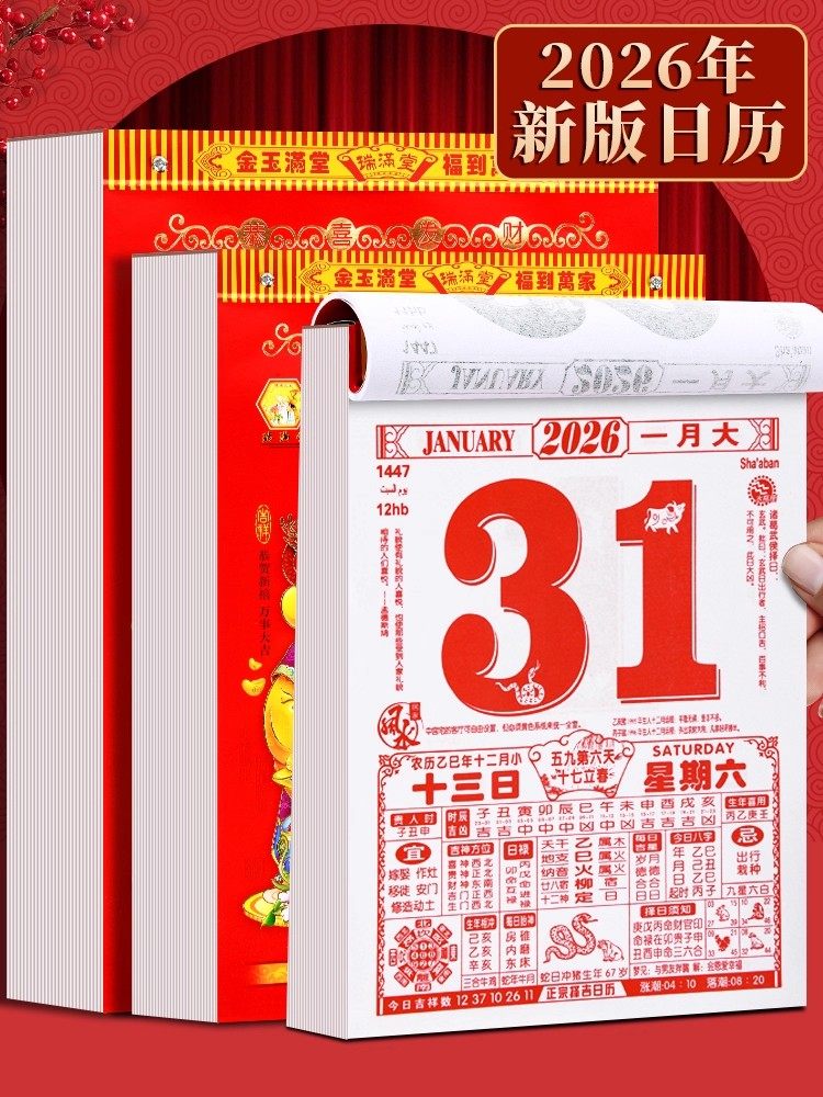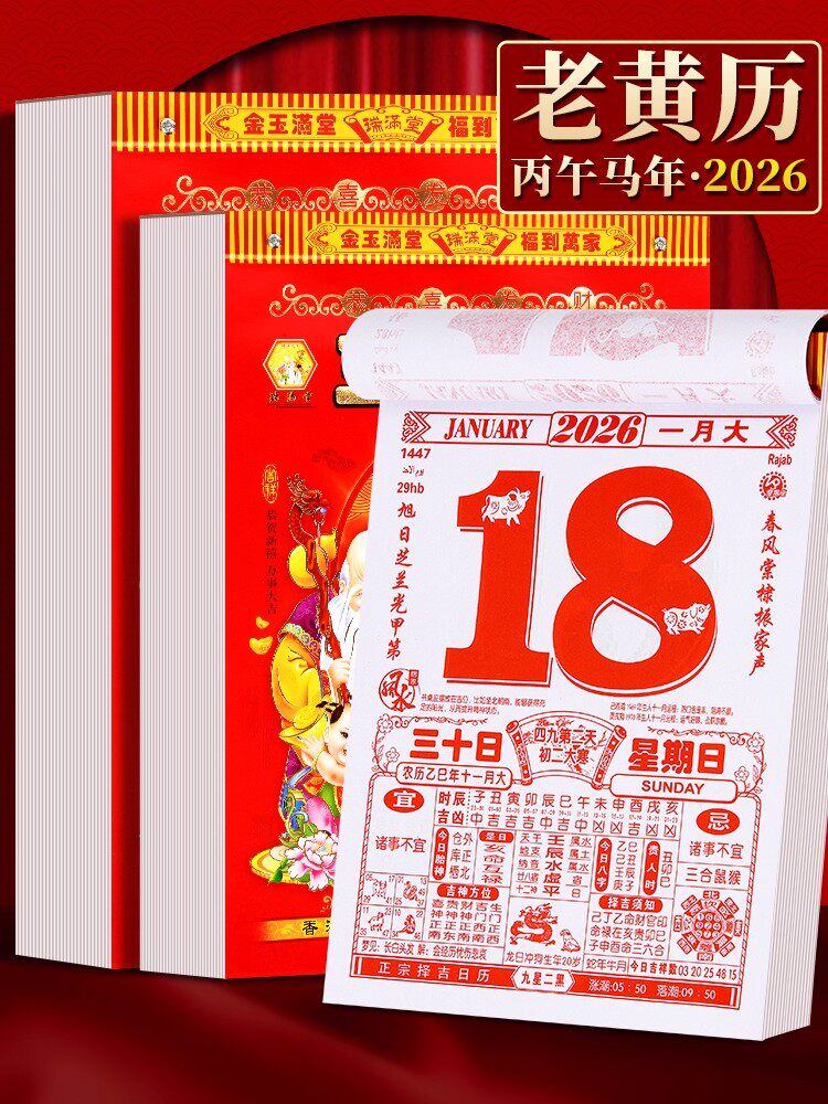 新款2026马年老黄历日历家用大号老式挂历手撕农历年历本一天一页