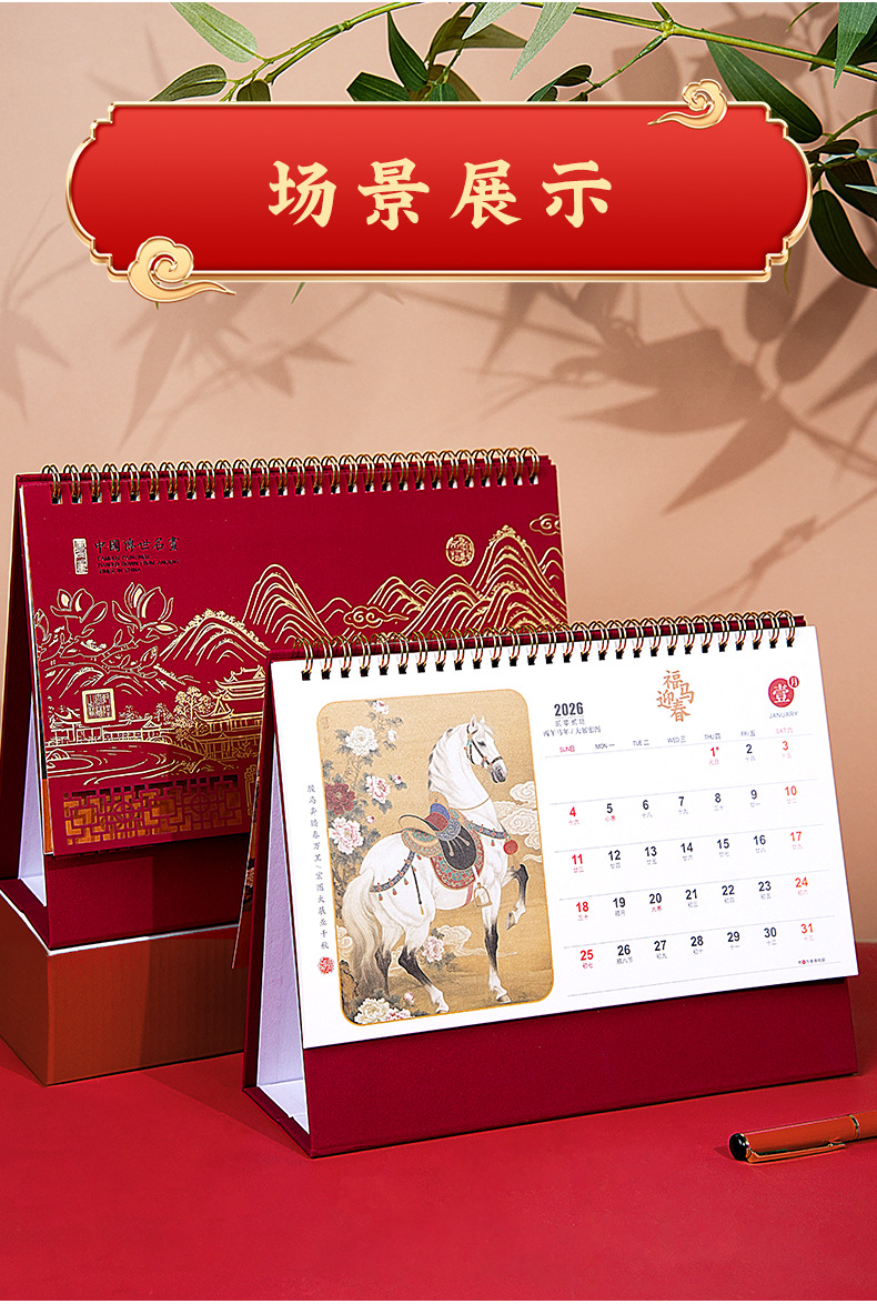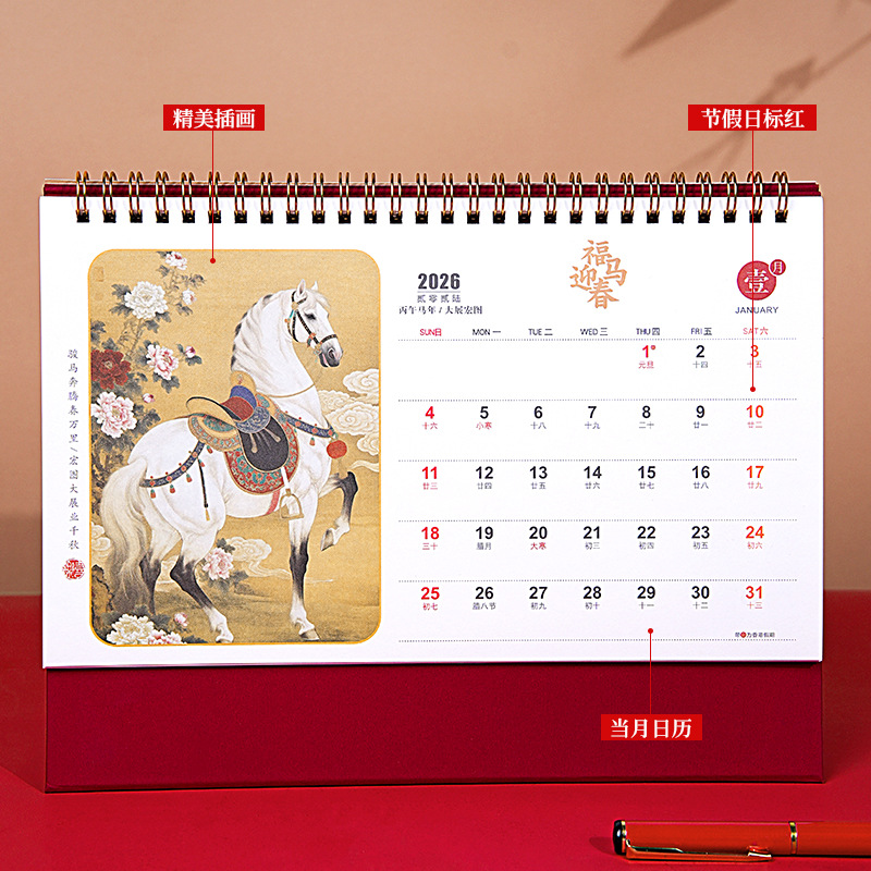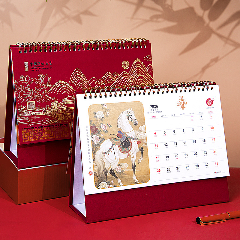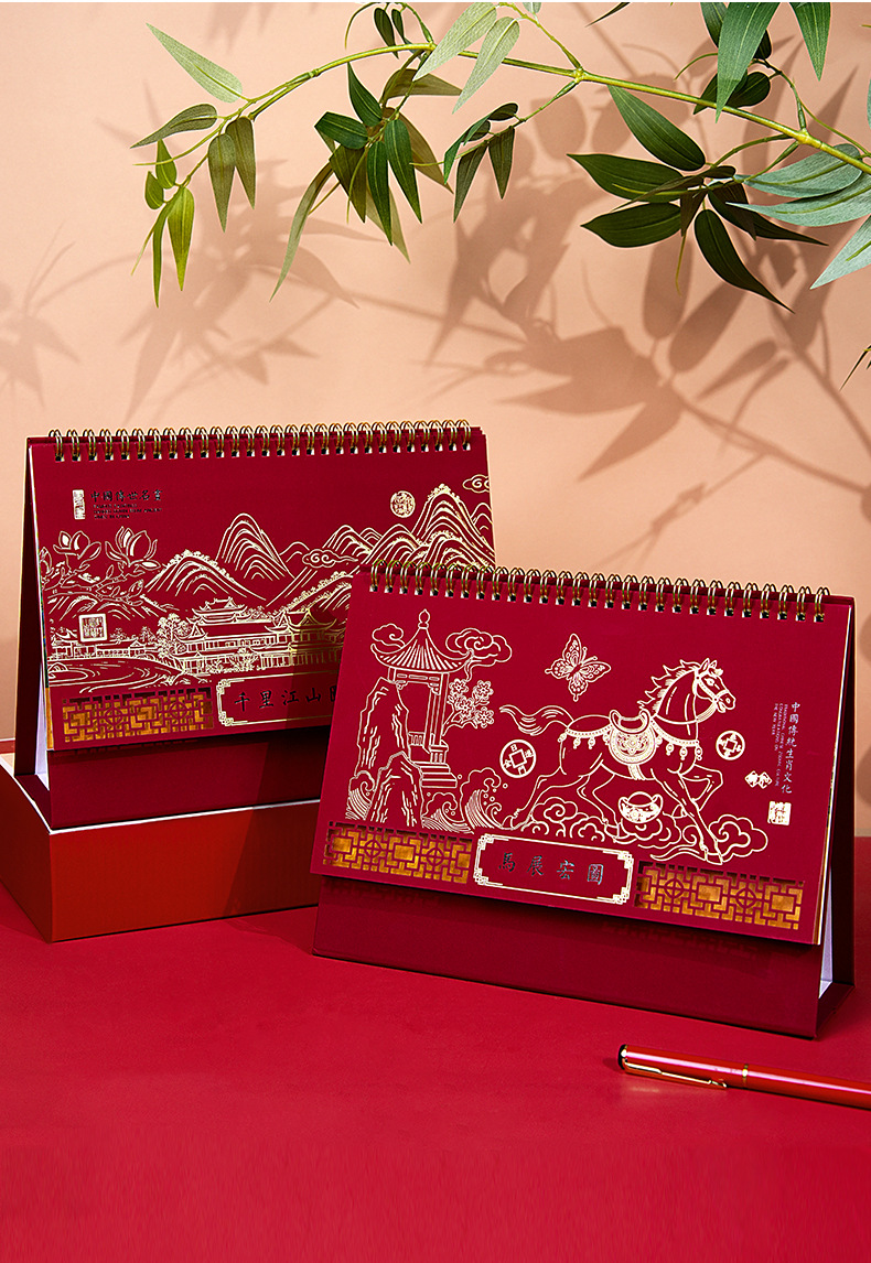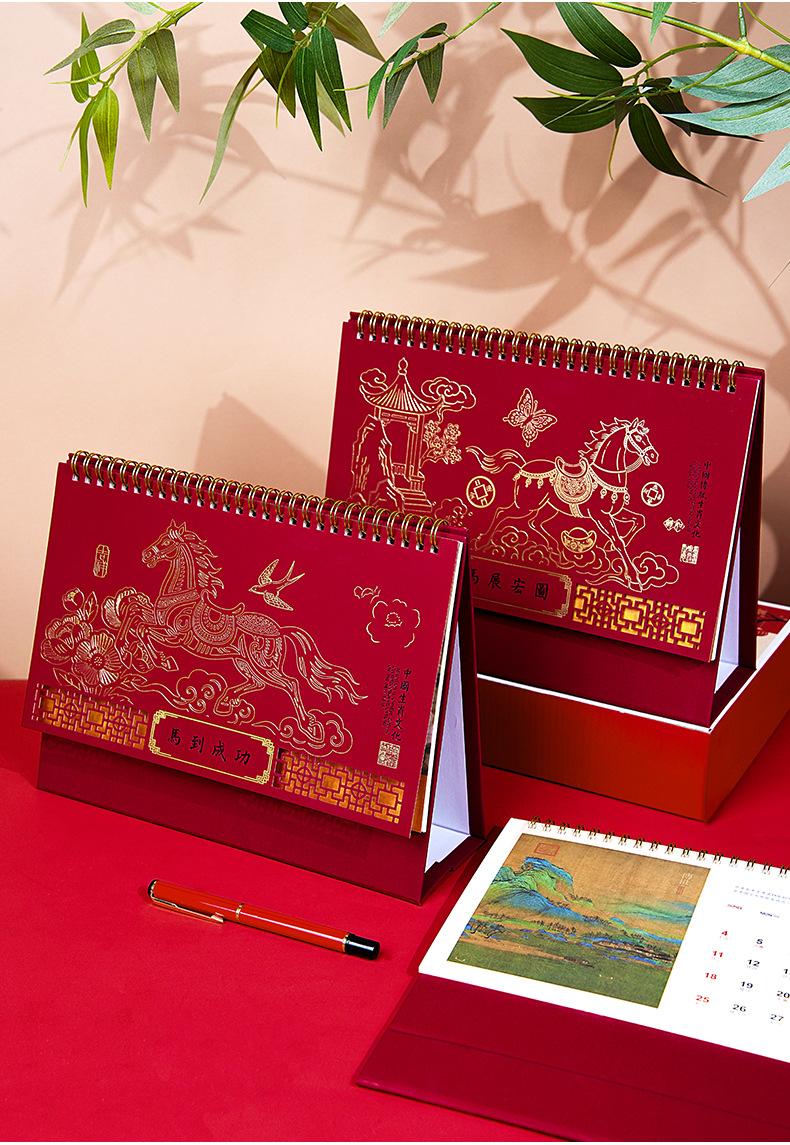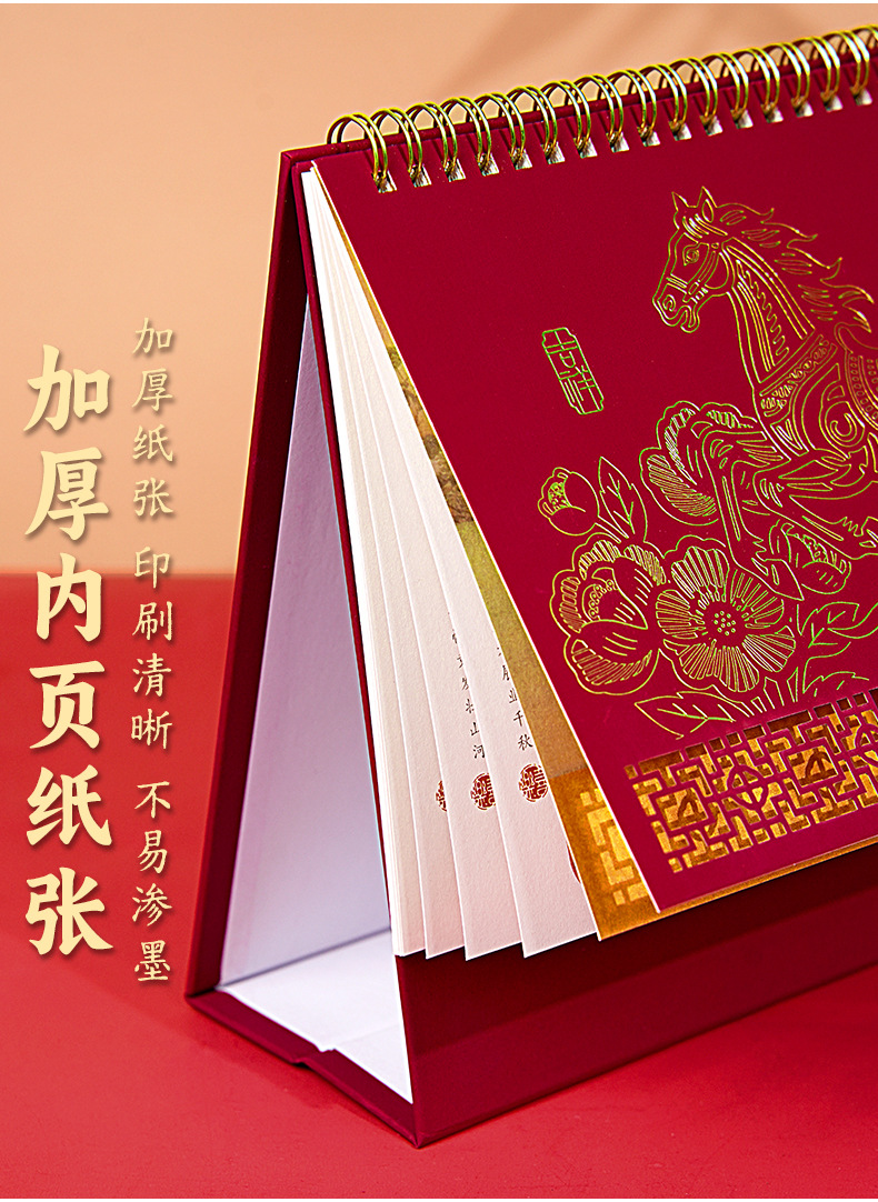 2026年马年台历定制商务办公大号新年日历精品透雕立体十三张台历