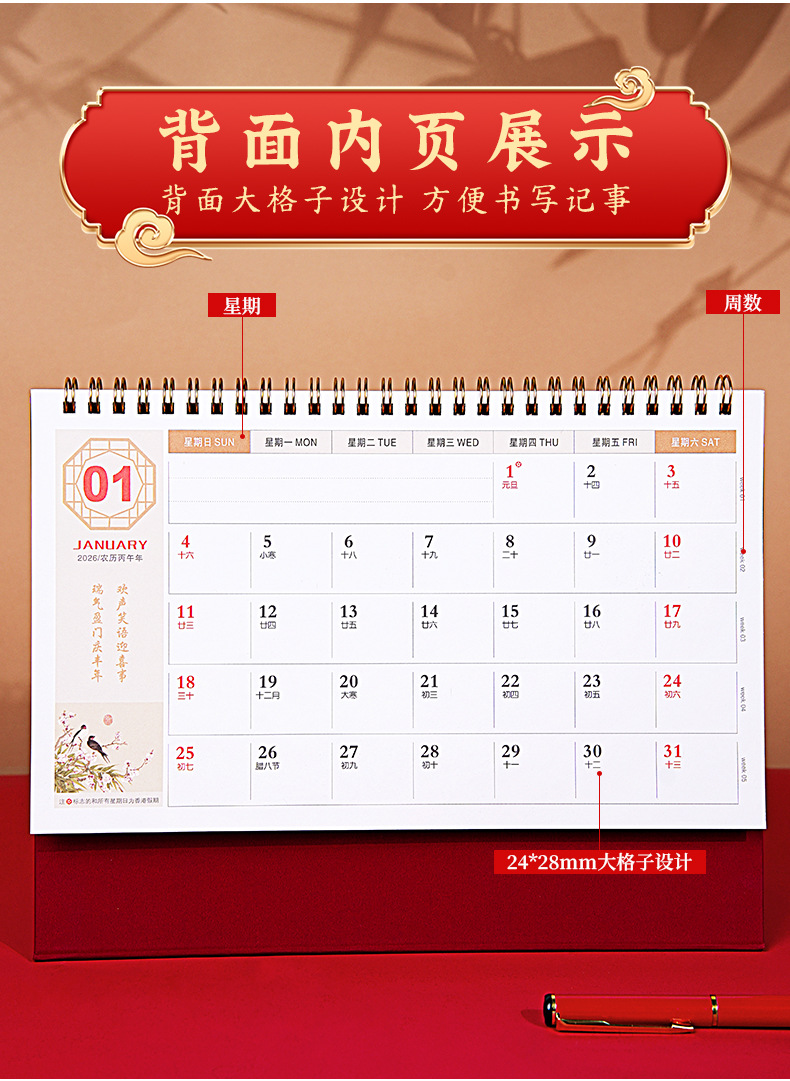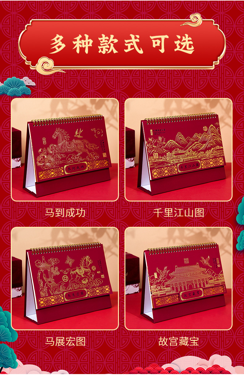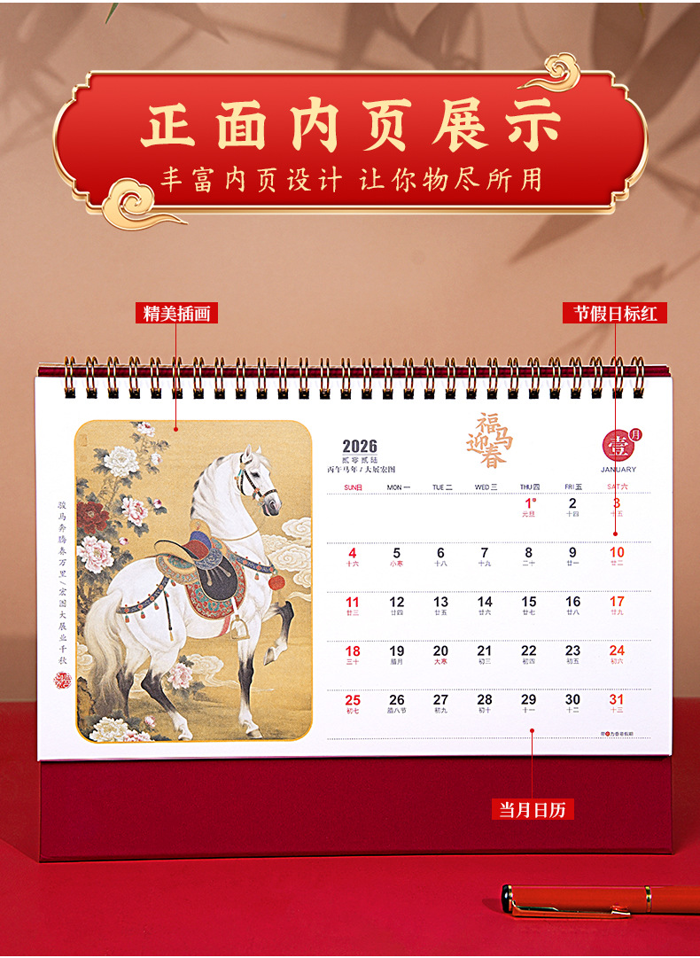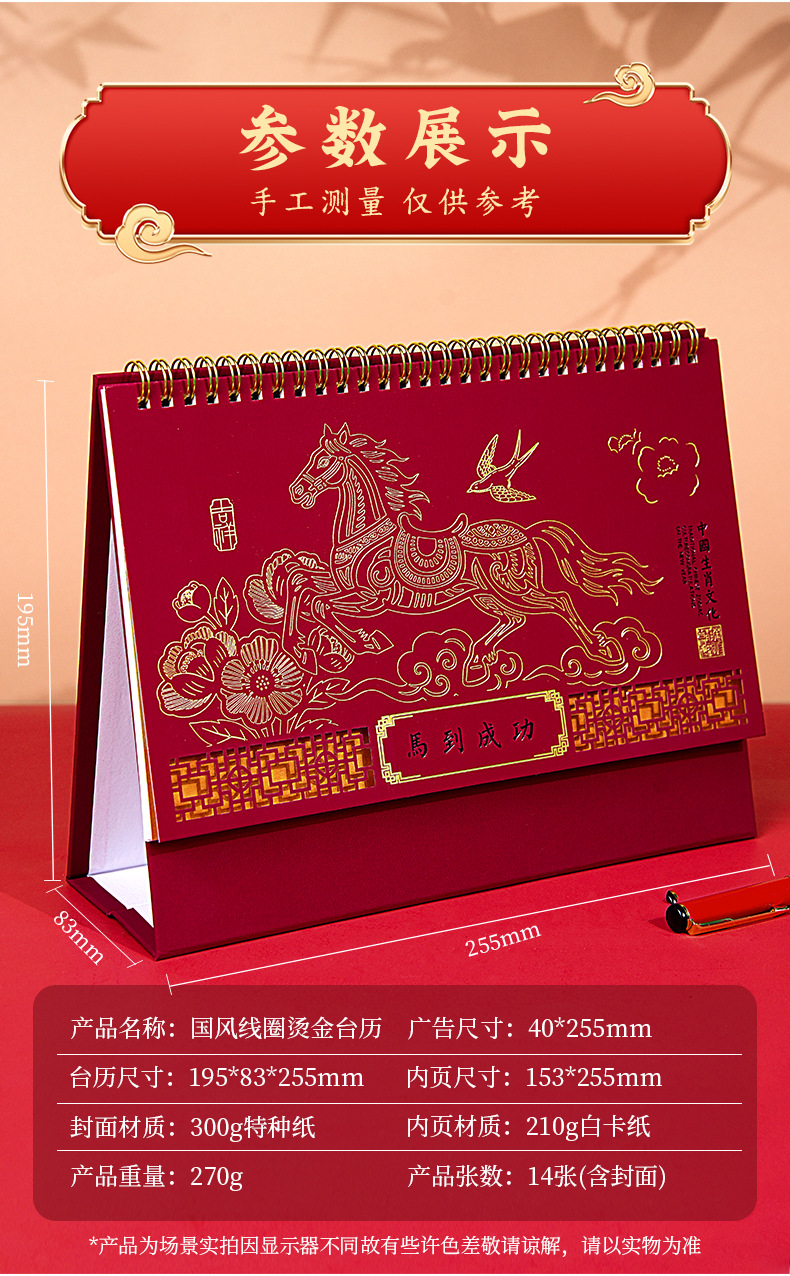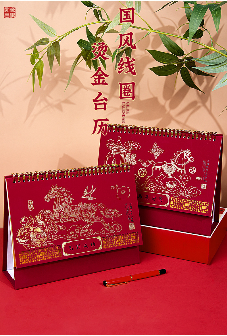 2026年马年台历定制商务办公大号新年日历精品透雕立体十三张台历
