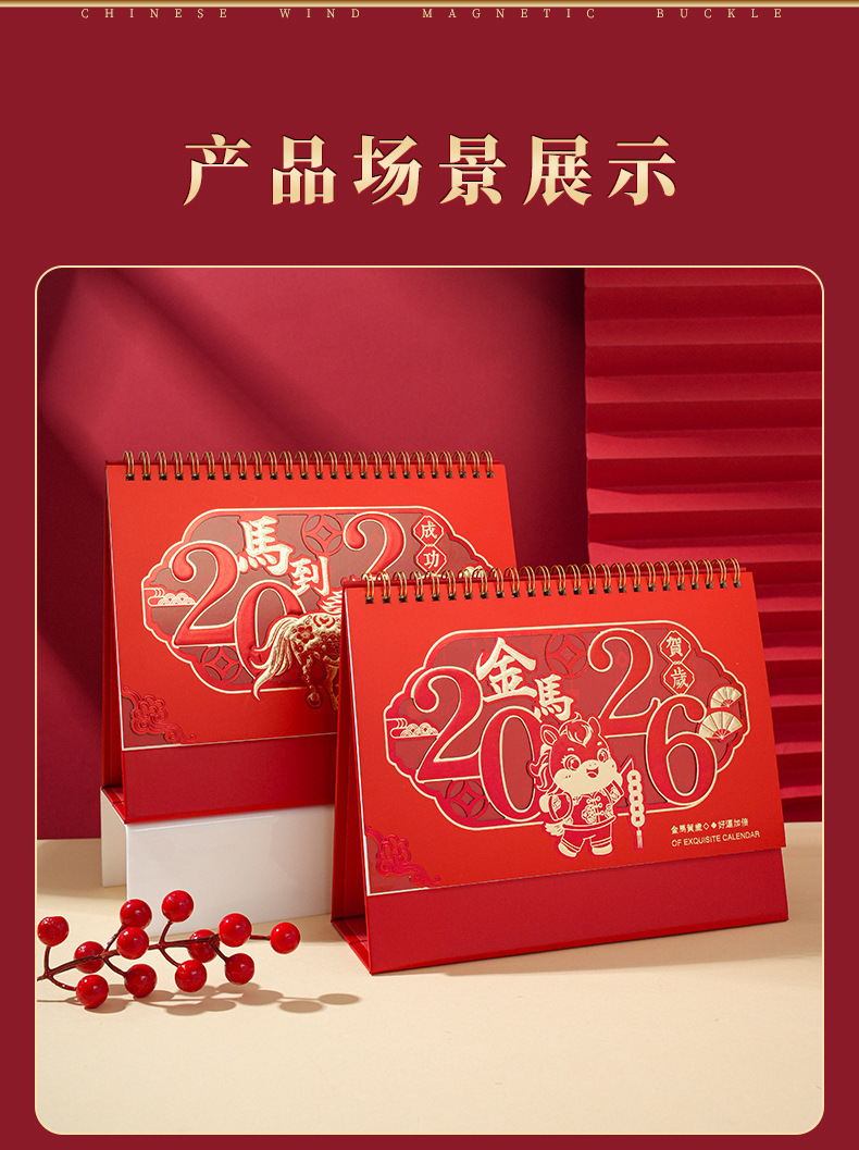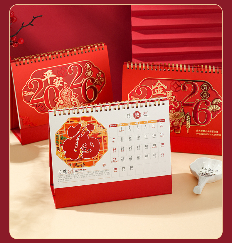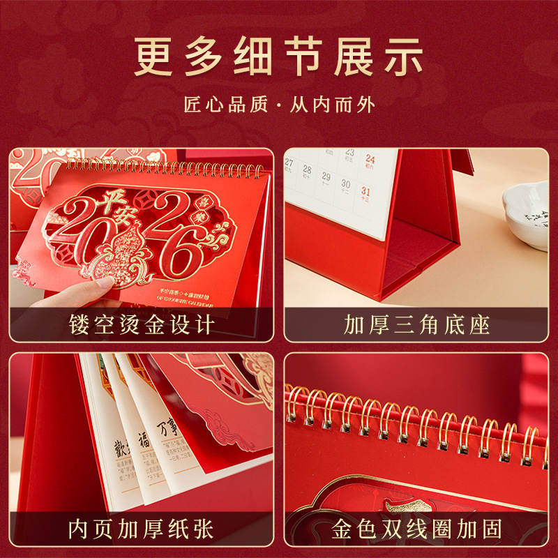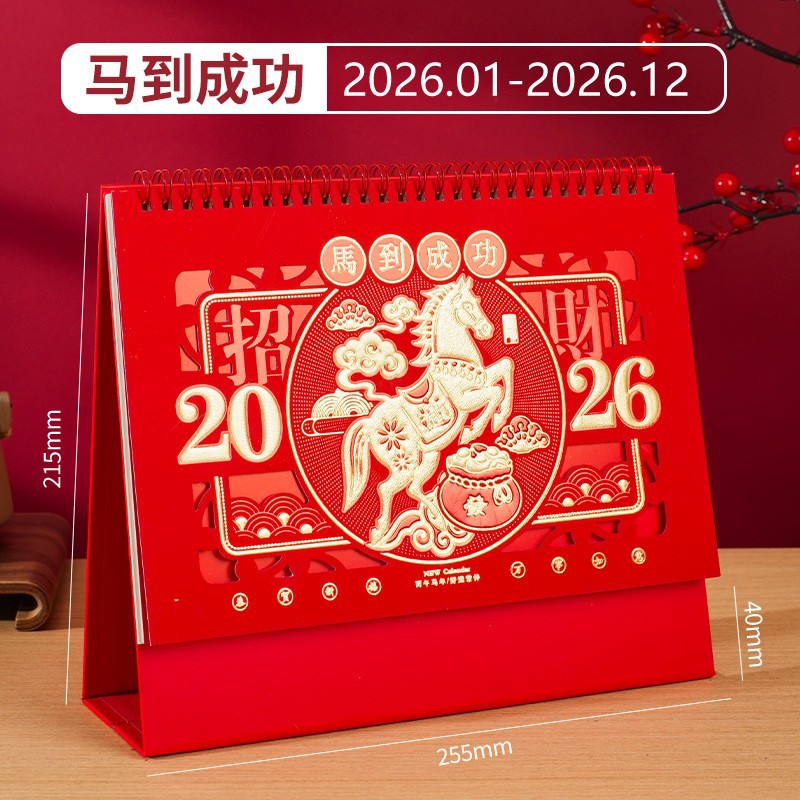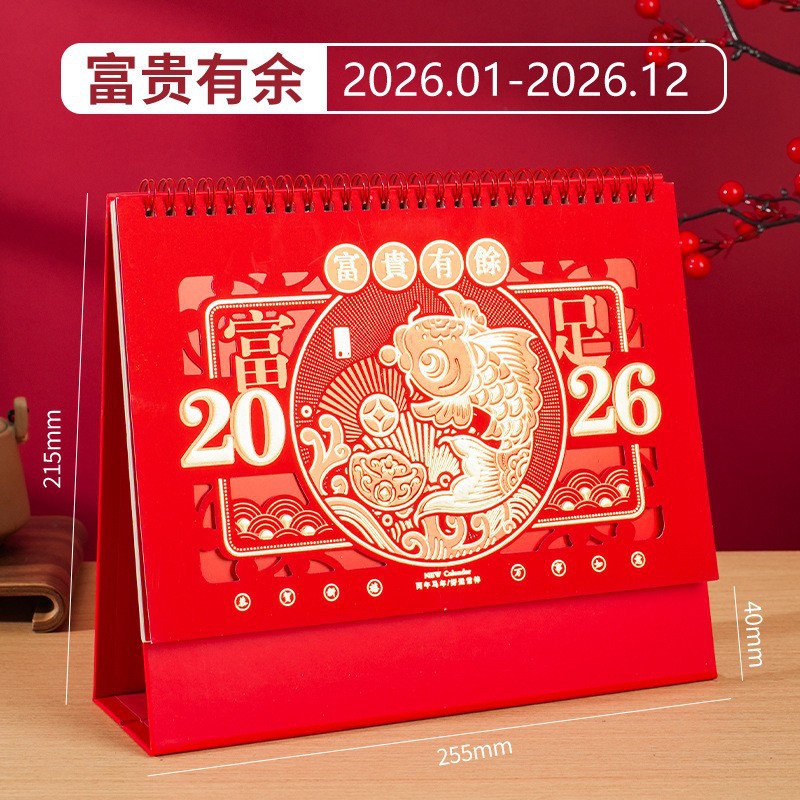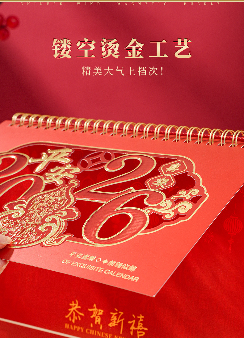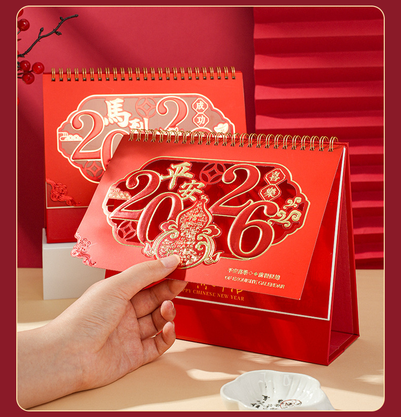 2026年新款红色喜庆台历办公桌面镂空日历摆件商务礼品台历定制
