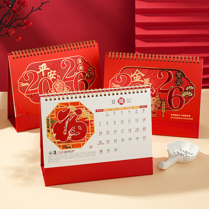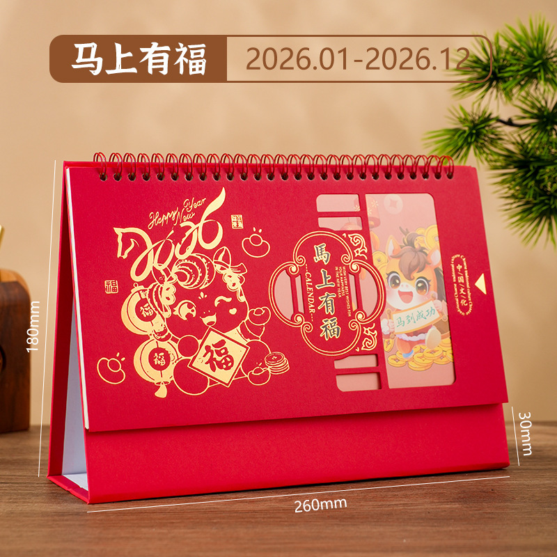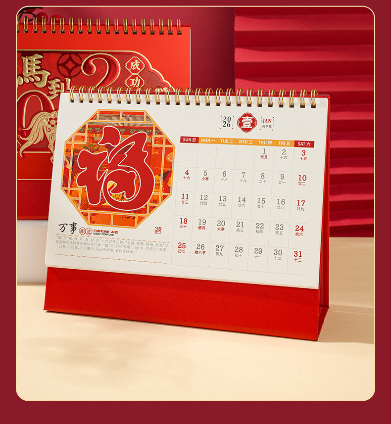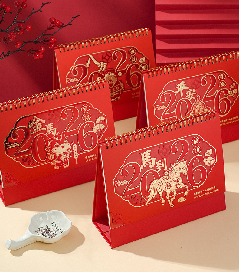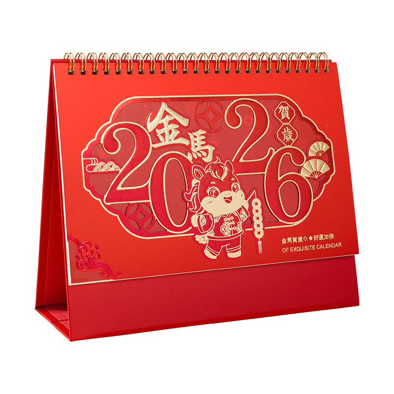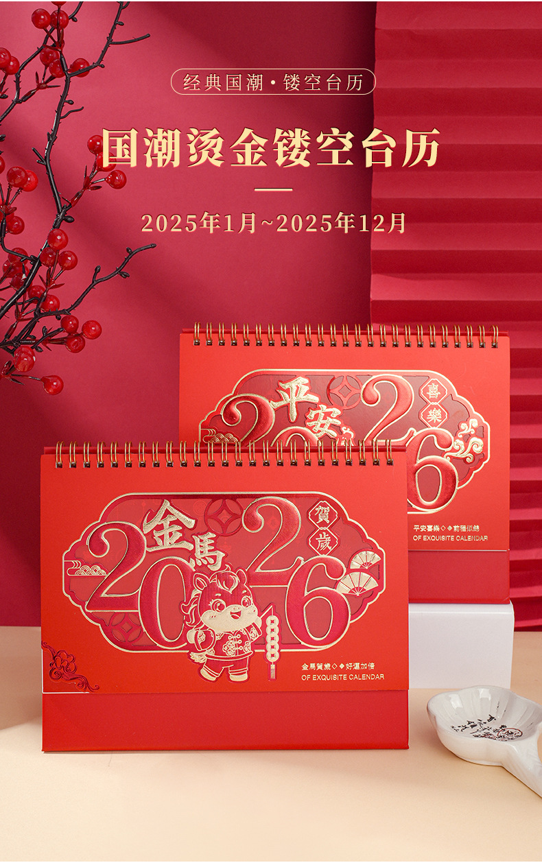 2026年新款红色喜庆台历办公桌面镂空日历摆件商务礼品台历定制