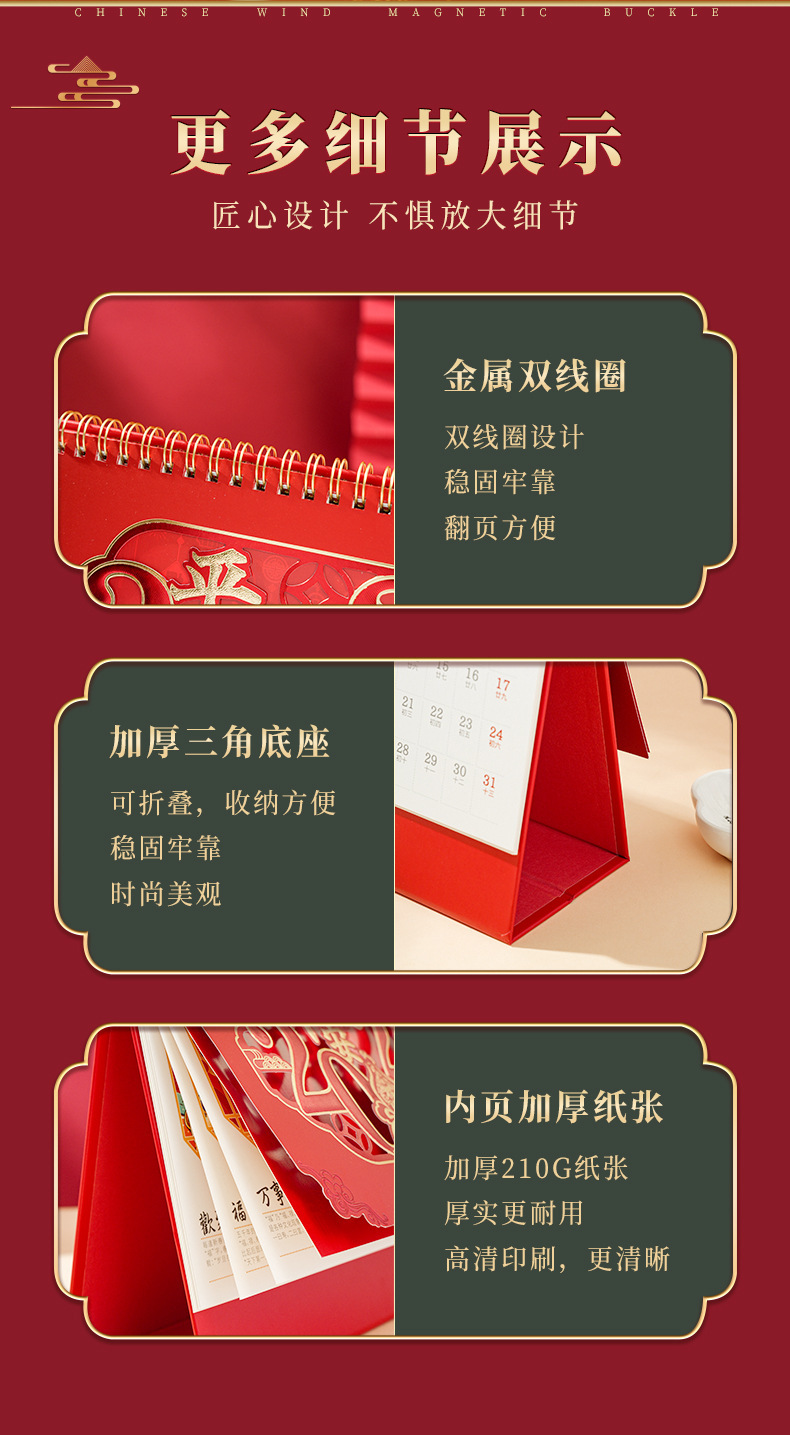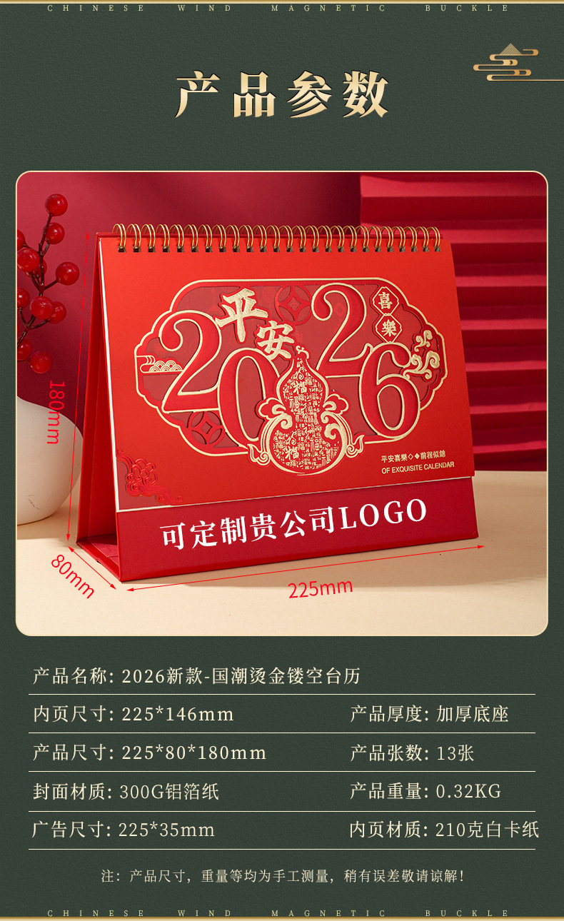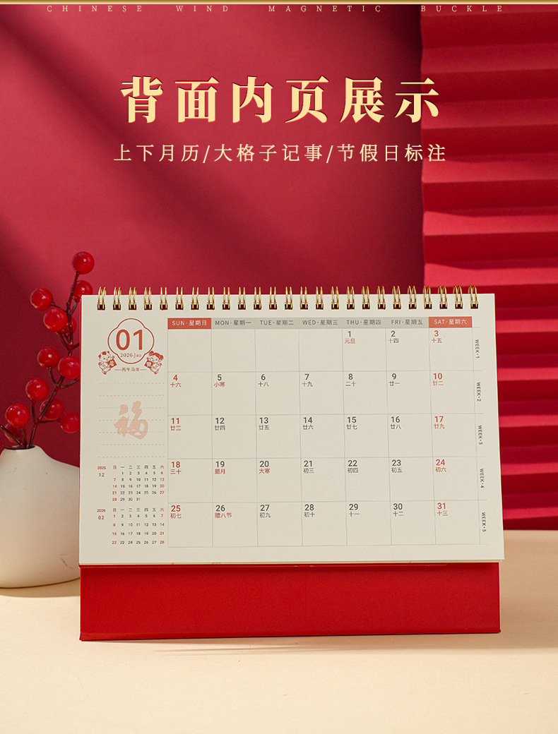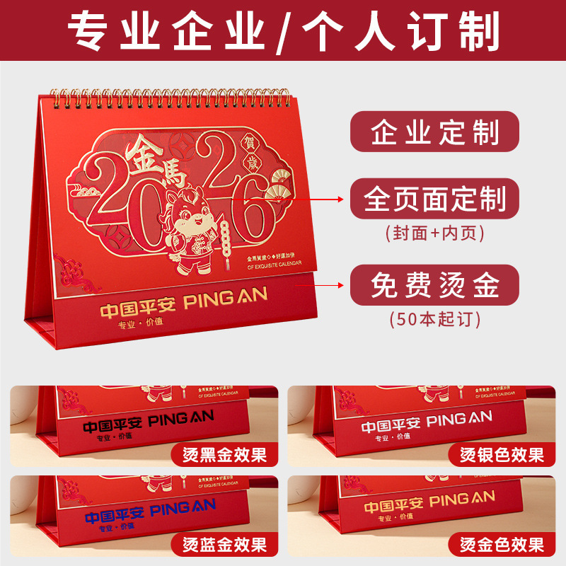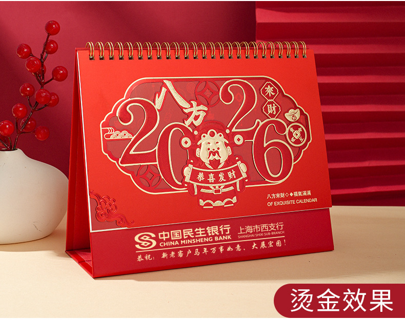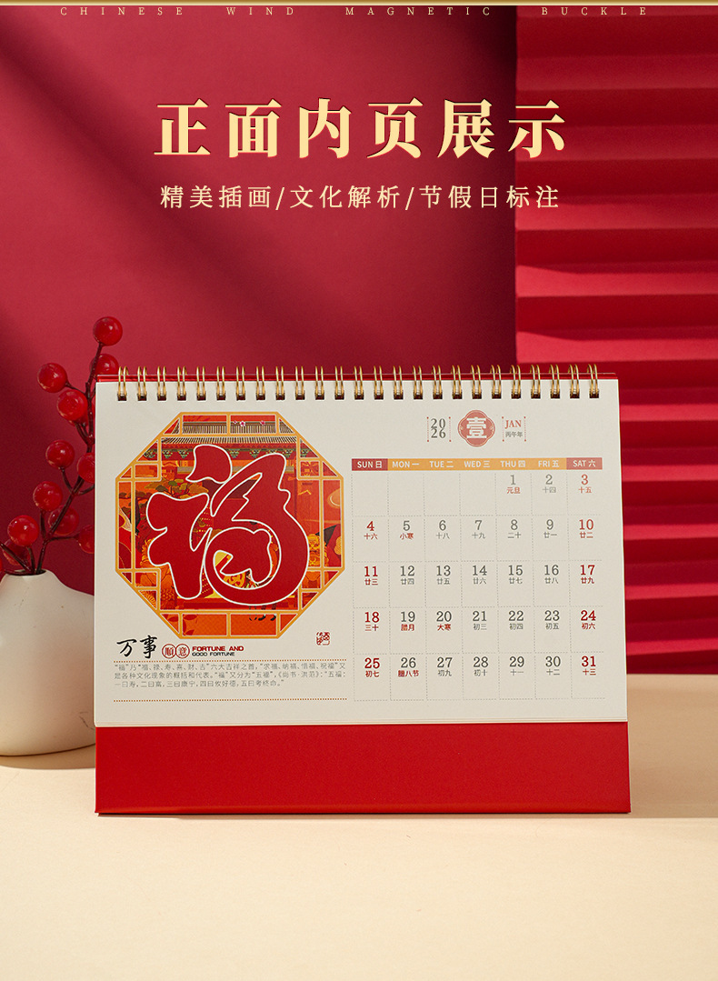 2026年新款红色喜庆台历办公桌面镂空日历摆件商务礼品台历定制