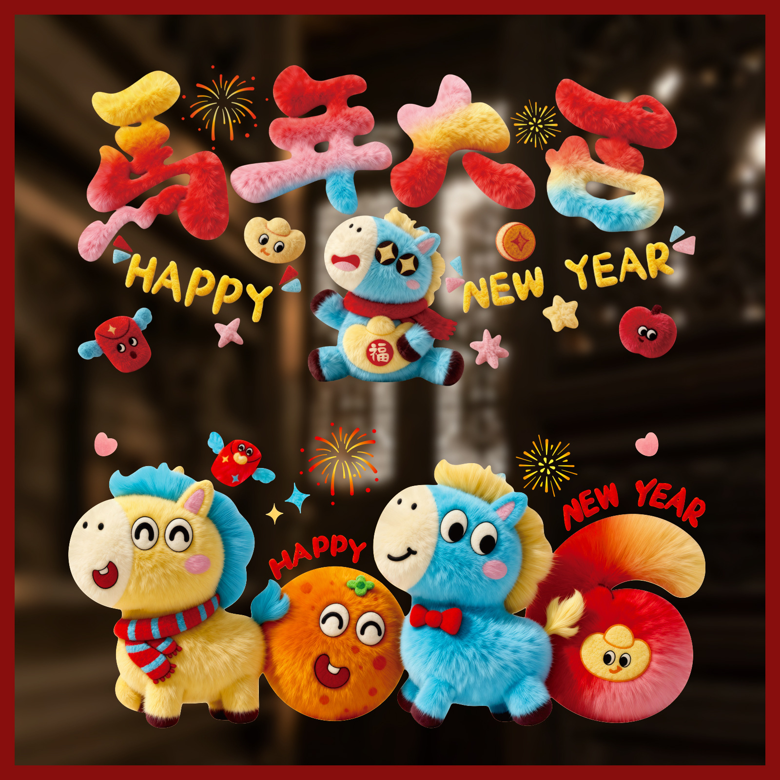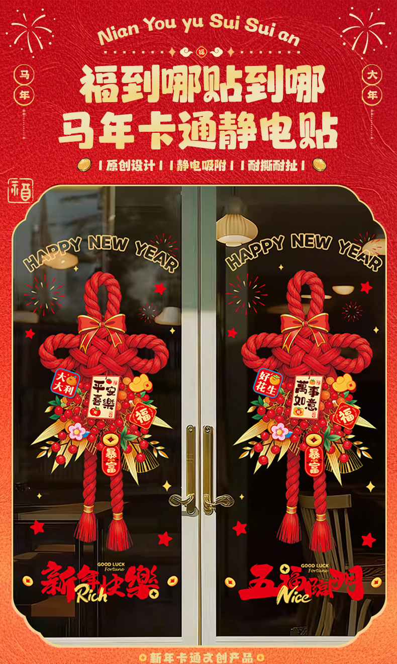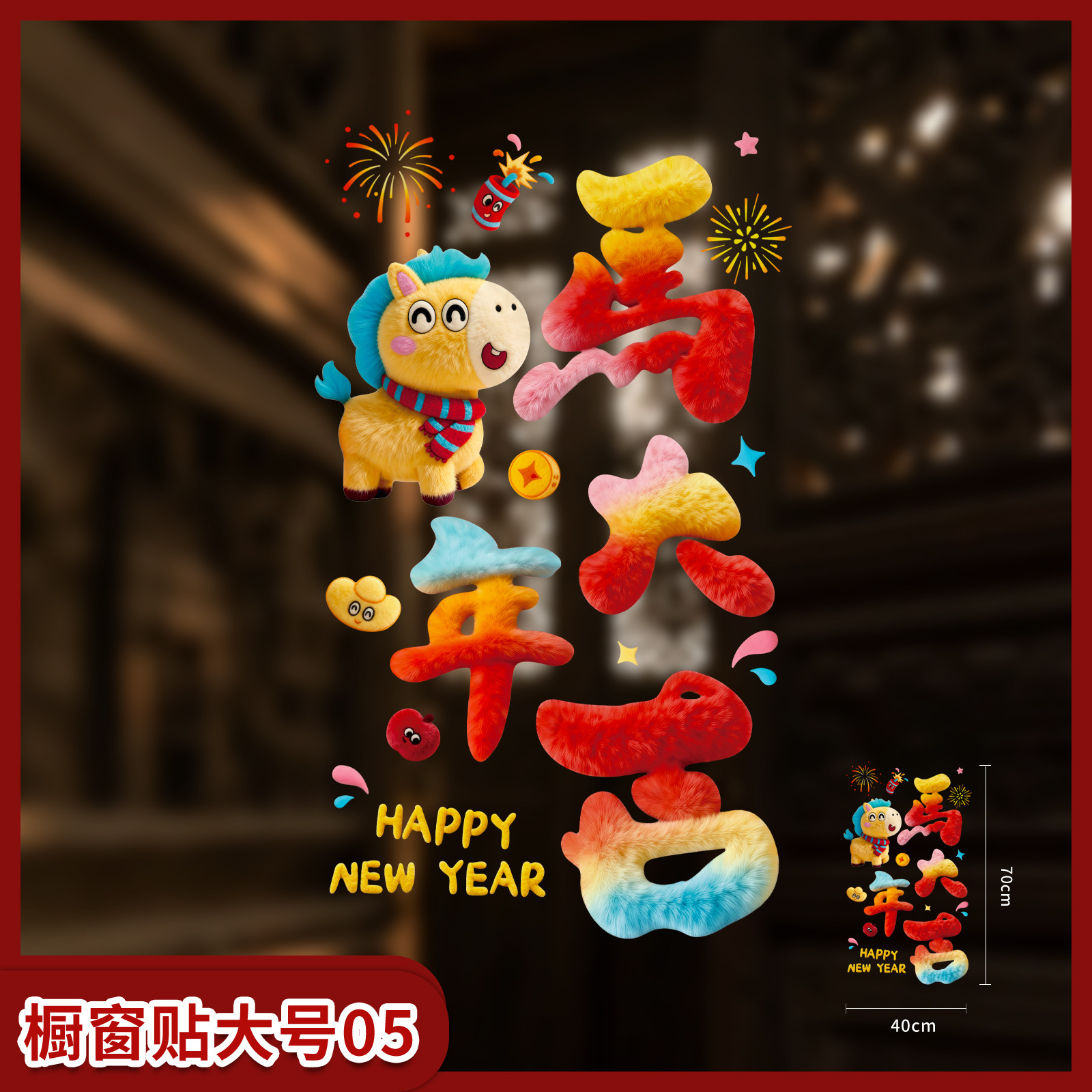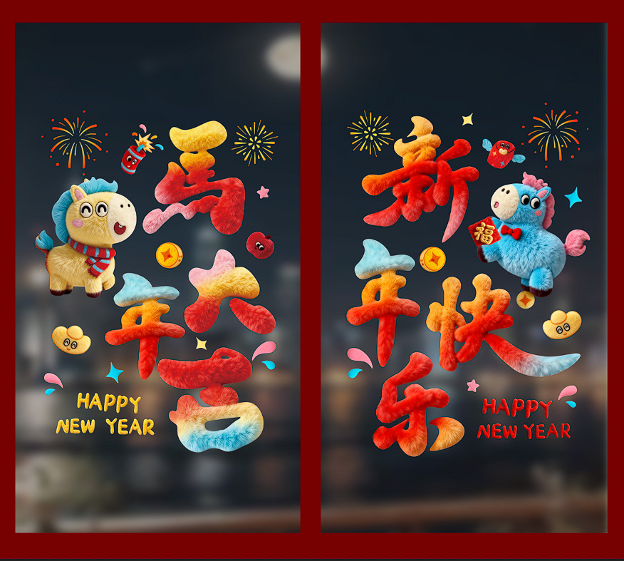 2026马年5D效果静电贴玻璃贴春节橱窗玻璃贴纸福字窗花新年过年装