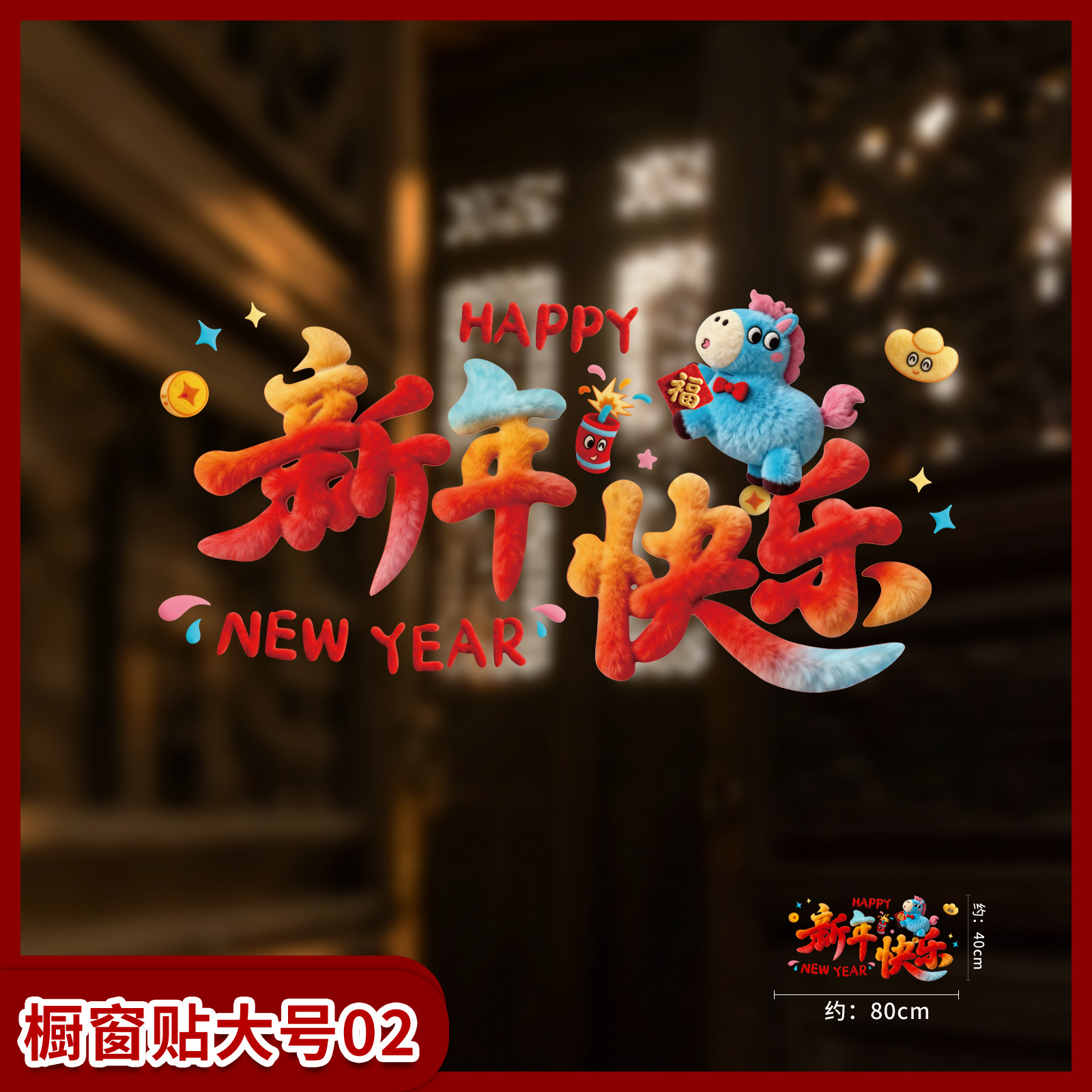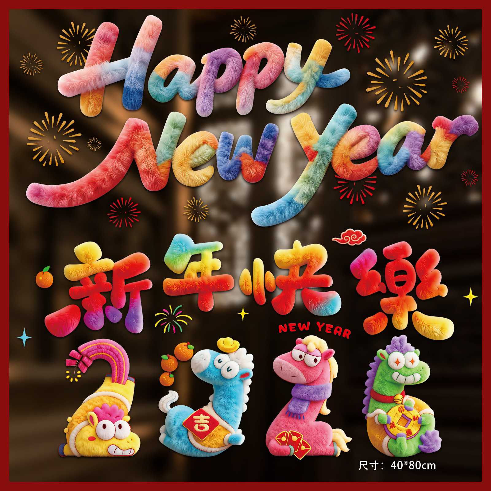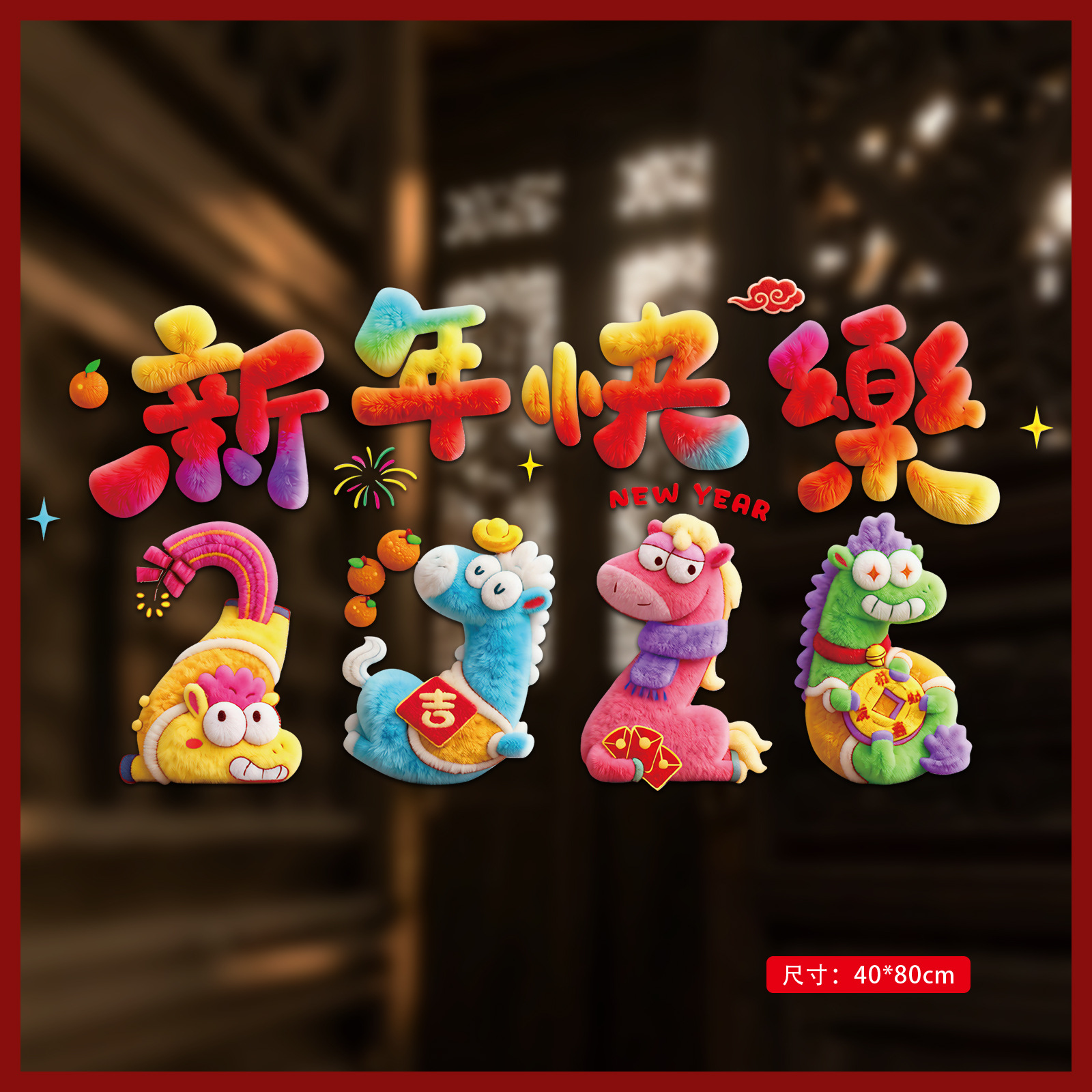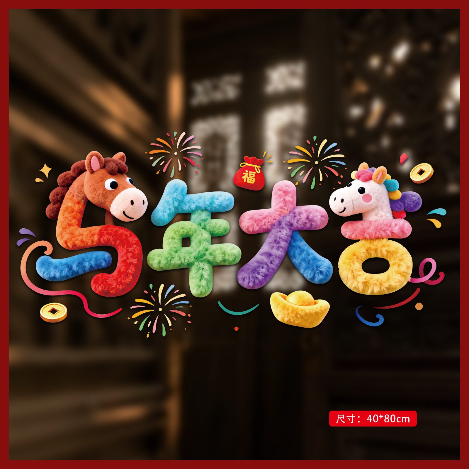 2026马年5D效果静电贴玻璃贴春节橱窗玻璃贴纸福字窗花新年过年装