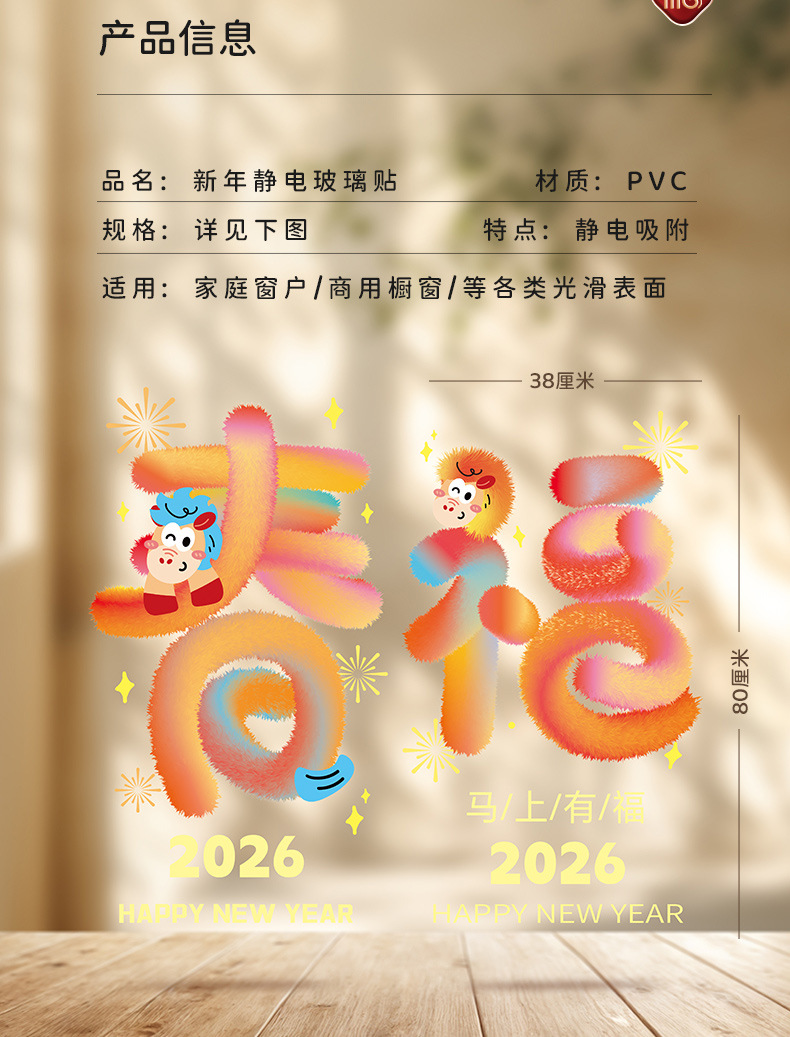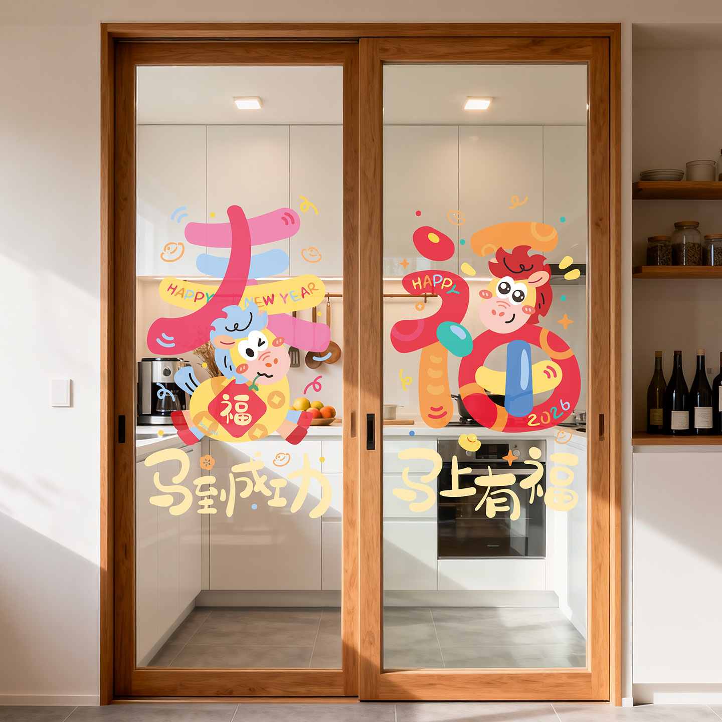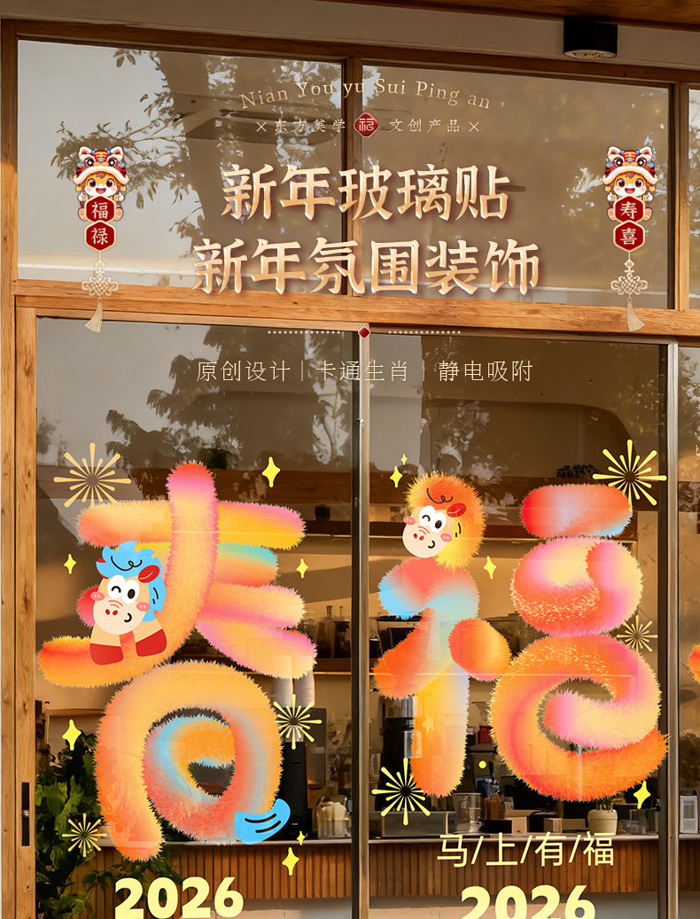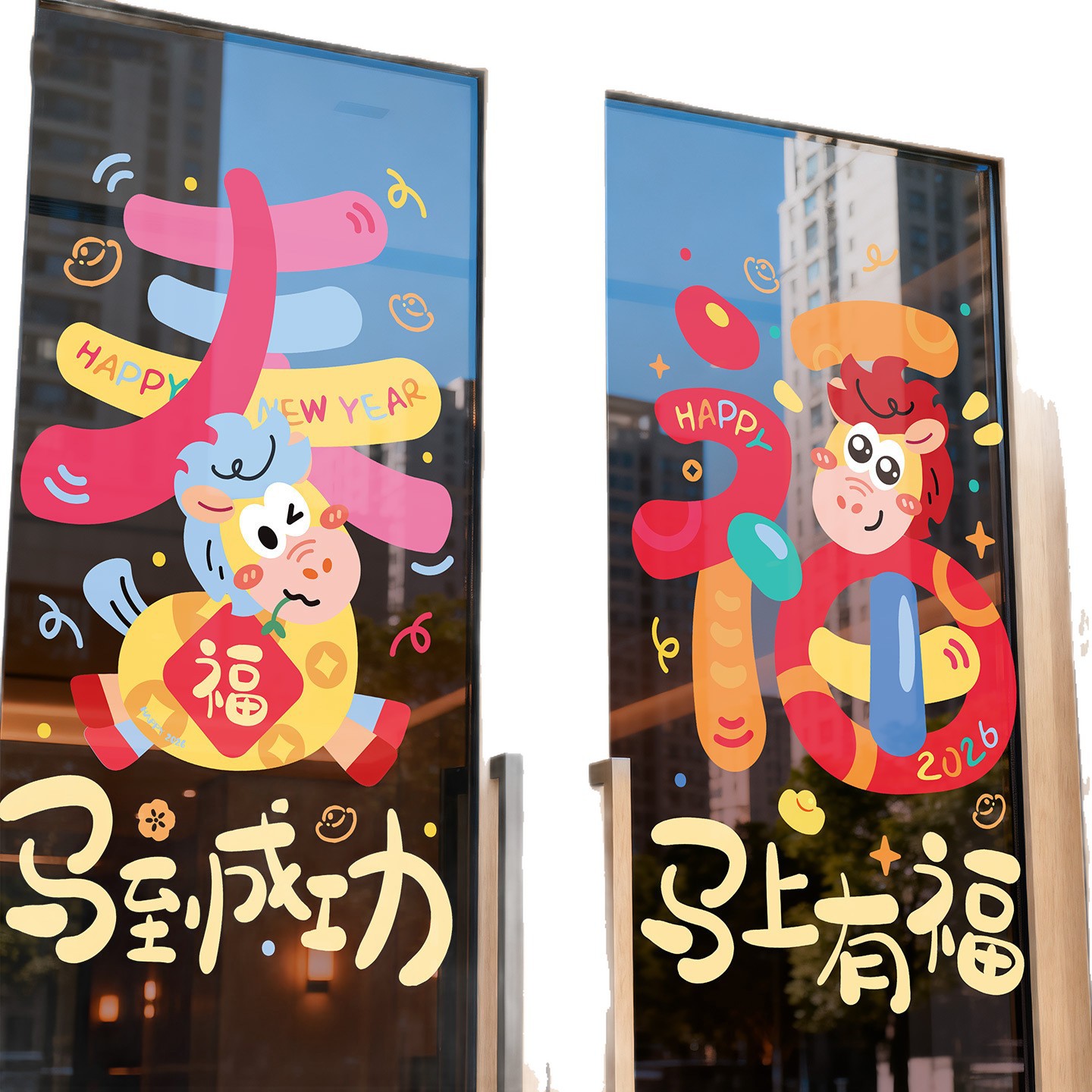 2026新年快乐春节橱窗玻璃贴新年马年装饰用品静电贴过年玻璃贴纸