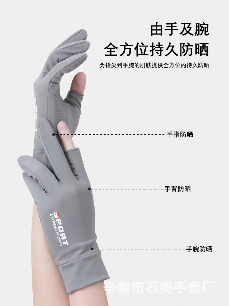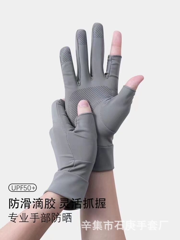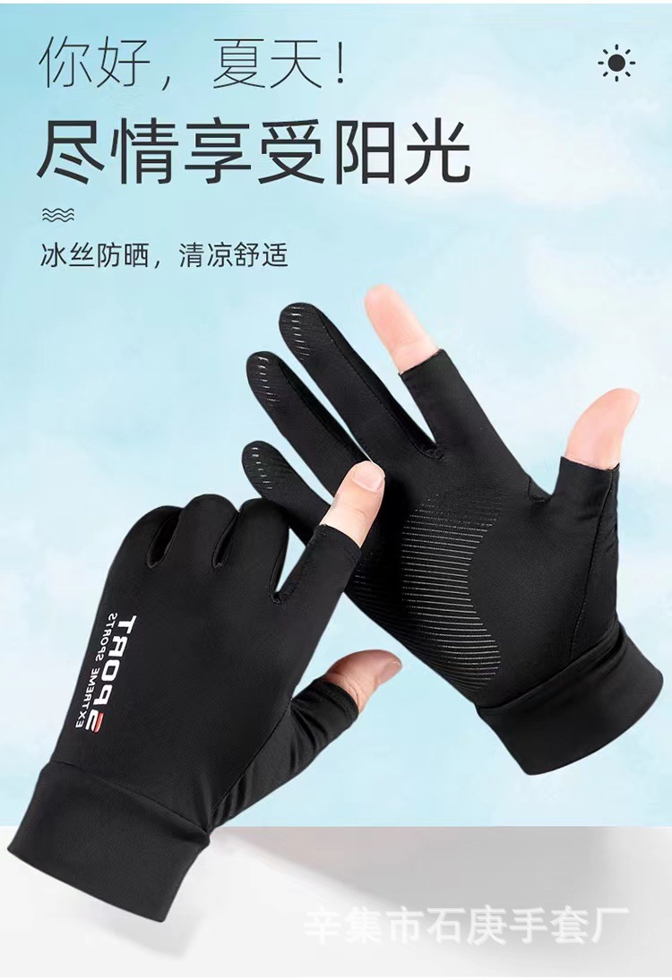防晒手套男夏季冰丝薄款漏二指路亚钓鱼防滑外卖骑手半指手套女