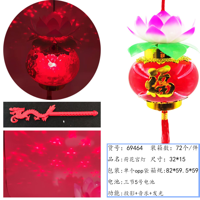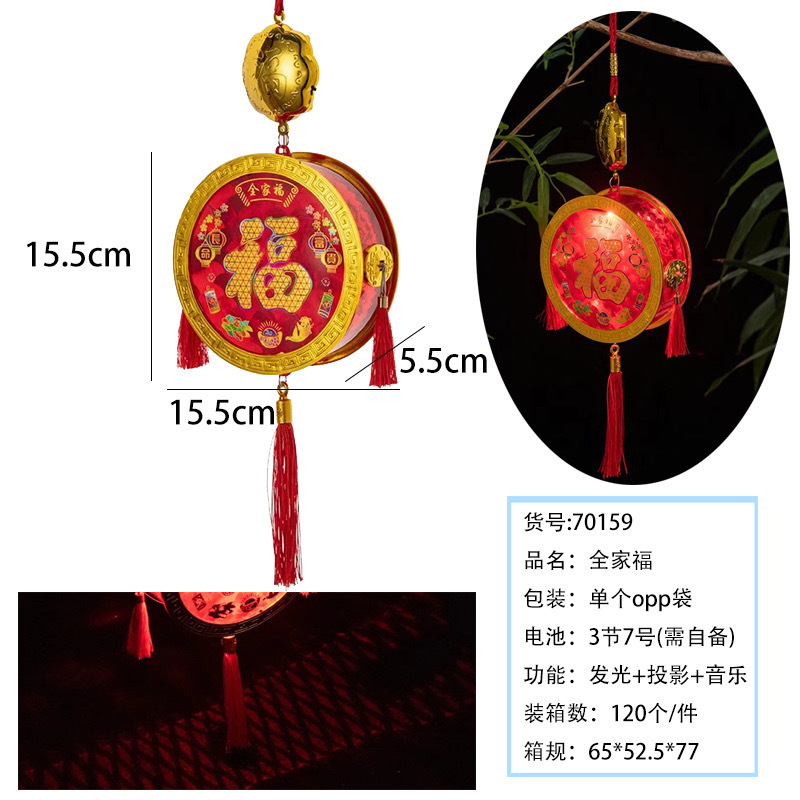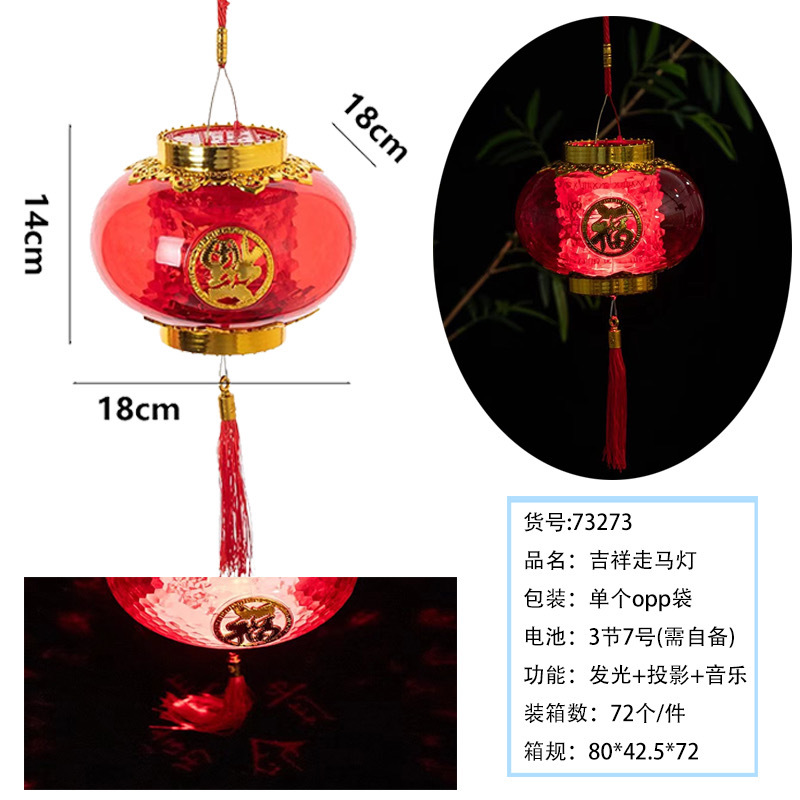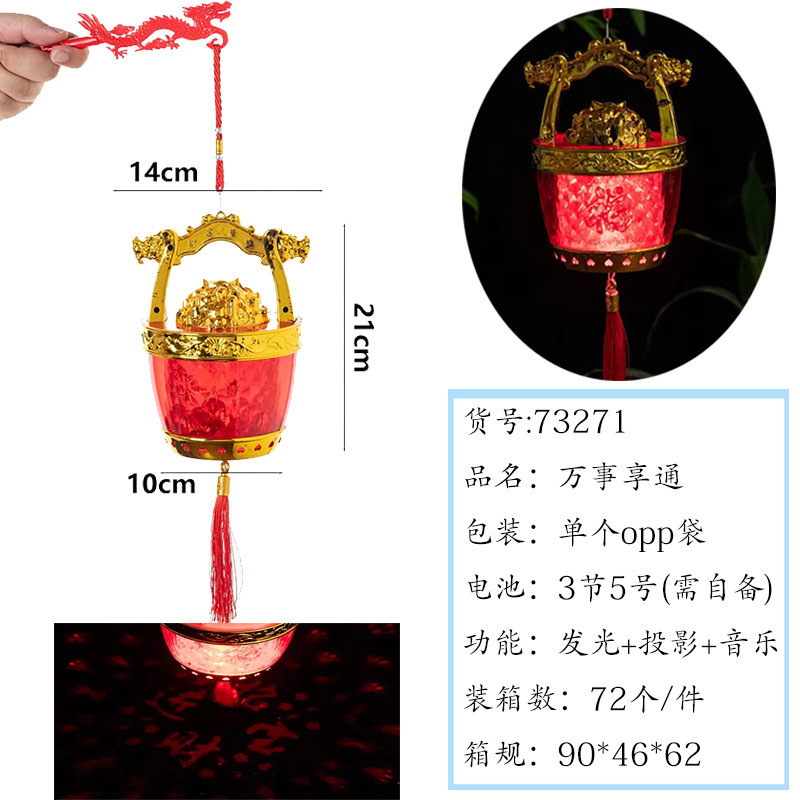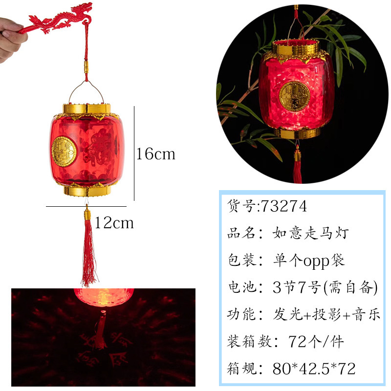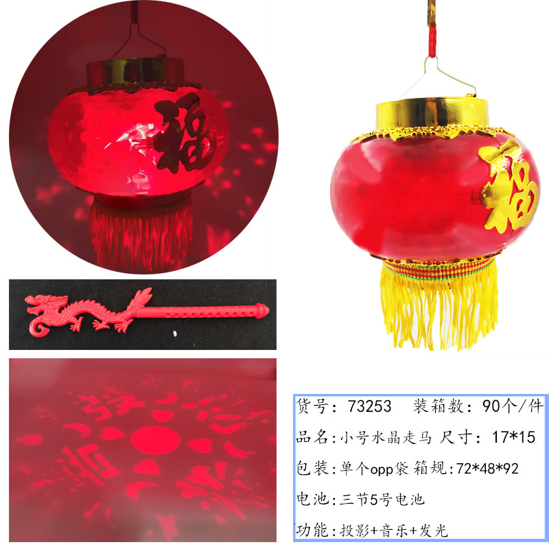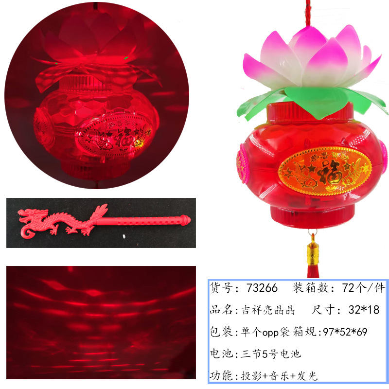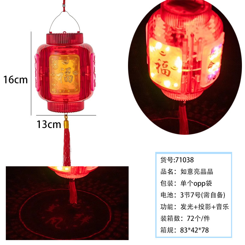 元宵节新款福字发光手提灯笼 LED带音乐投影灯笼夜市摆摊玩具批发