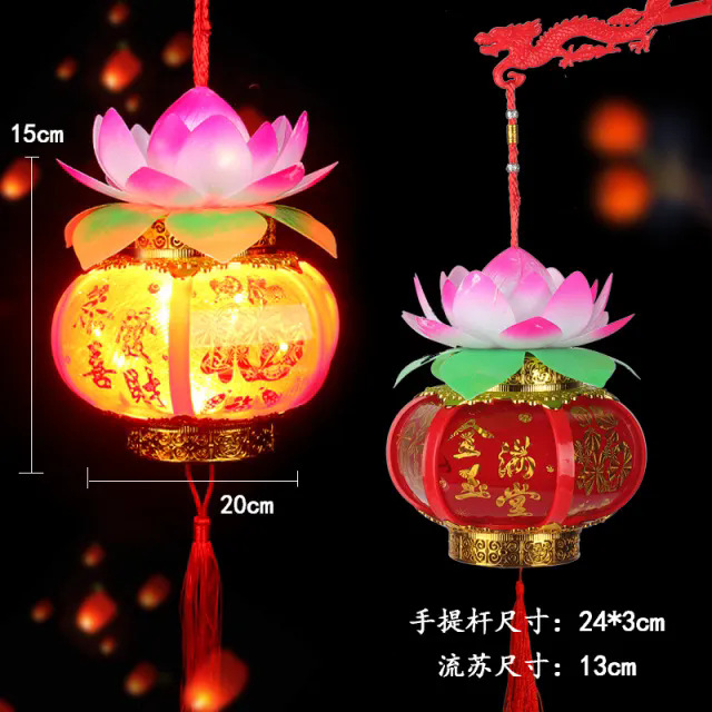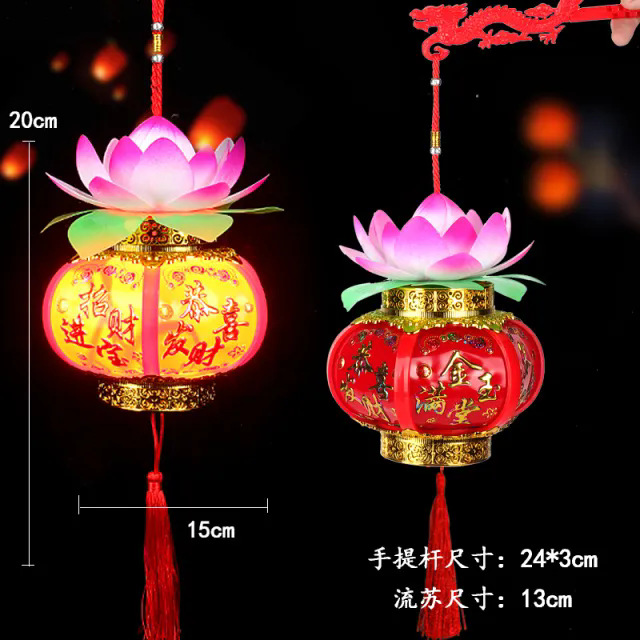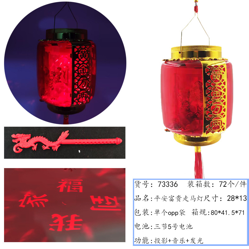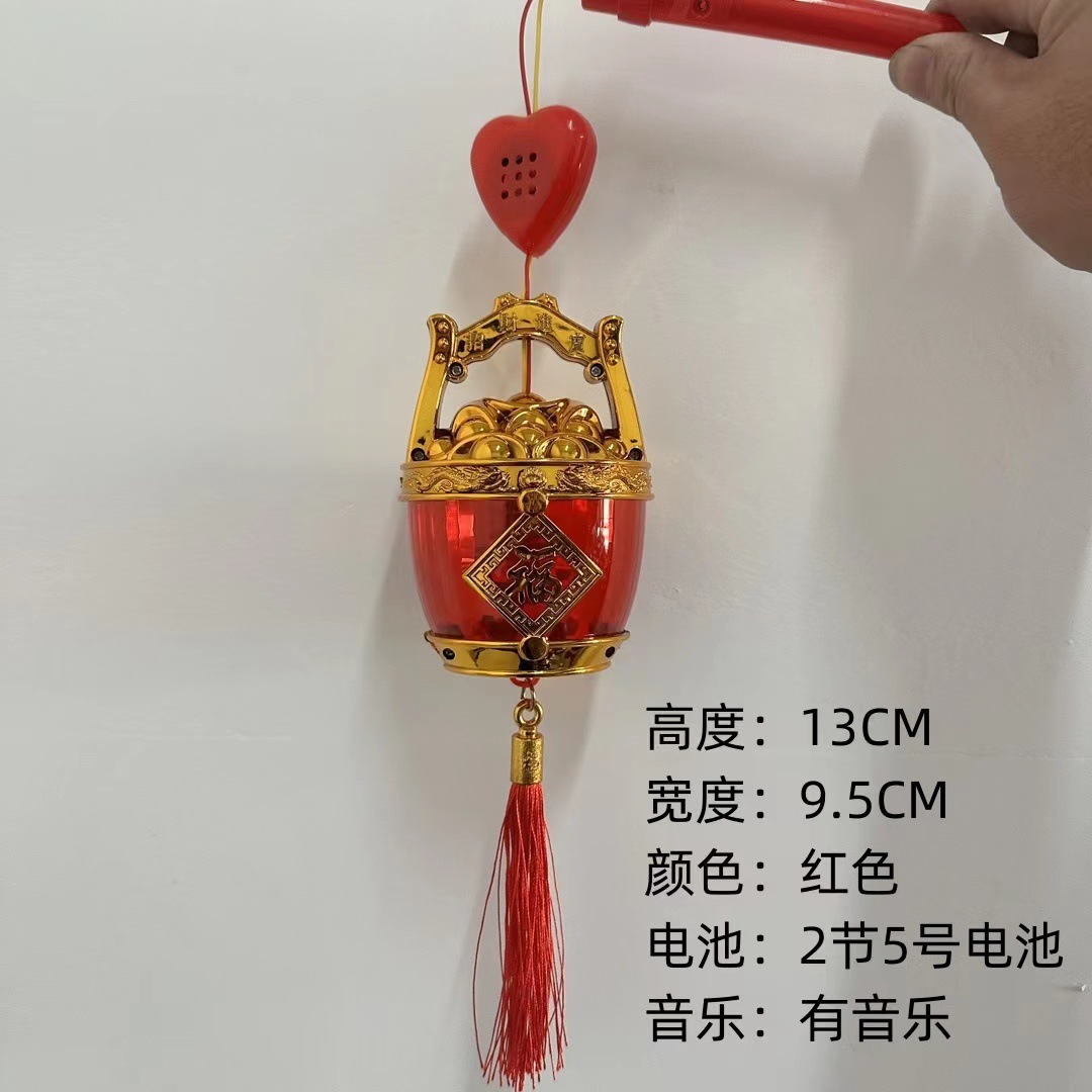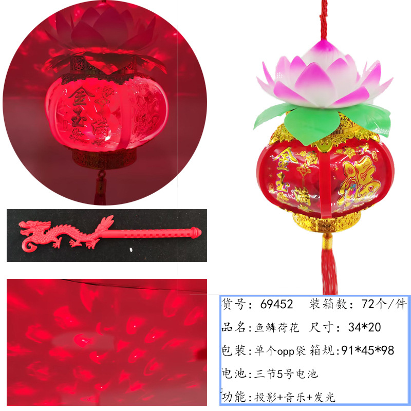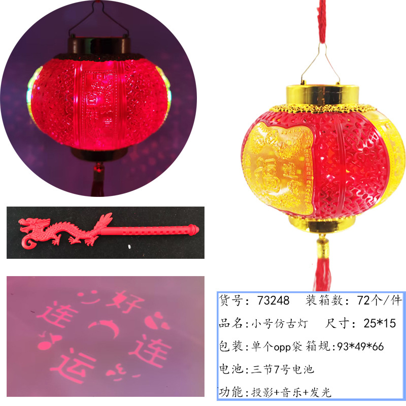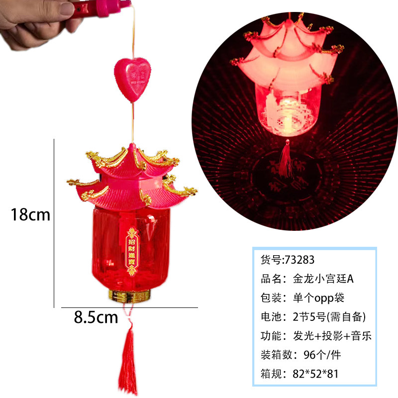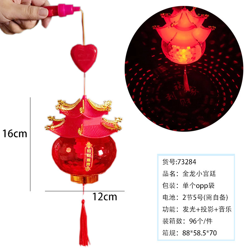 元宵节新款福字发光手提灯笼 LED带音乐投影灯笼夜市摆摊玩具批发