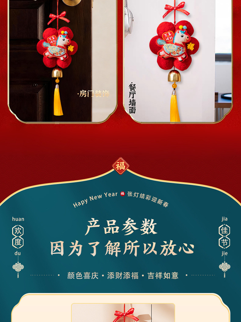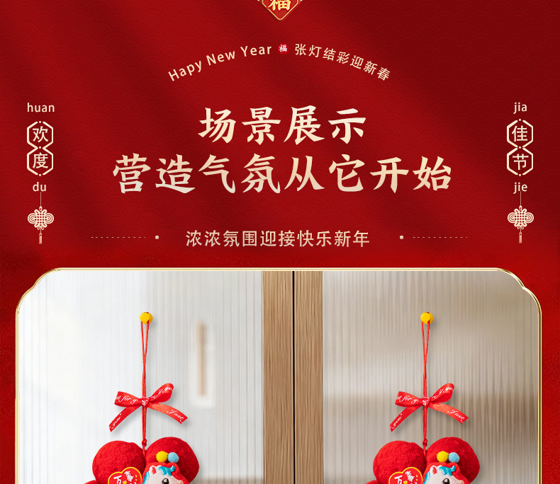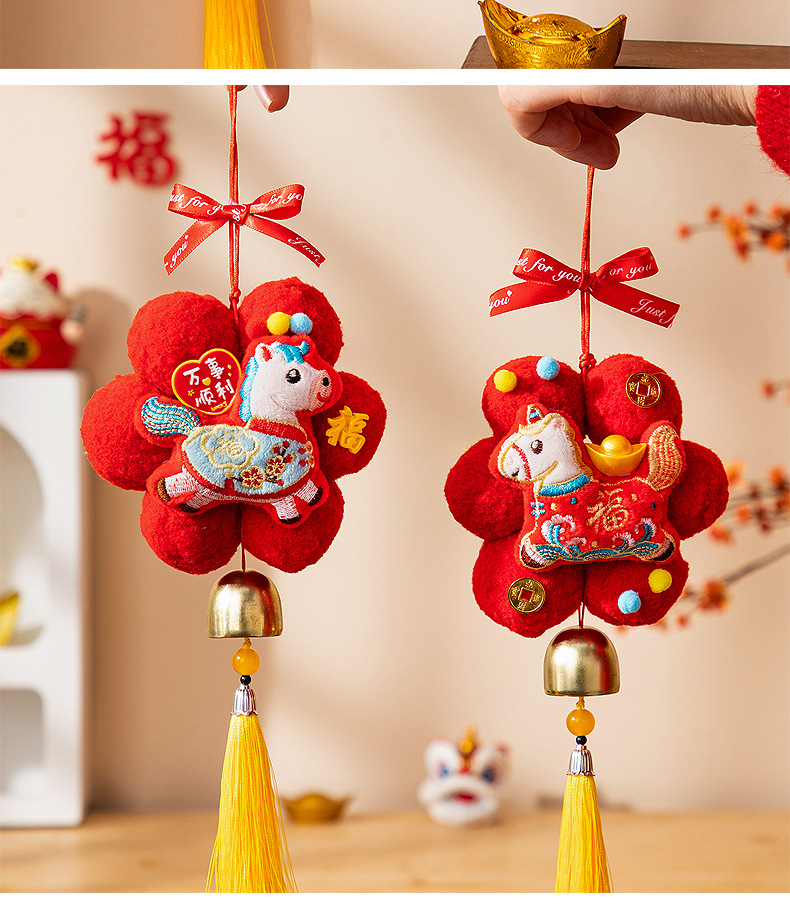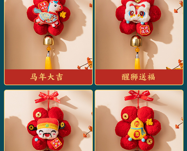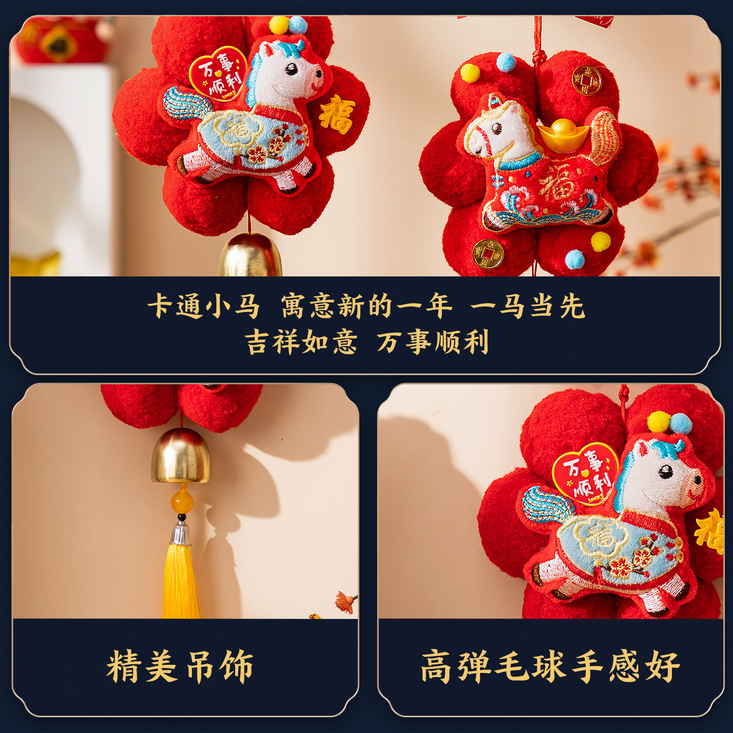 春节装饰挂件2026马年新款毛绒客厅喜庆氛围布置新年入户门小挂饰