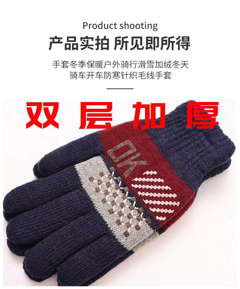 男女马海毛秋冬季双层加大加绒针织新款时尚户外防寒保暖骑行手套