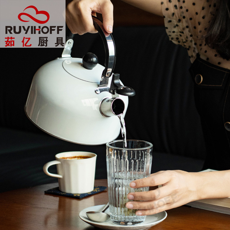 亚马逊新款白色喷漆鸣笛烧水壶泡茶咖啡响水壶3L欧美厨具平底鸣音