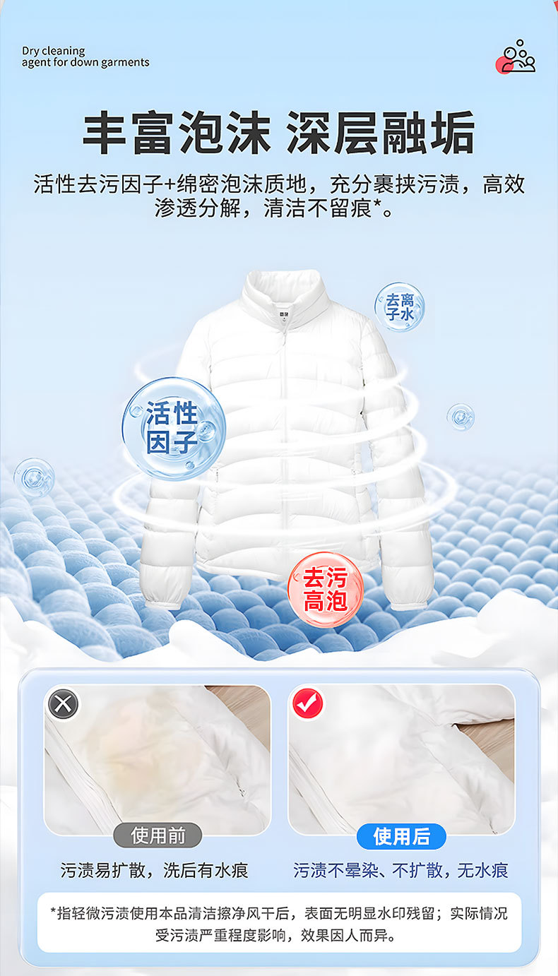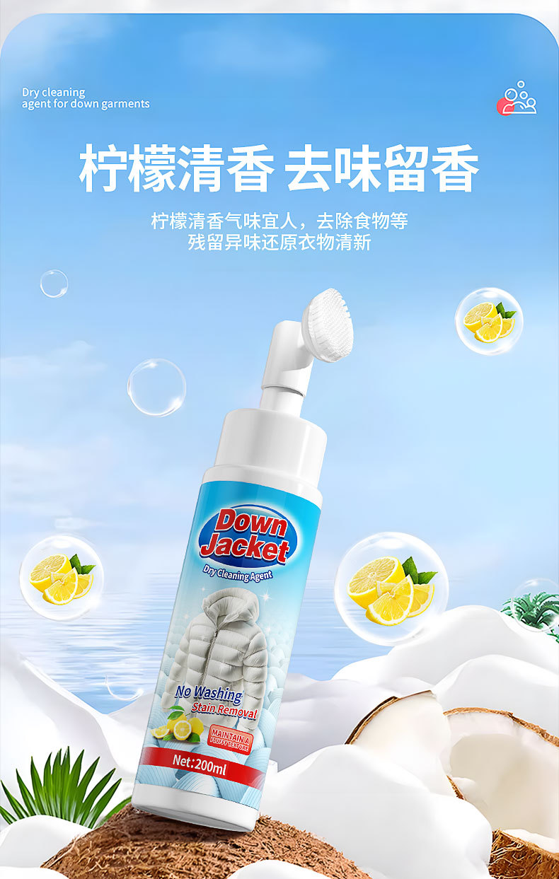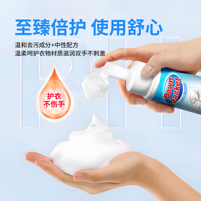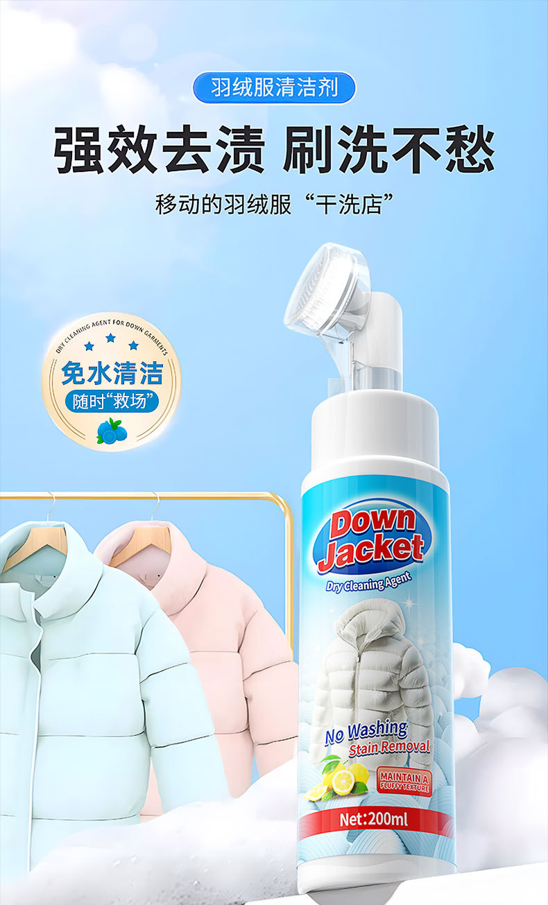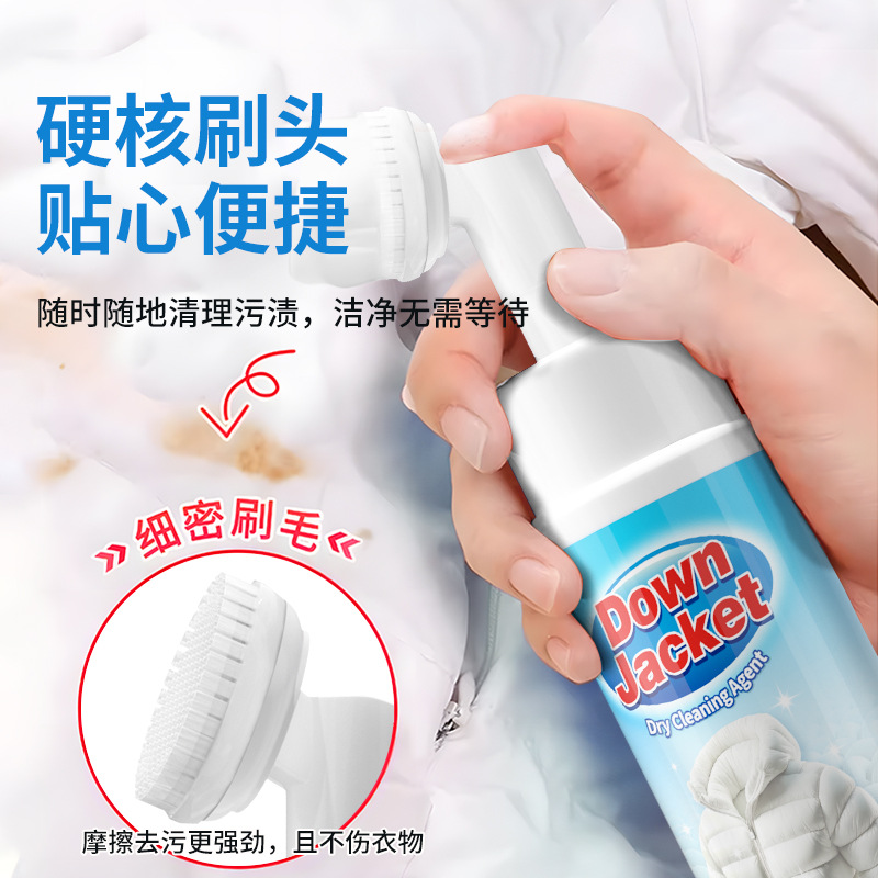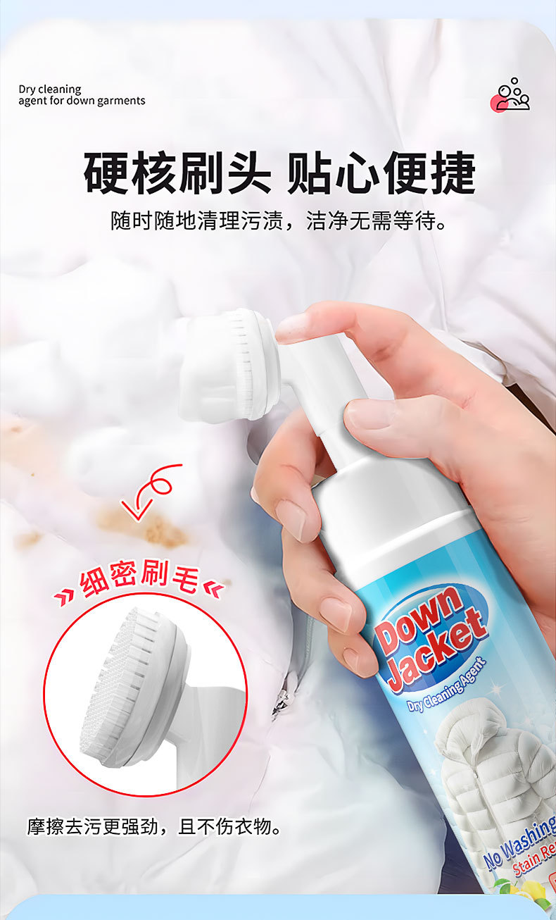 羽绒服干洗剂带刷头免水洗泡沫型清洁剂羽绒服顽固污渍衣物清洗剂
