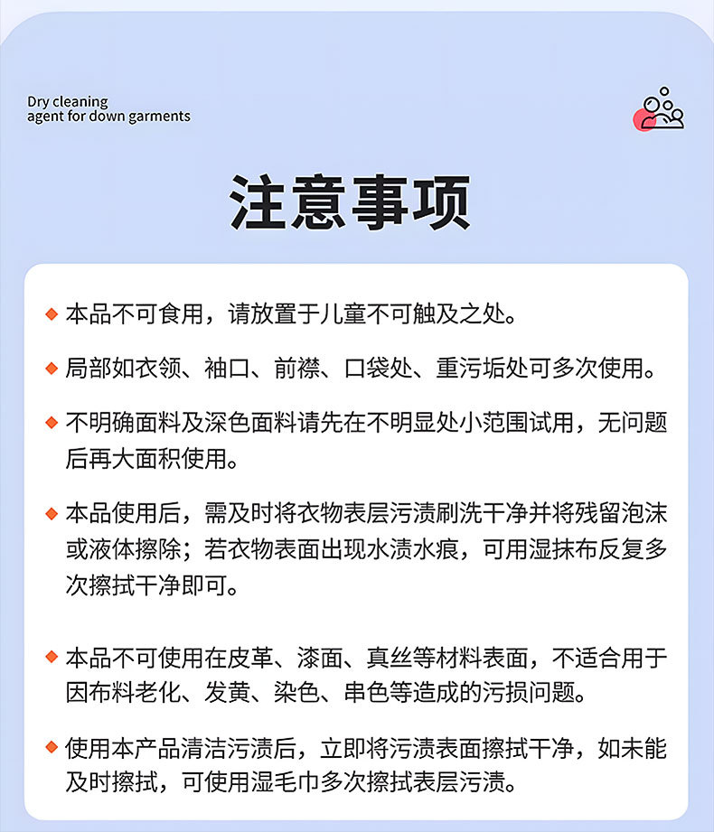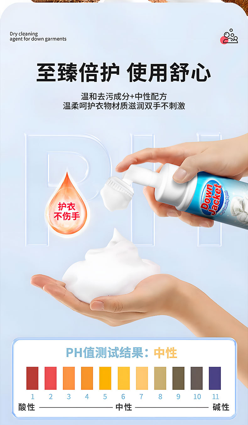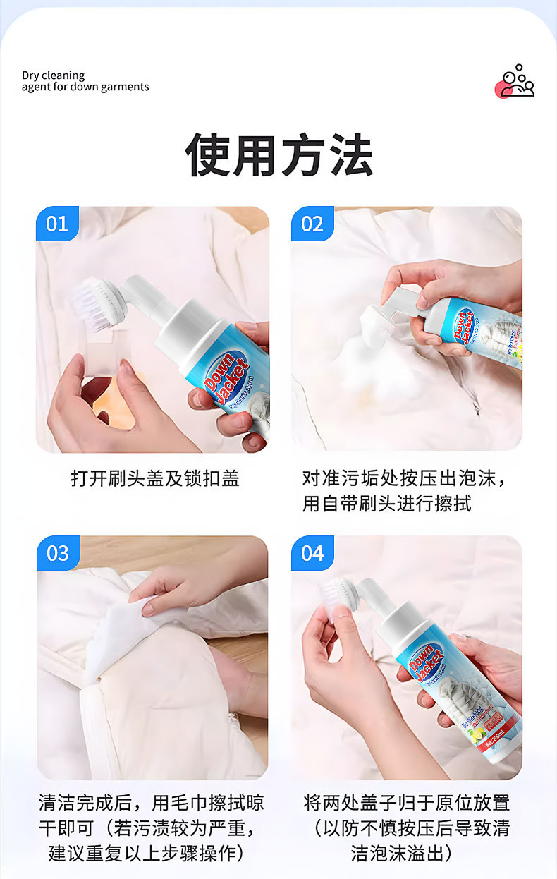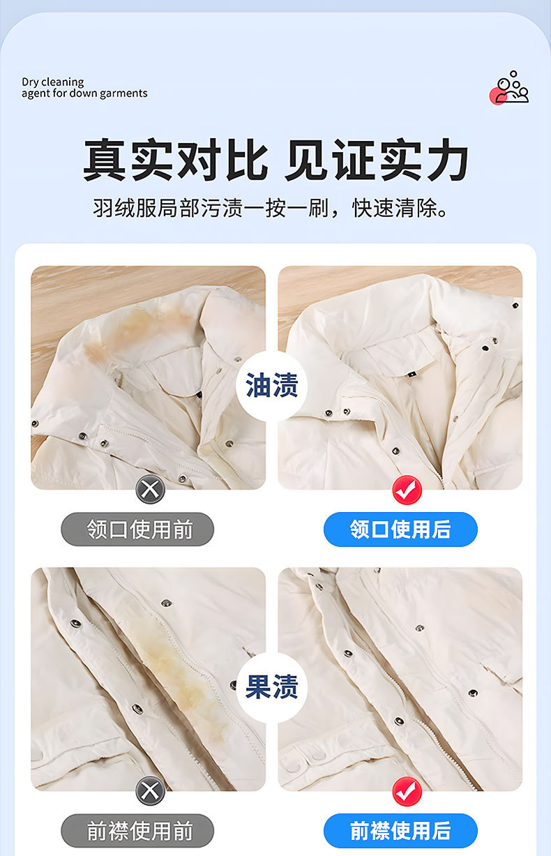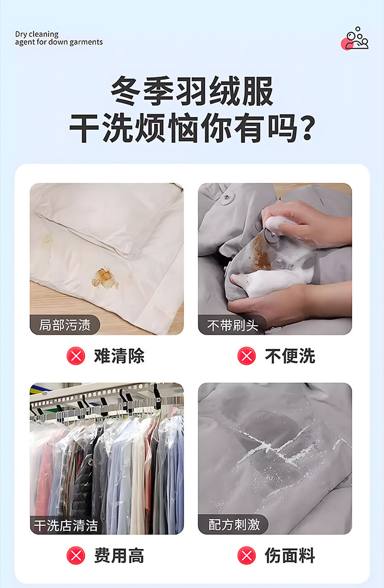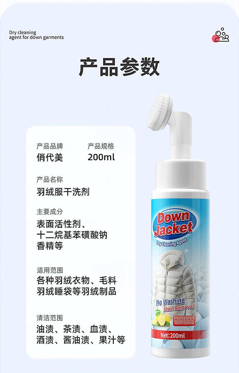 羽绒服干洗剂带刷头免水洗泡沫型清洁剂羽绒服顽固污渍衣物清洗剂