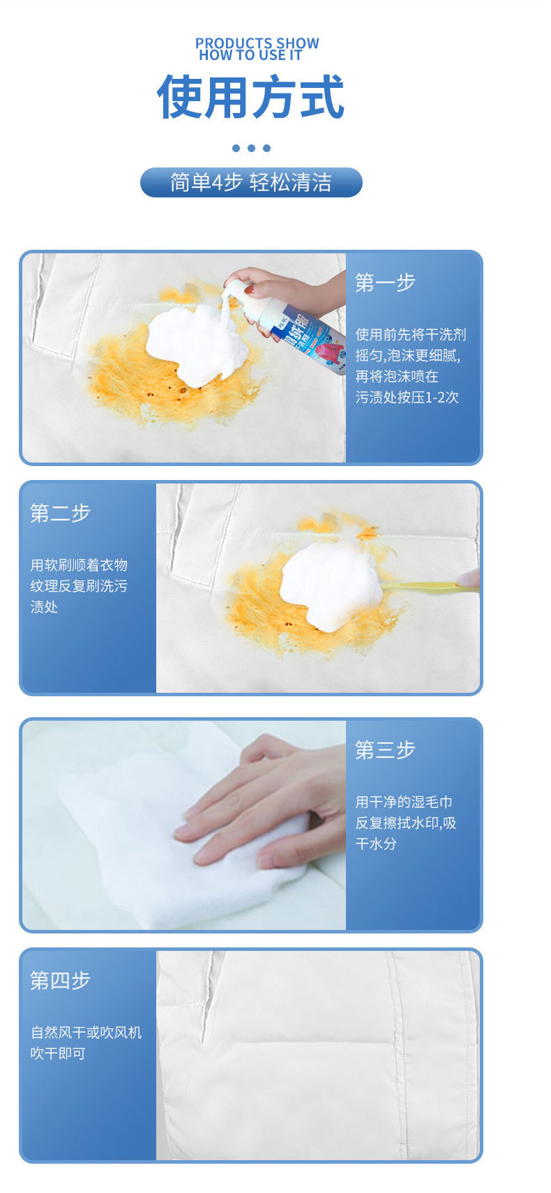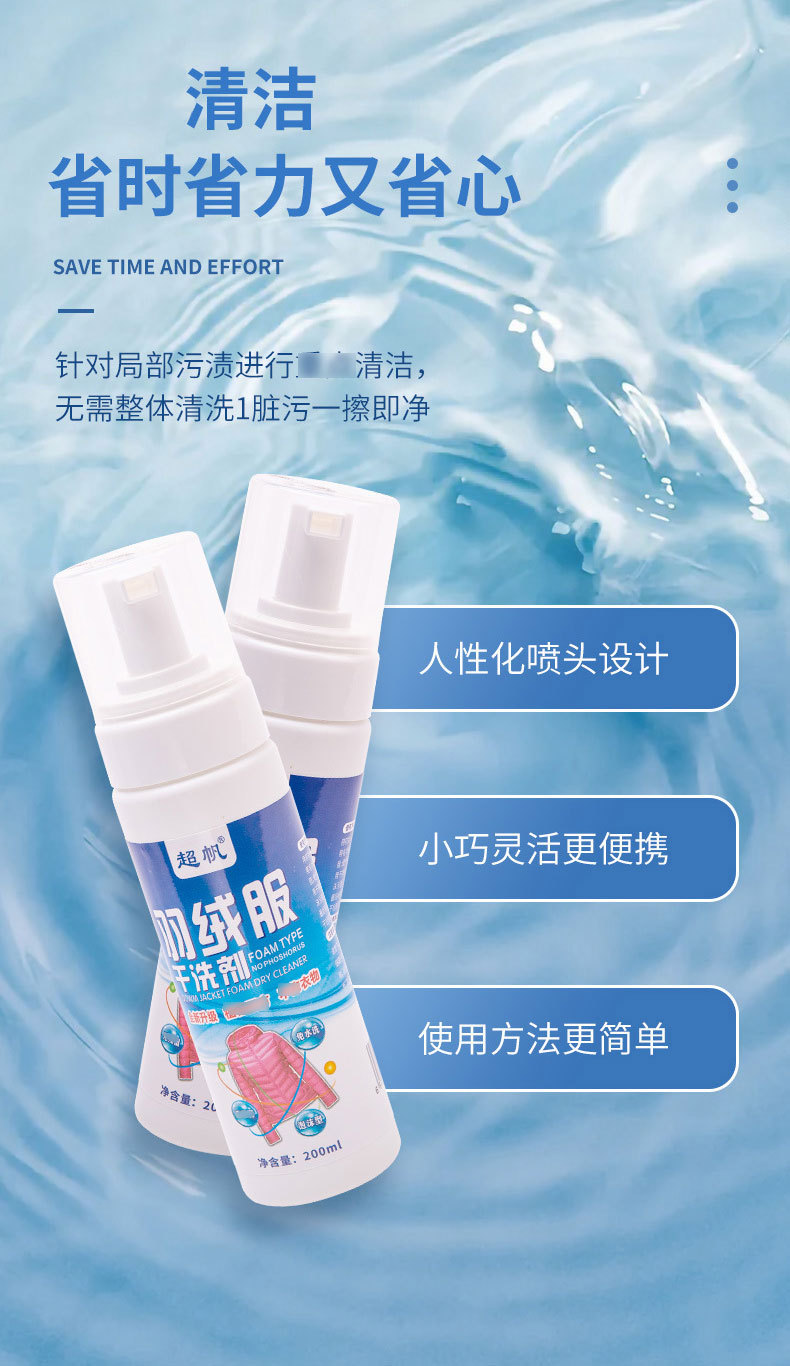 羽绒服干洗剂家用清洗剂免水洗去顽固污渍衣物清洁剂工厂代发留香