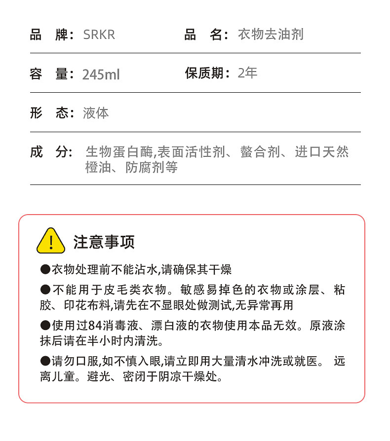SRKR生物酶去油剂红色去油王批发儿童去油渍衣物油污净清洁剂