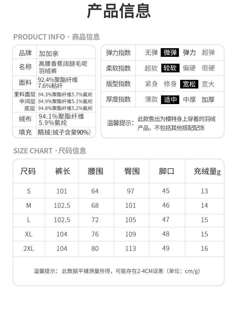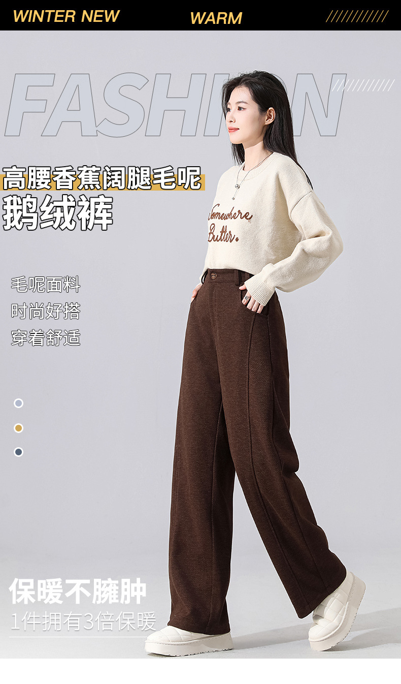新国标90白鹅绒高腰香蕉阔腿毛呢可脱卸洋气女士鹅绒裤2941