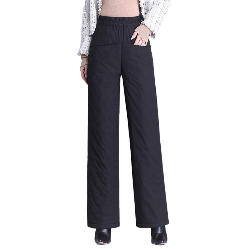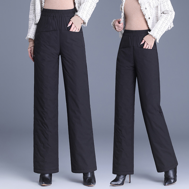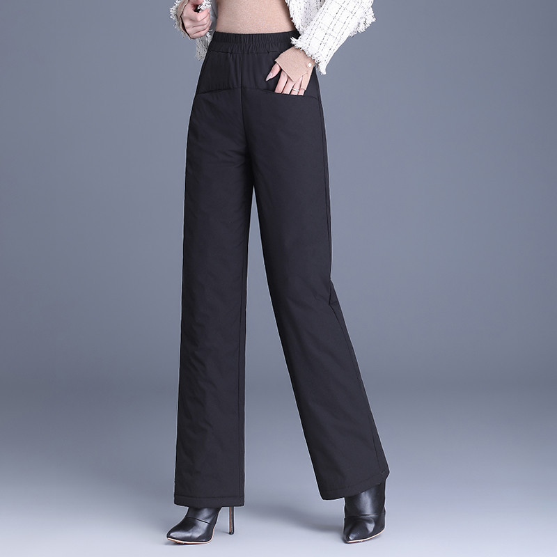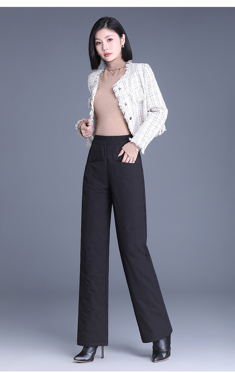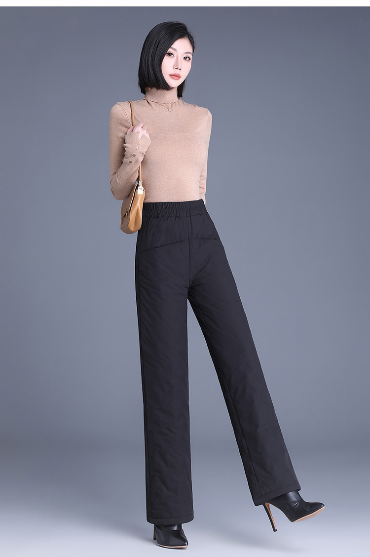 2024冬季羽绒棉裤直筒裤女高腰宽松简约保暖加厚长裤羽绒棉裤子