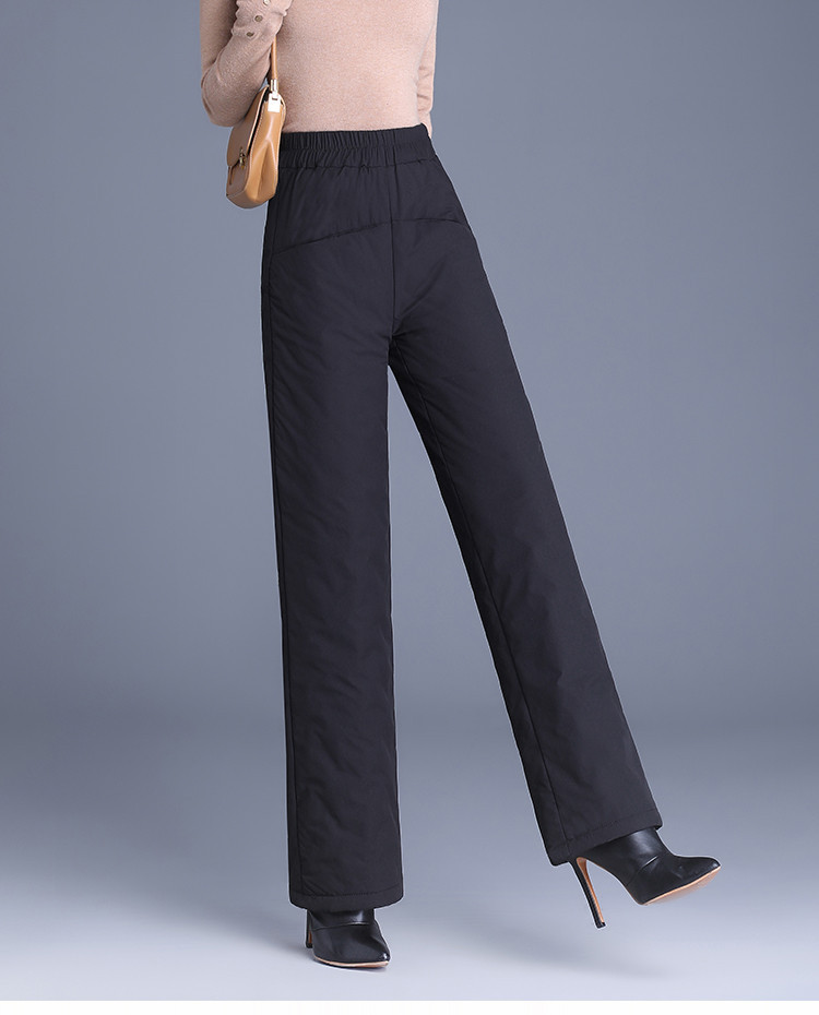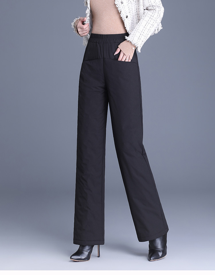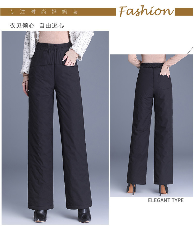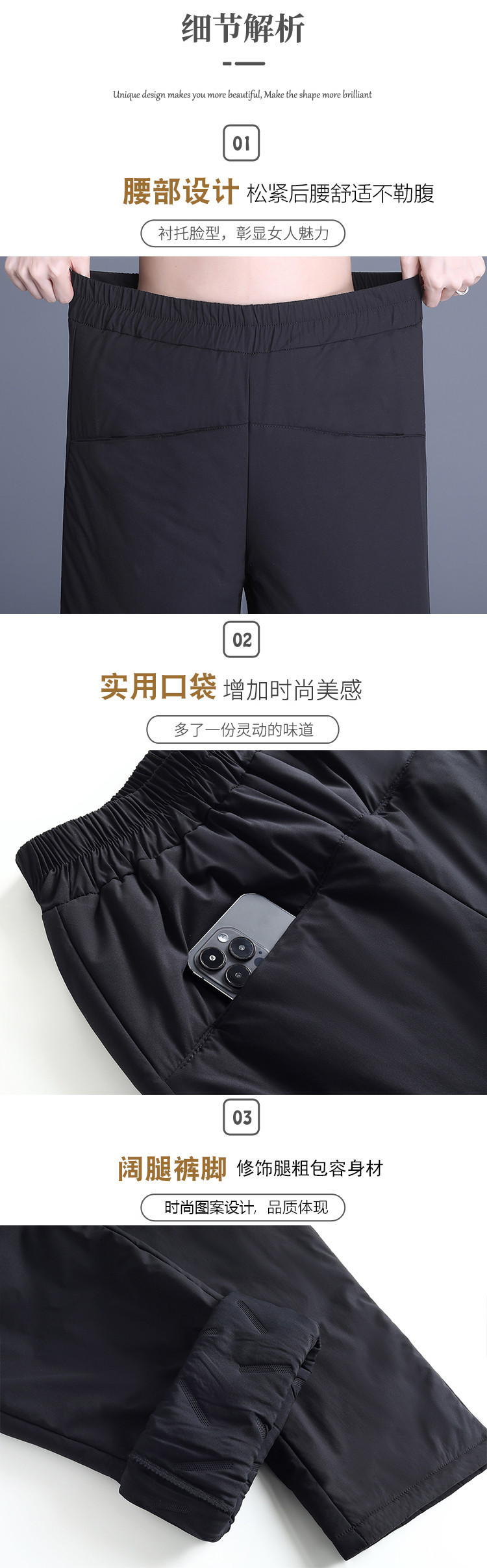 2024冬季羽绒棉裤直筒裤女高腰宽松简约保暖加厚长裤羽绒棉裤子