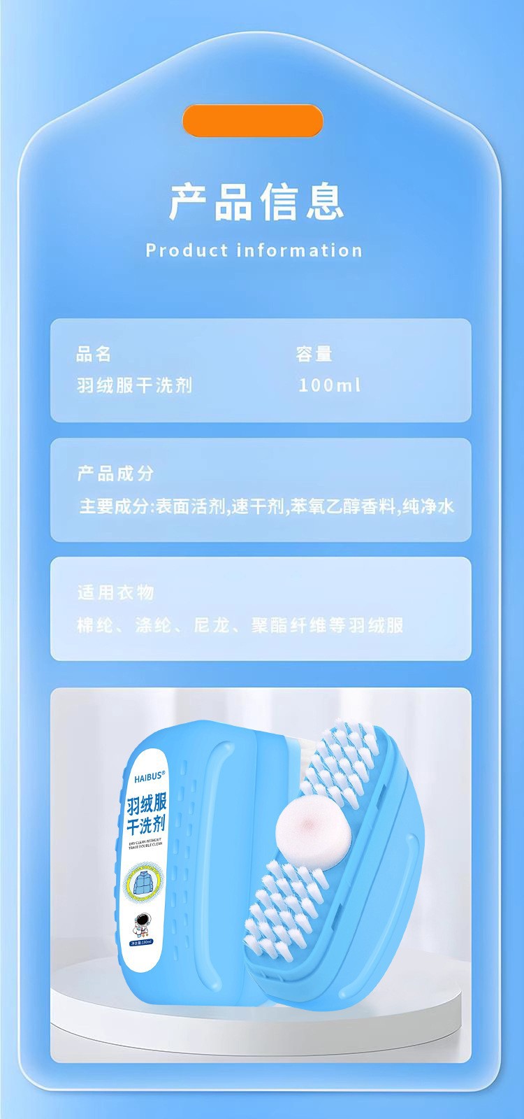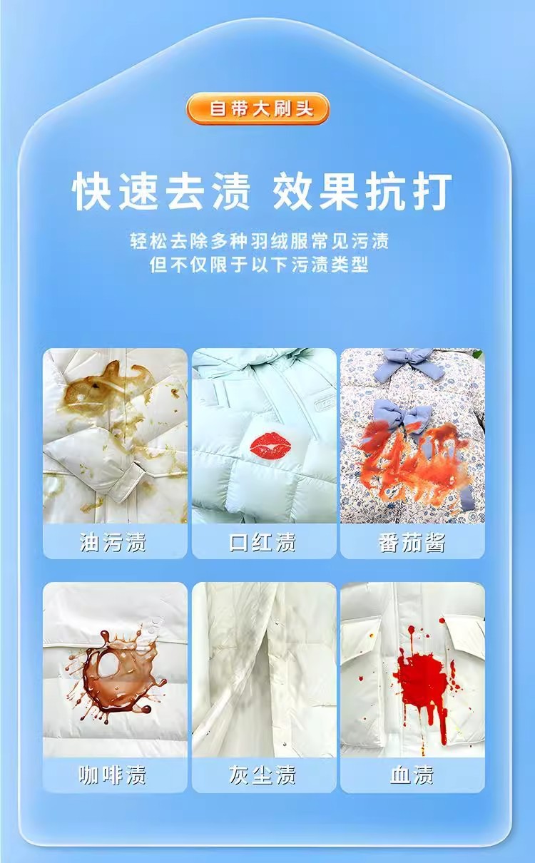 羽绒服清洁刷干洗剂免水洗擦鞋强力去污不留印带刷头免清洗羽绒服