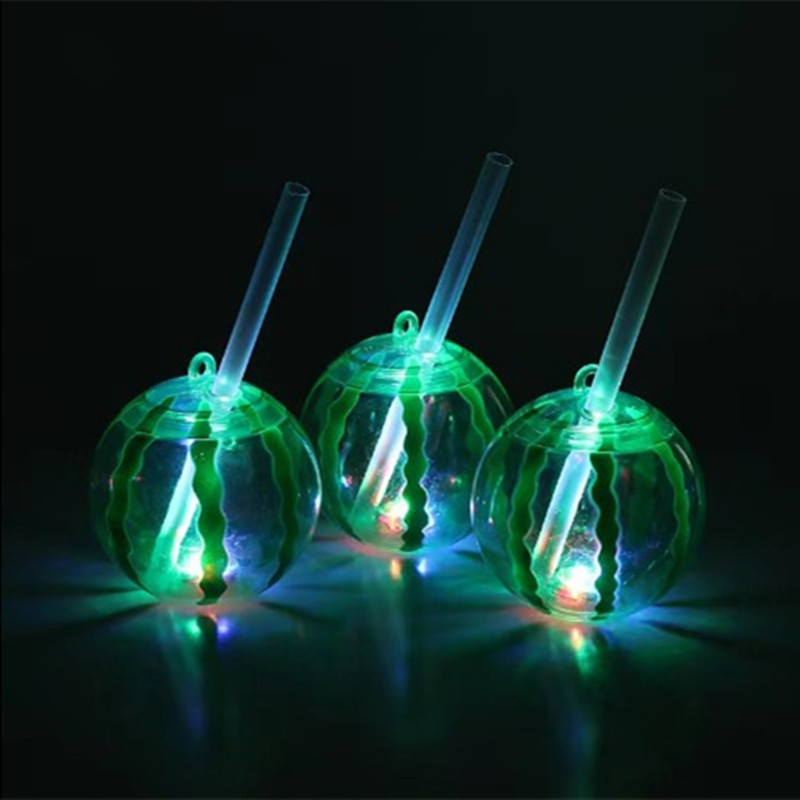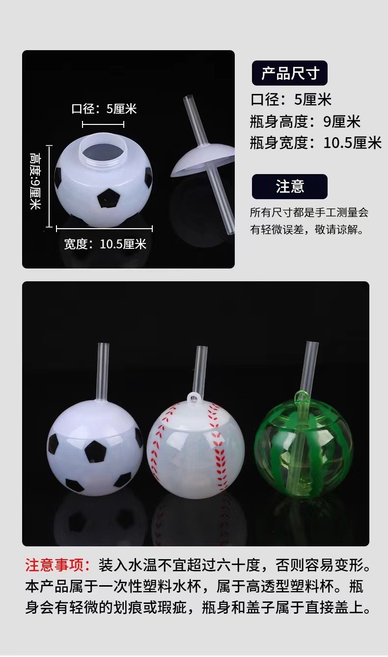 PET400ML足球杯带灯西瓜垒球圆造型一次性塑料瓶饮料吸管奶茶杯