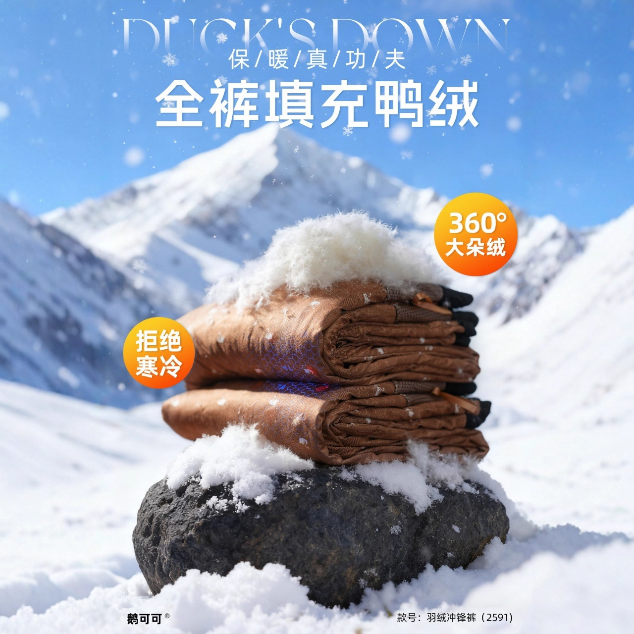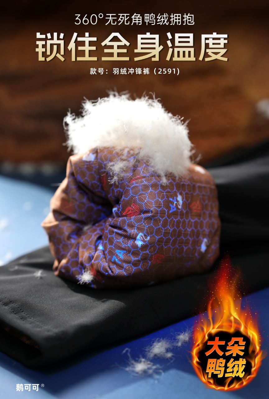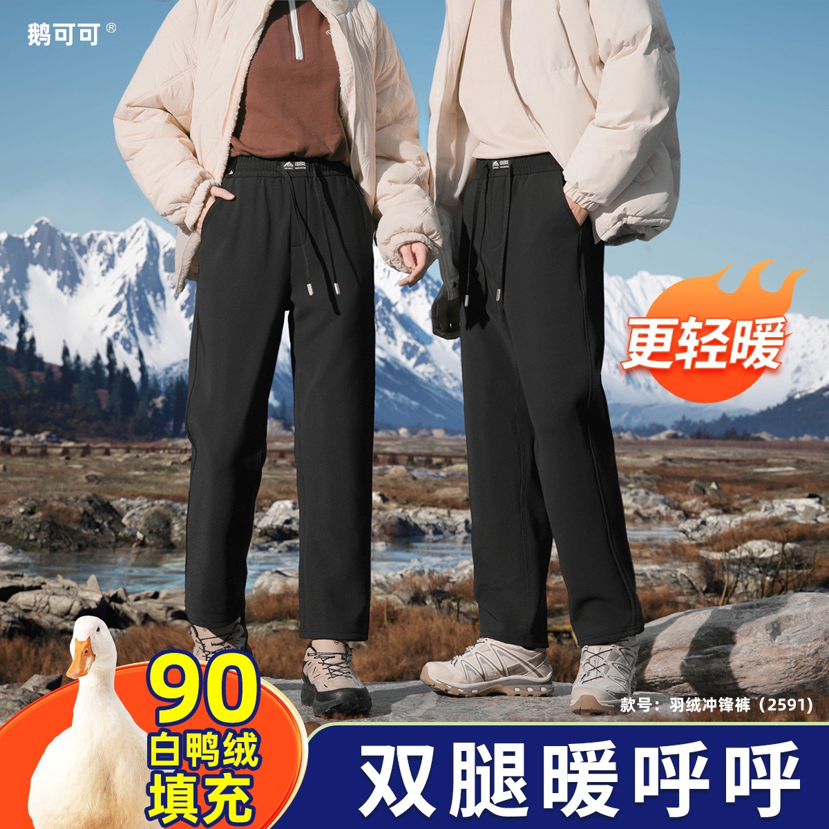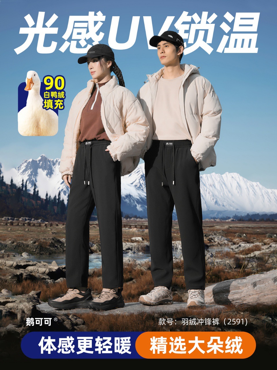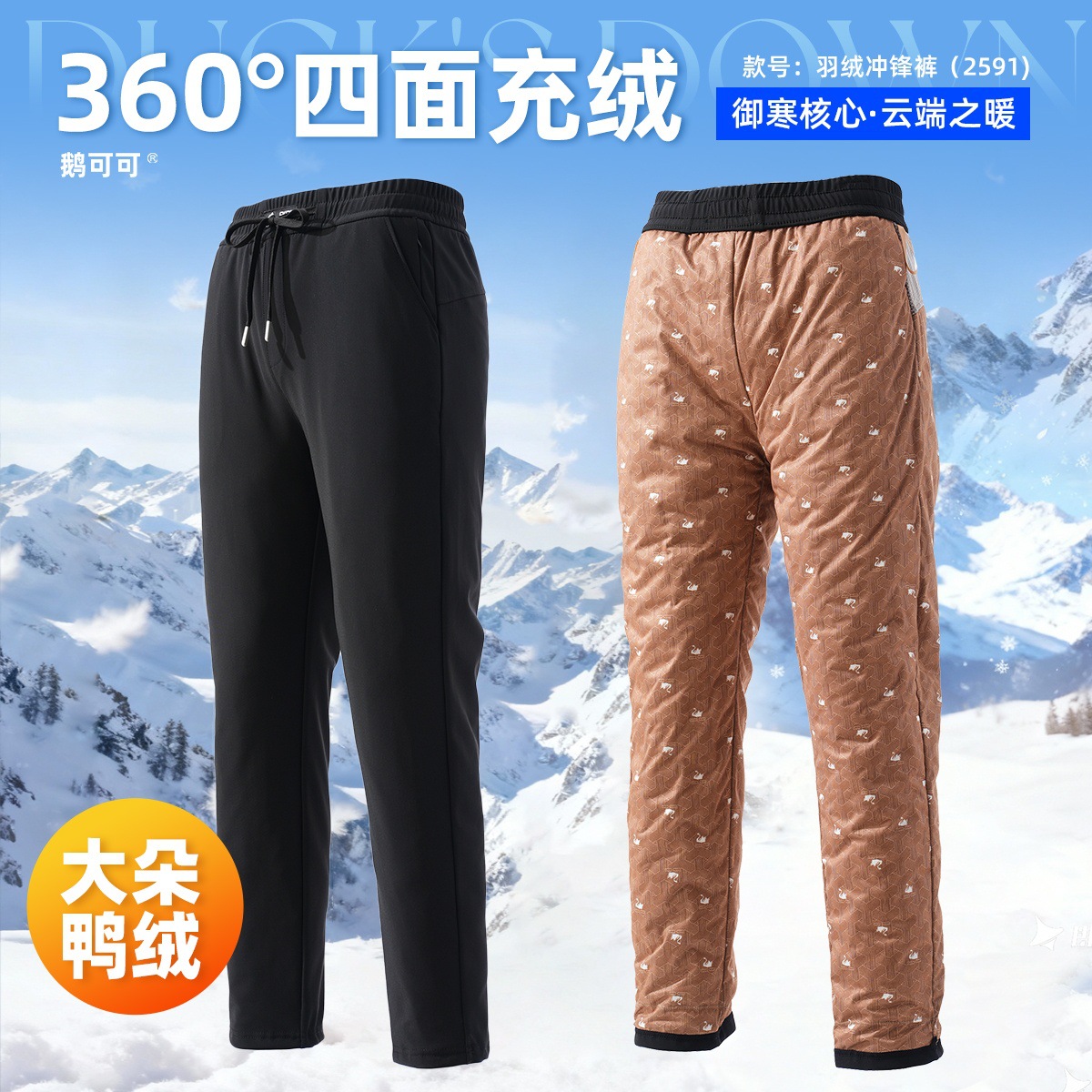 羽绒冲锋裤四面填充90白鸭绒防风防水双口袋高腰锁温情侣款休闲裤