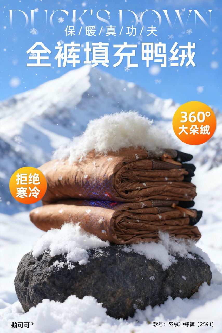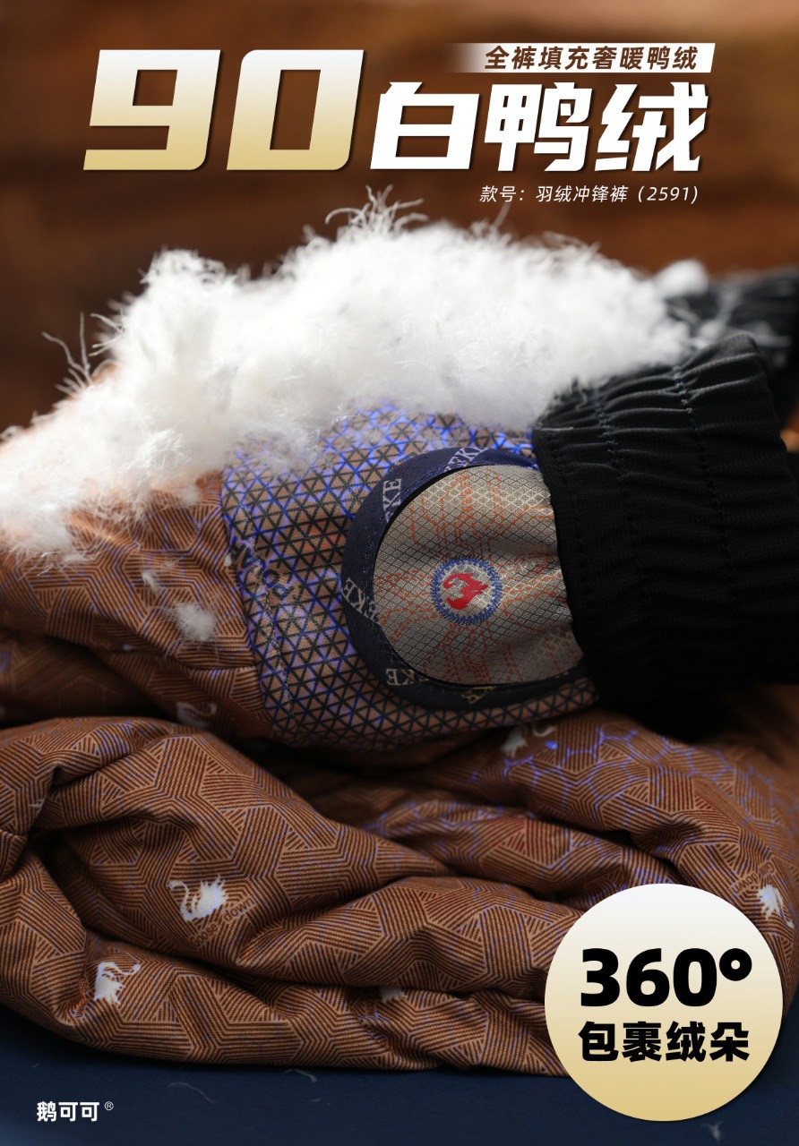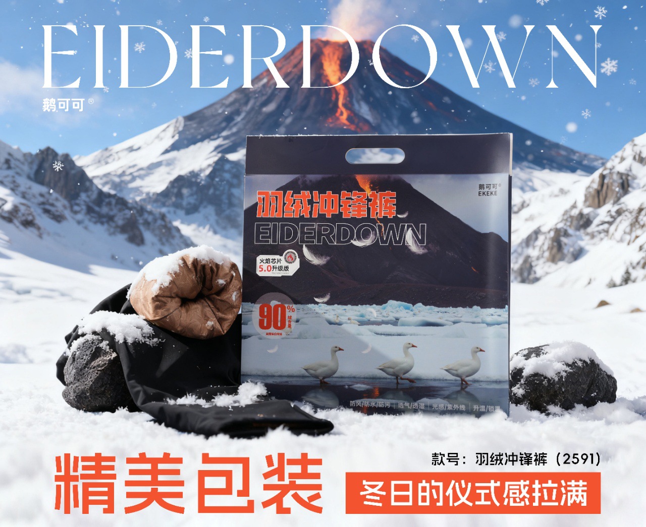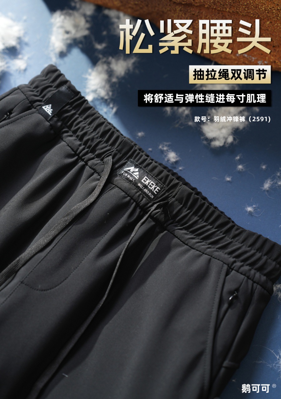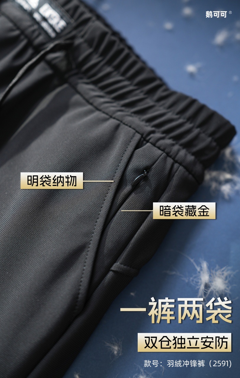 羽绒冲锋裤四面填充90白鸭绒防风防水双口袋高腰锁温情侣款休闲裤
