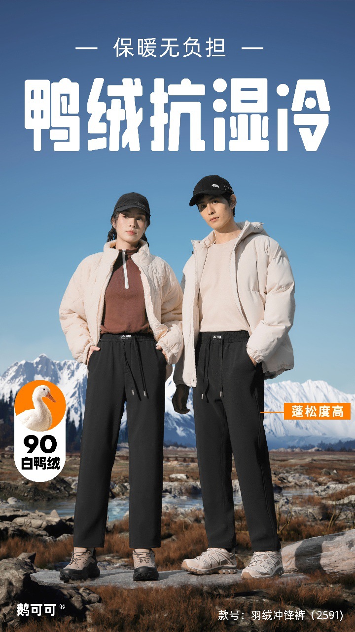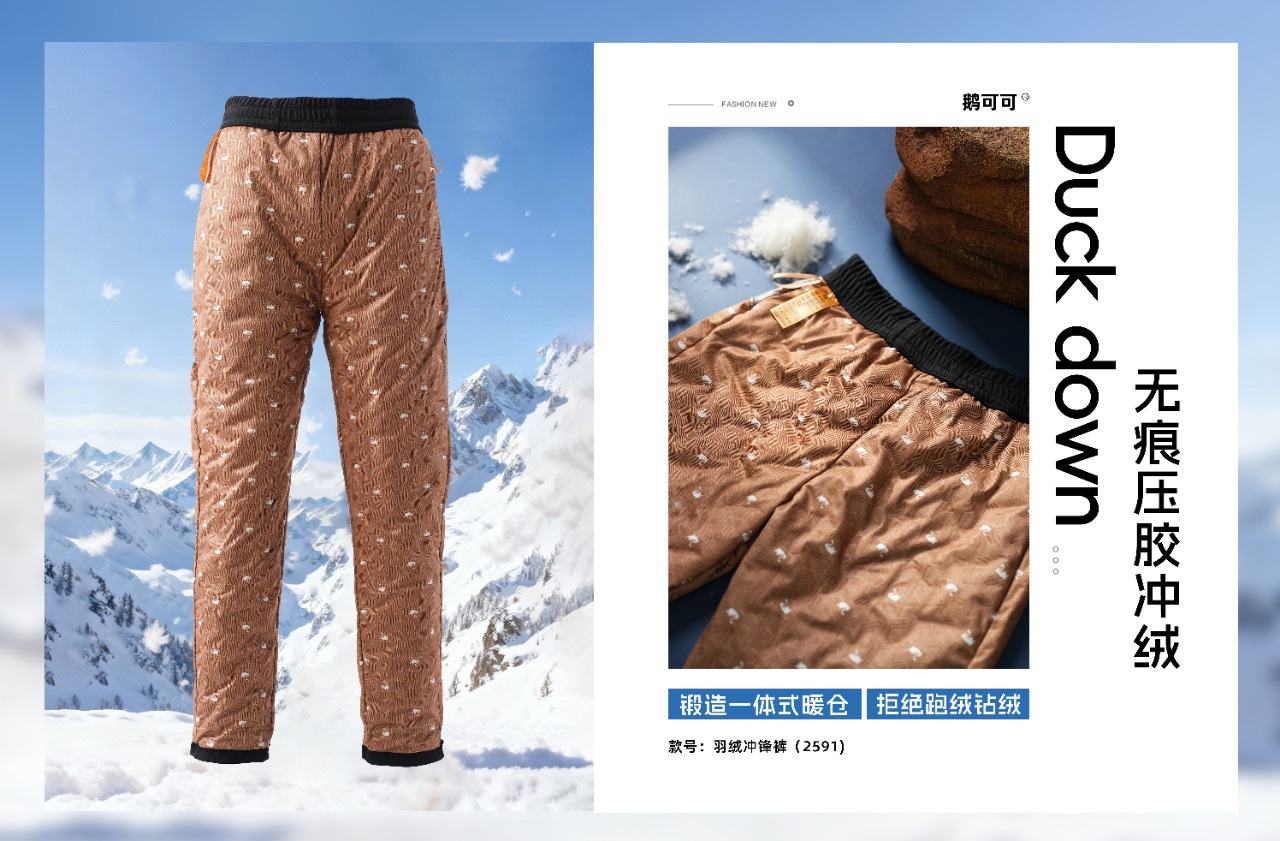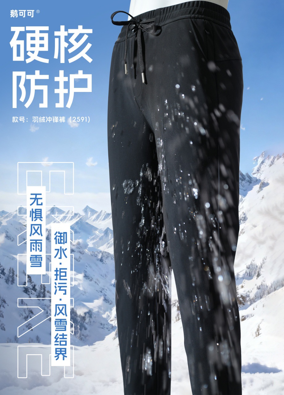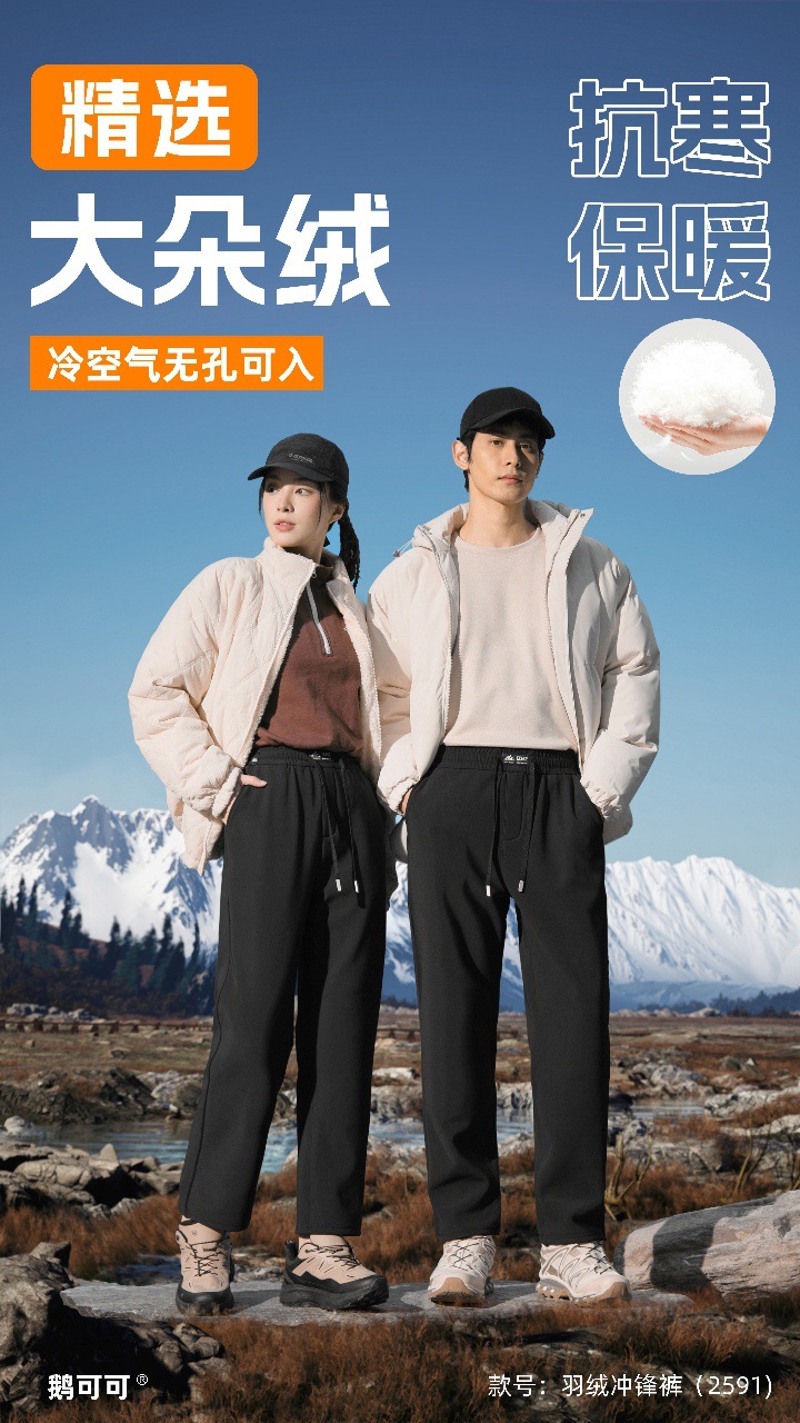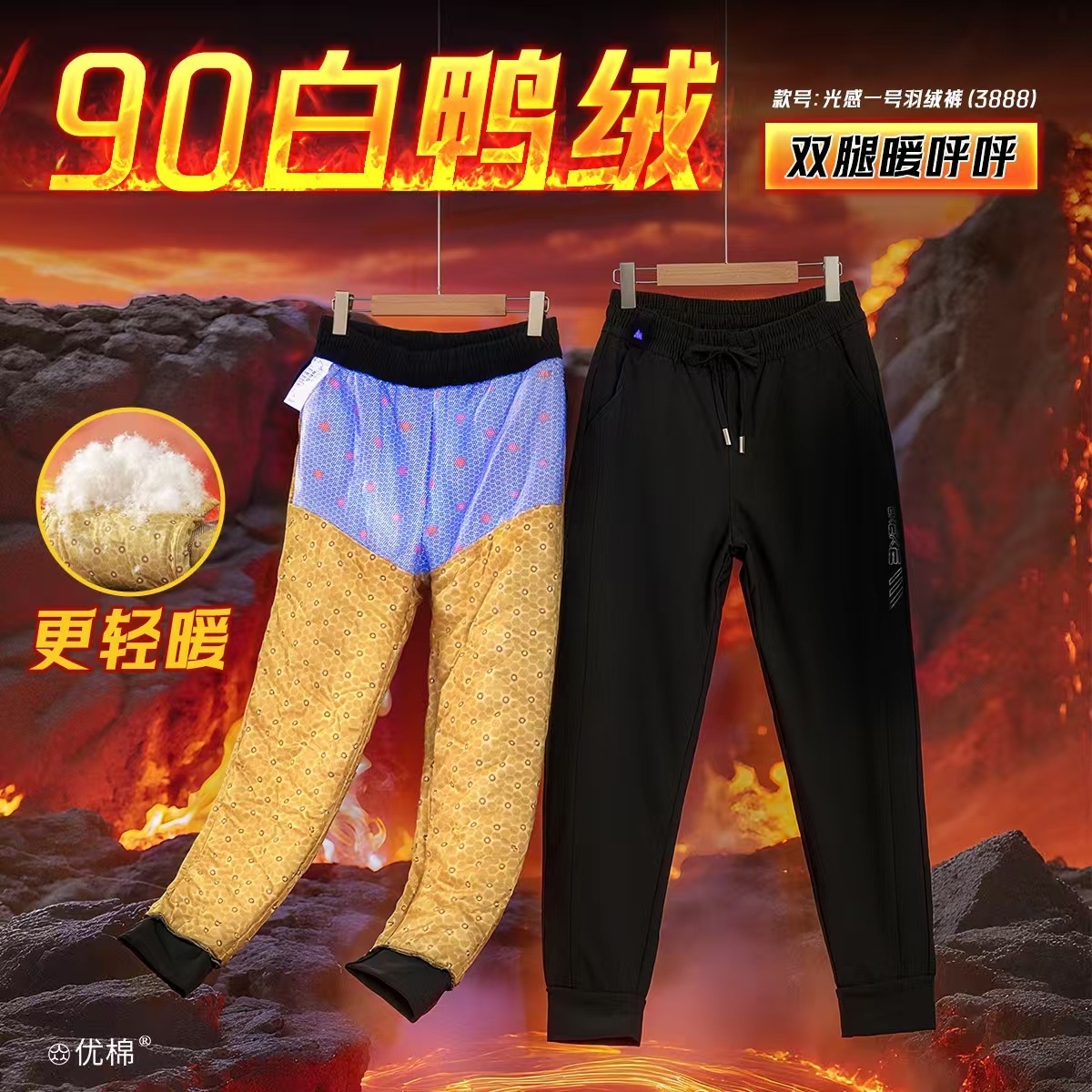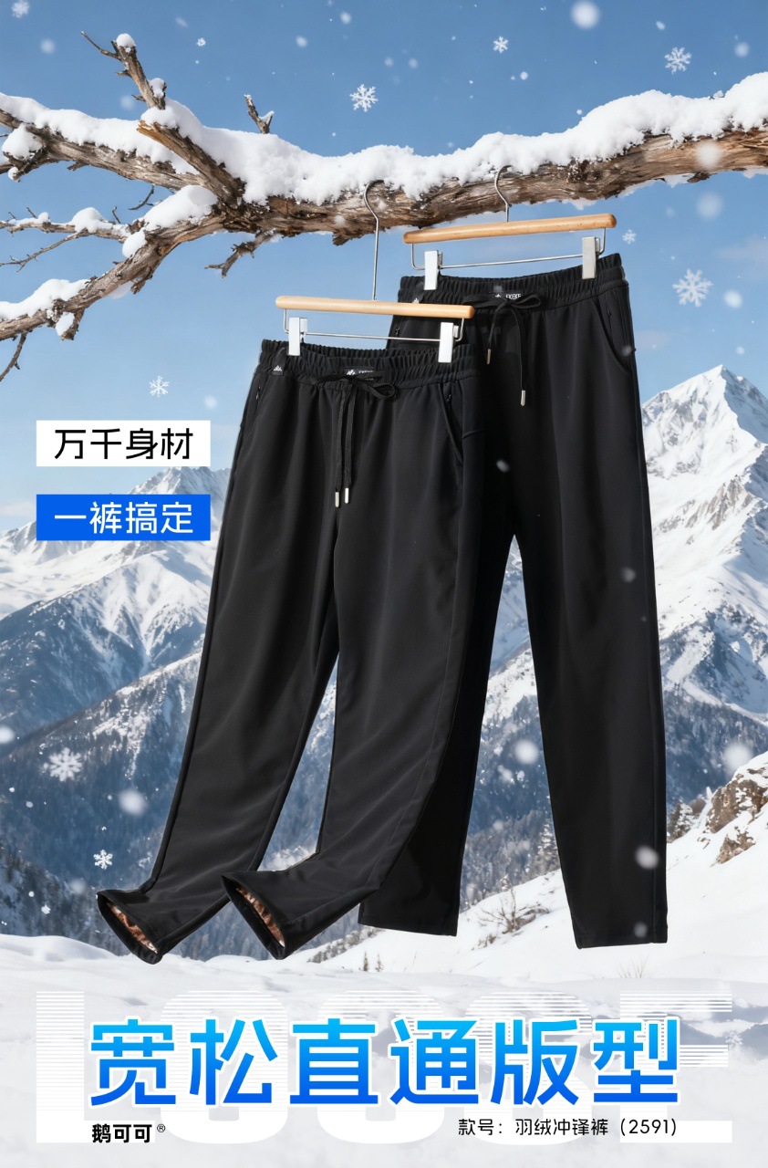 羽绒冲锋裤四面填充90白鸭绒防风防水双口袋高腰锁温情侣款休闲裤