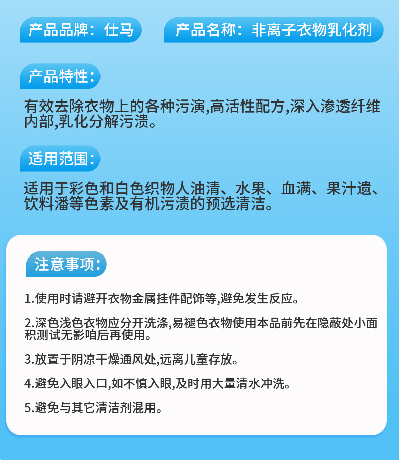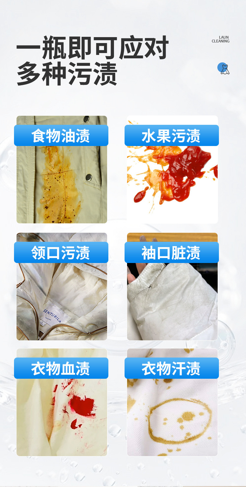 非离子衣物羽绒服多效干洗剂家用去黄渍霉增艳增白不留痕清洁剂