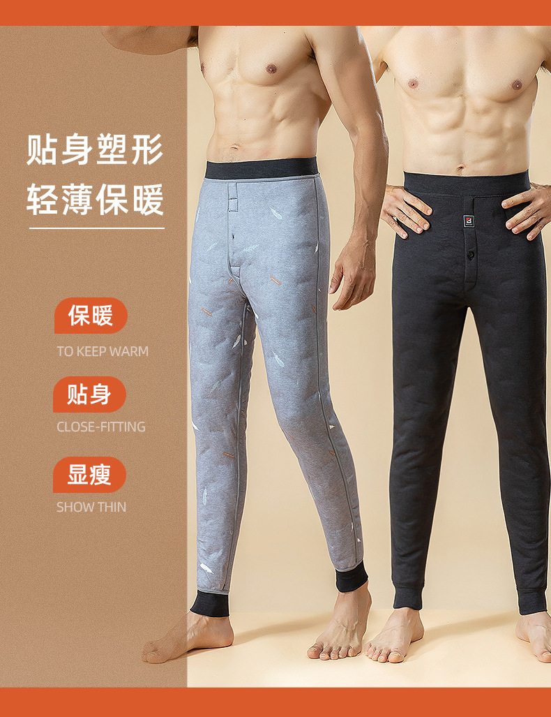 男士保暖裤加绒加厚棉裤冬季紧身打底裤东北发热内穿青年鹅羽绒裤