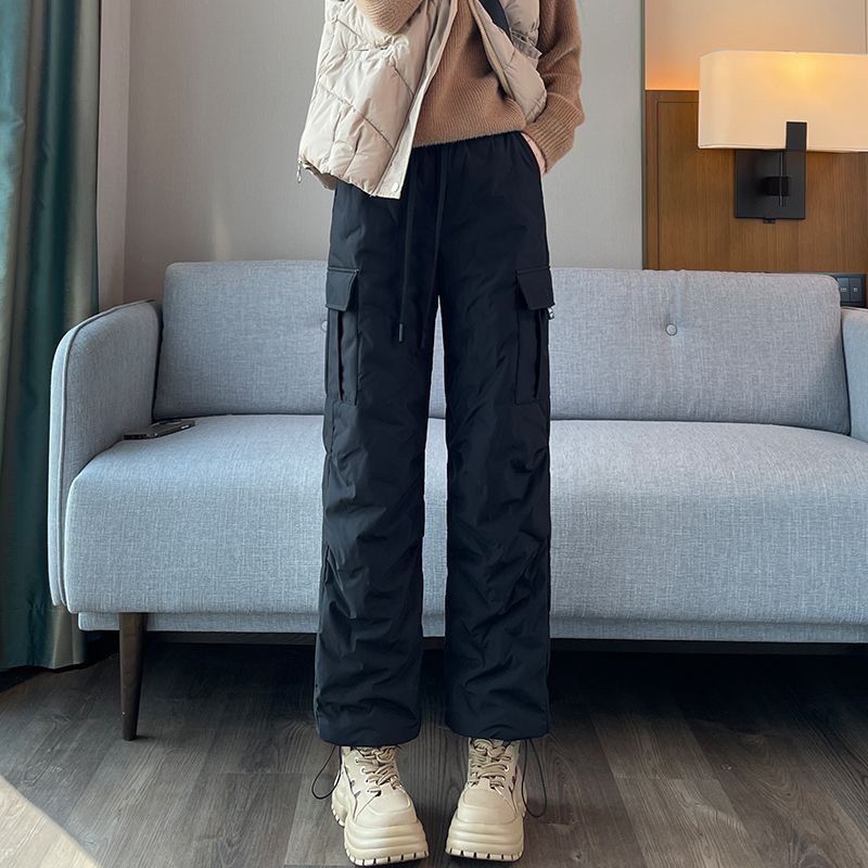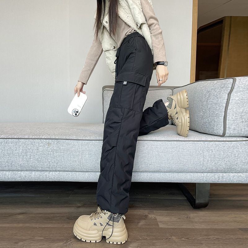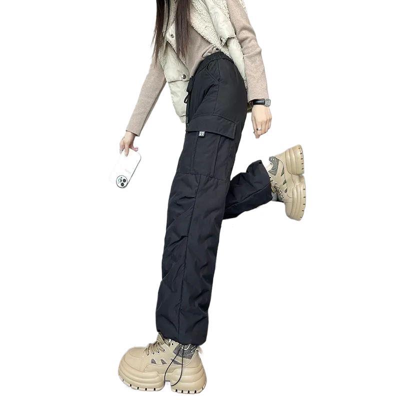 工装羽绒棉裤女外穿冬季2025新款宽松显瘦登山裤高腰防寒东北棉裤