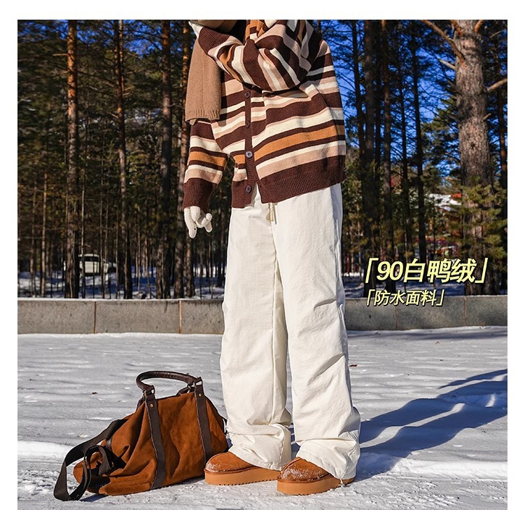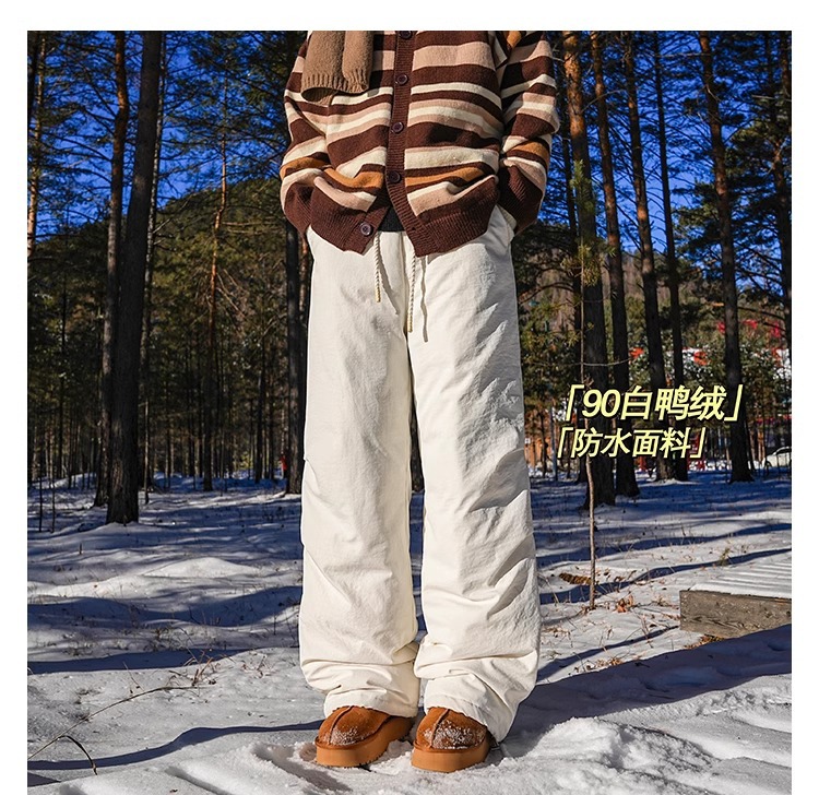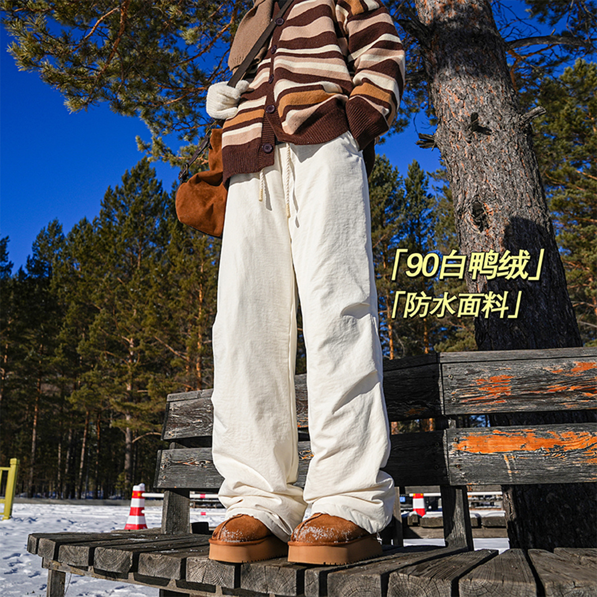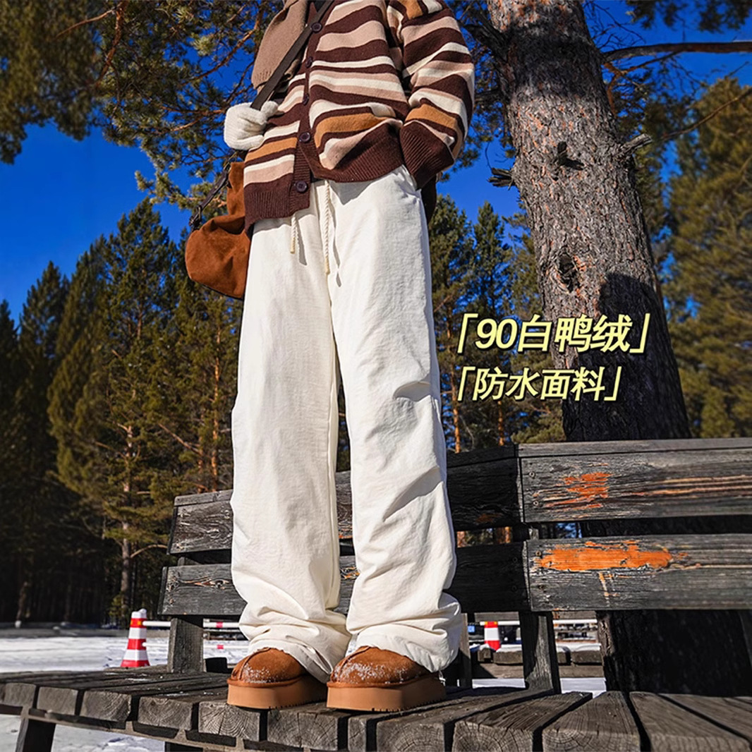 冬季新款防水保暖羽绒裤男潮流多巴胺穿搭外穿宽松直筒防寒滑雪裤