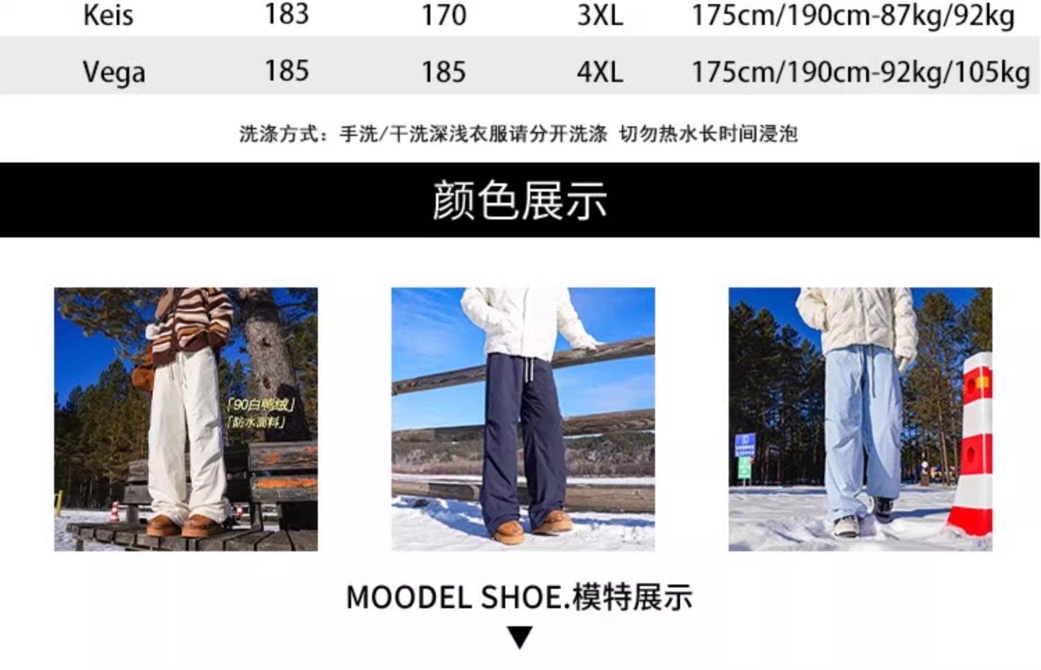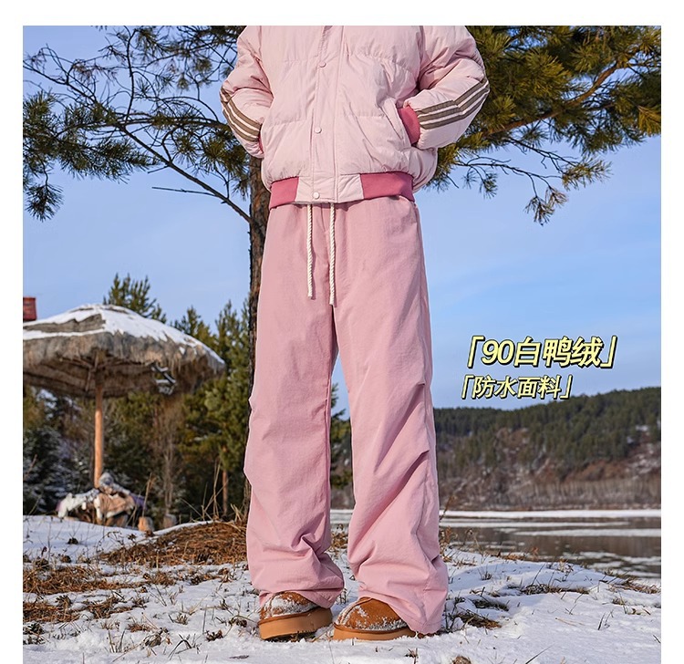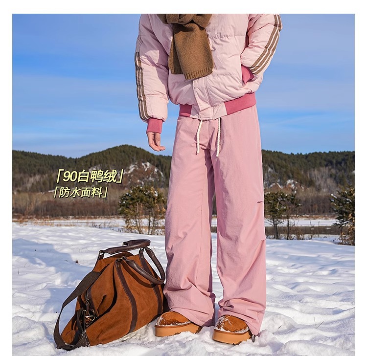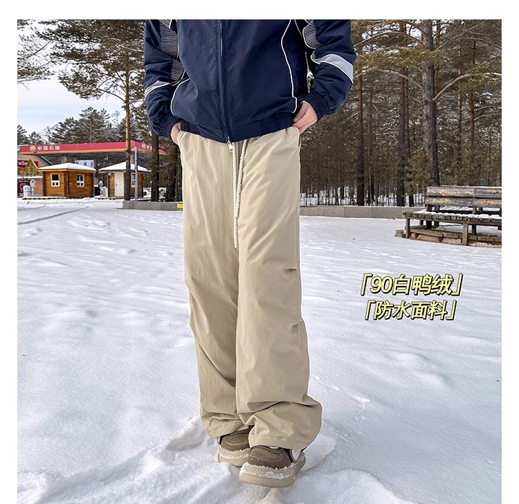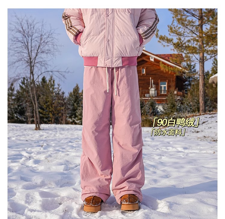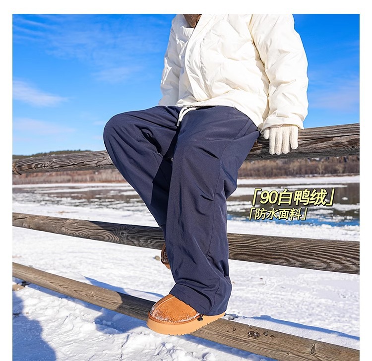 冬季新款防水保暖羽绒裤男潮流多巴胺穿搭外穿宽松直筒防寒滑雪裤