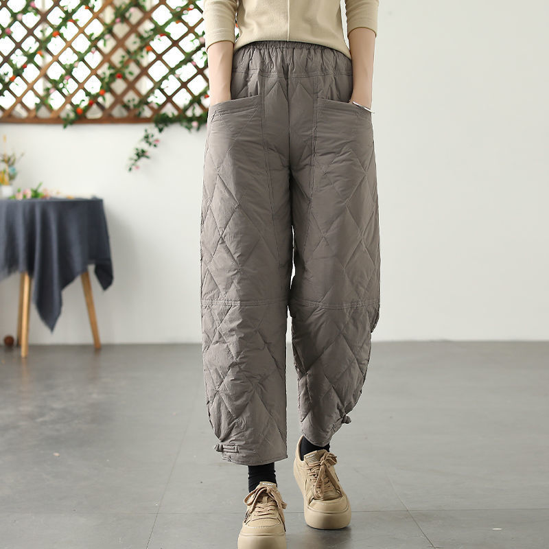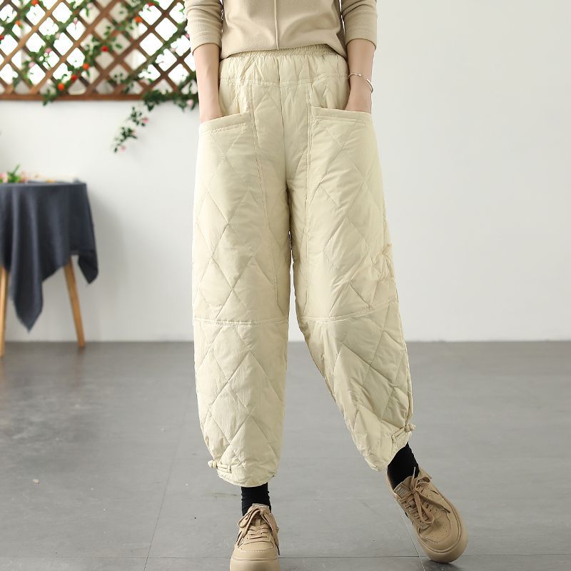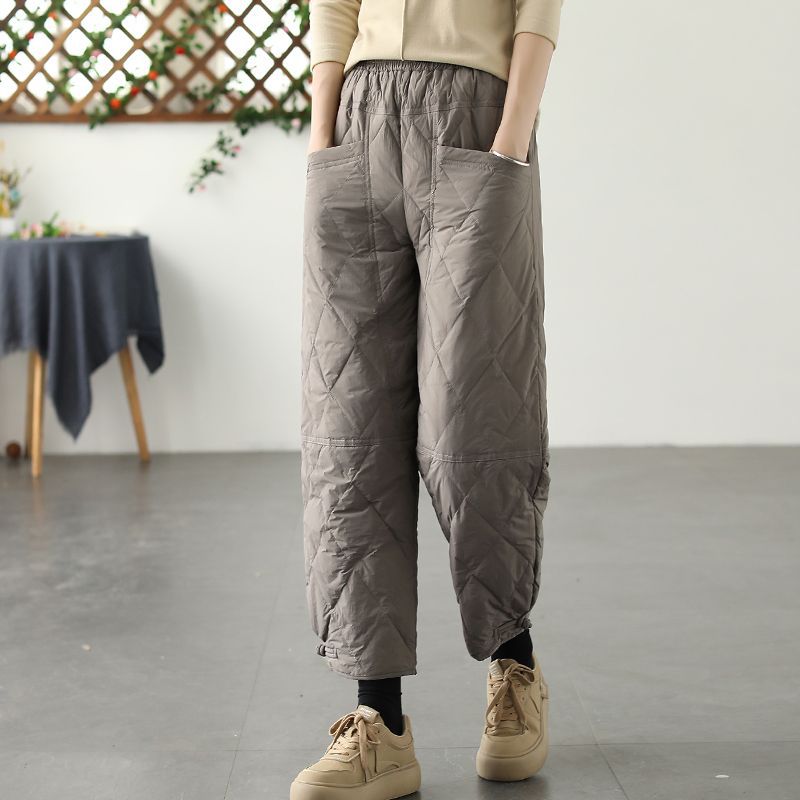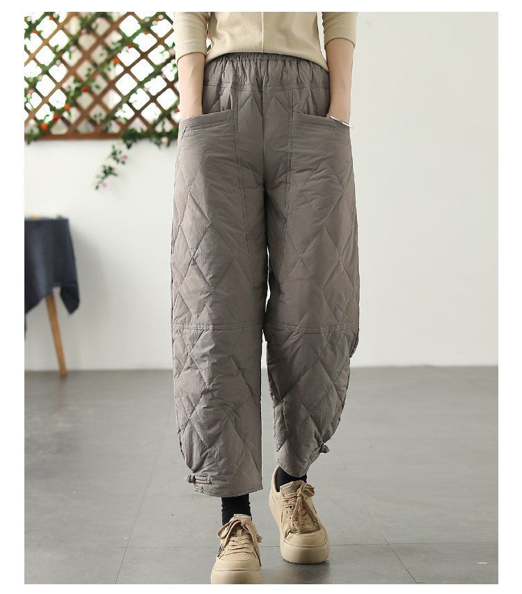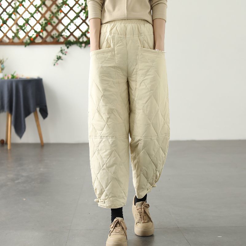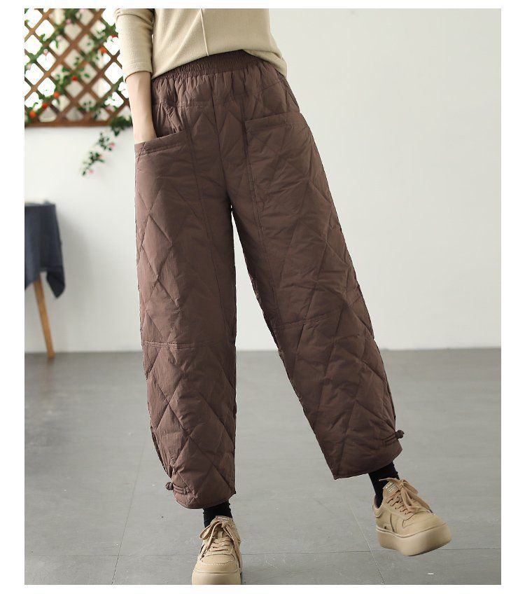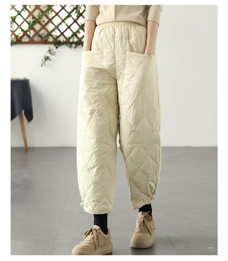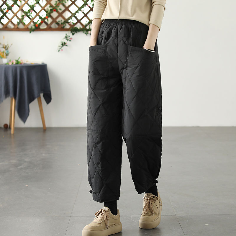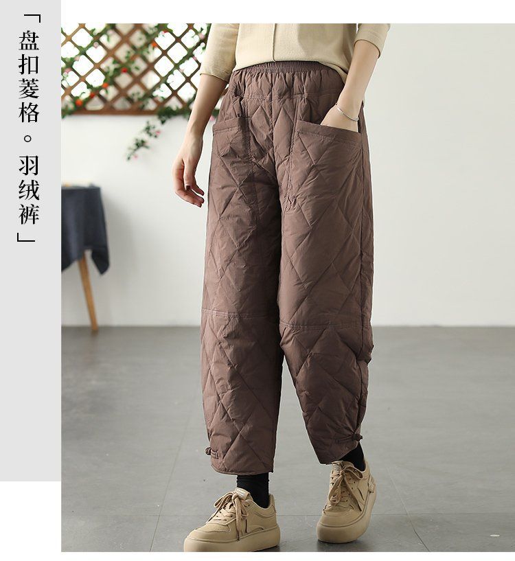 2025冬季高腰加厚羽绒裤女外穿时尚显瘦大码直筒加绒棉裤子保暖