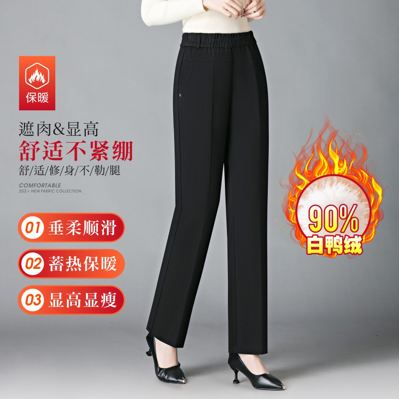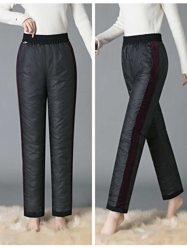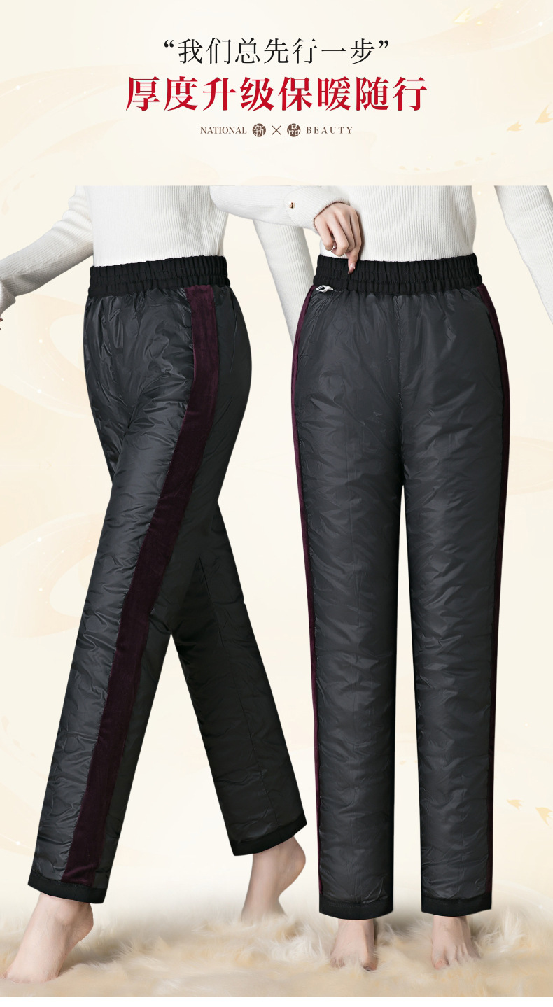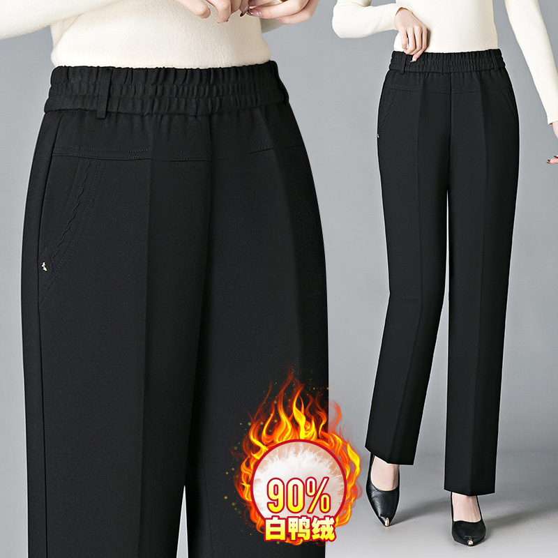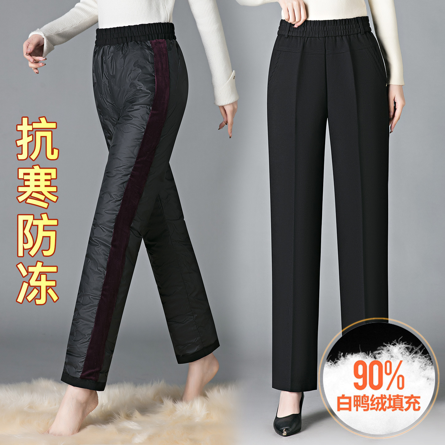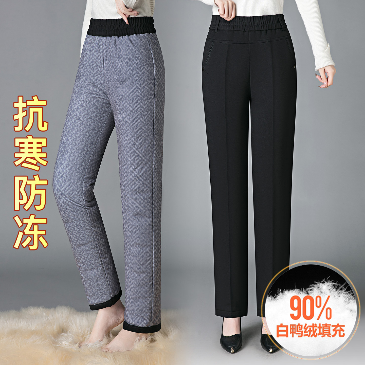 中老年妈妈90绒羽绒裤女外穿冬季款高腰加绒棉裤白鸭绒女士直筒裤
