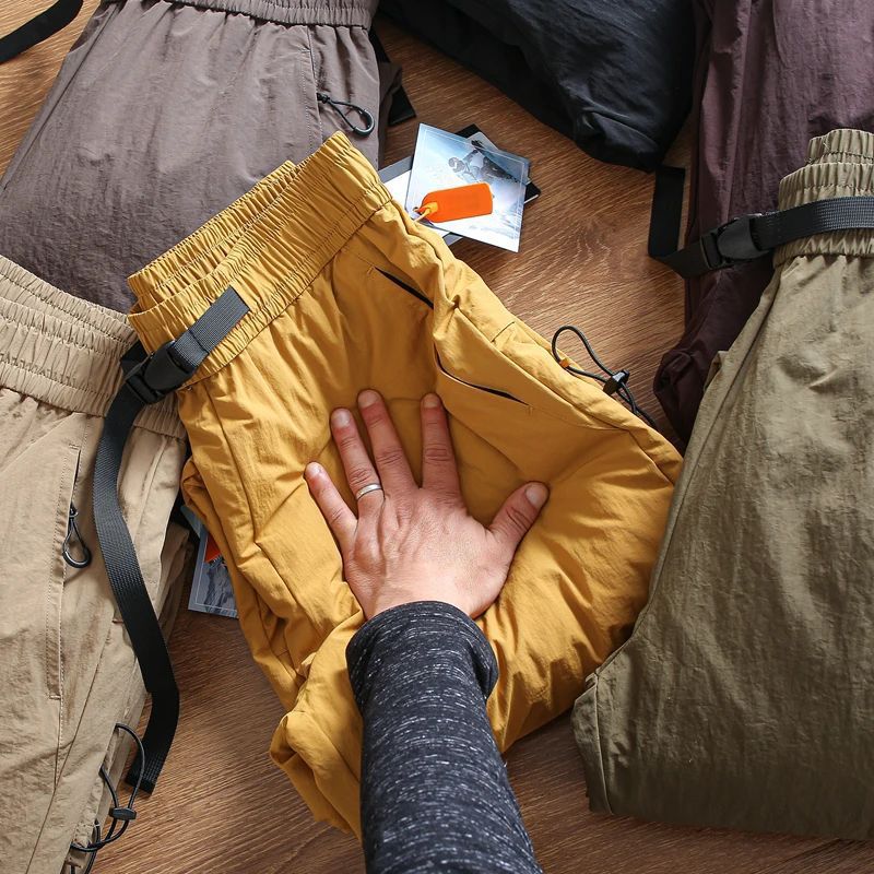 山系户外!御寒保暖!90鸭绒防风防水冬季男士宽松伞兵裤羽绒裤