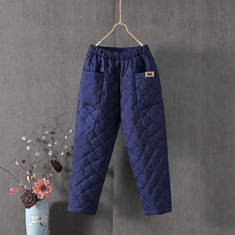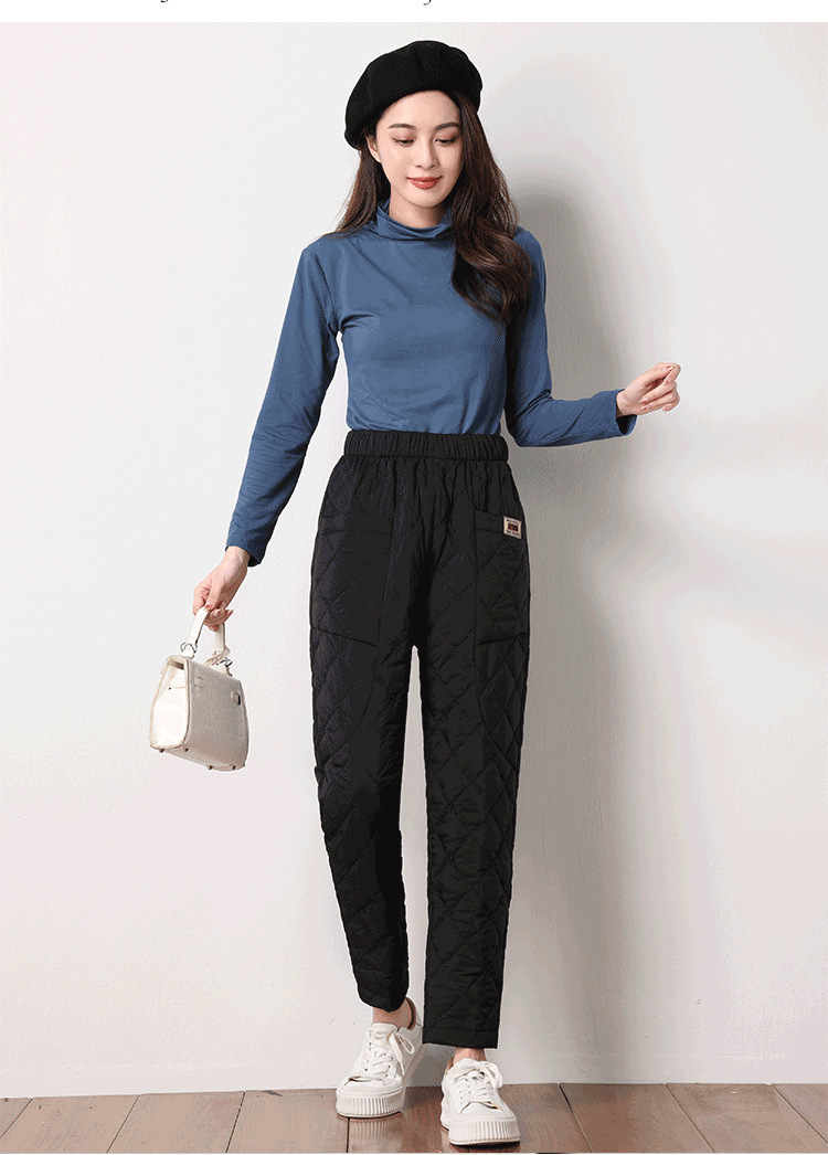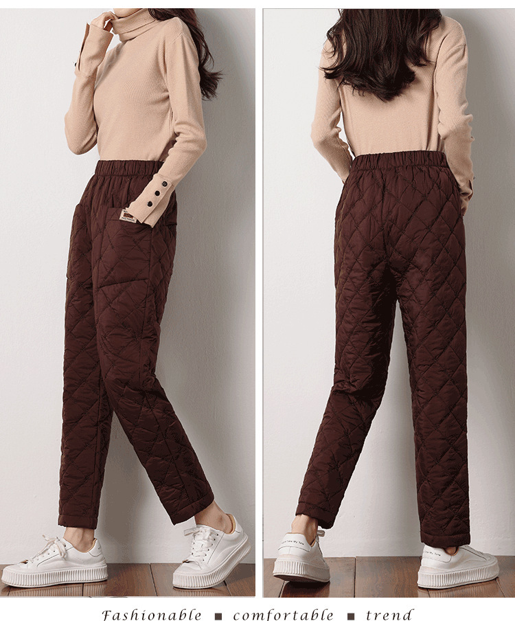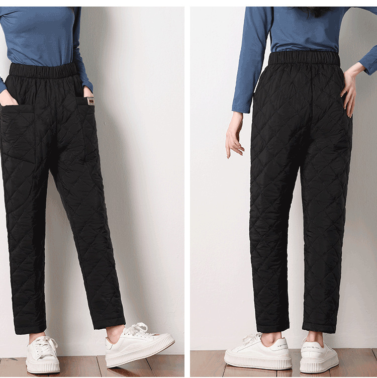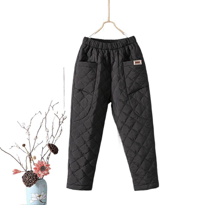 新款中老年羽绒棉裤女外穿高腰防风加厚宽松显瘦百搭直筒女士棉裤