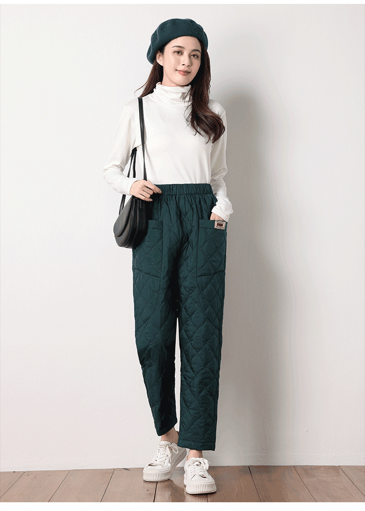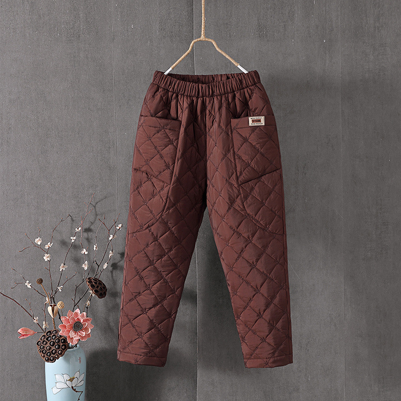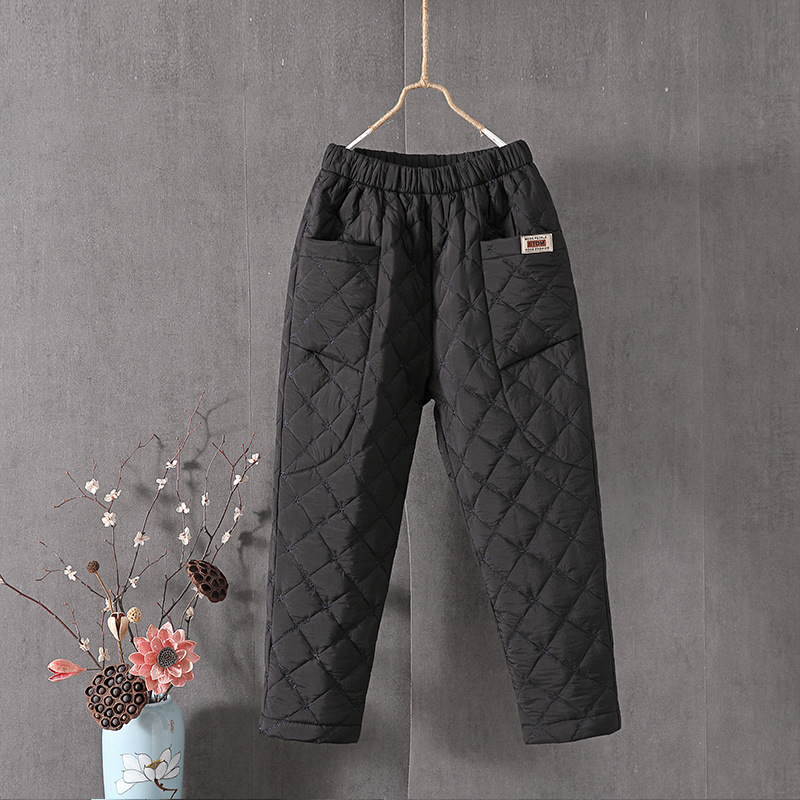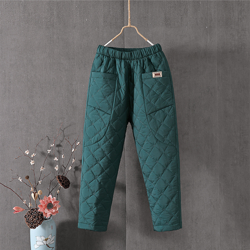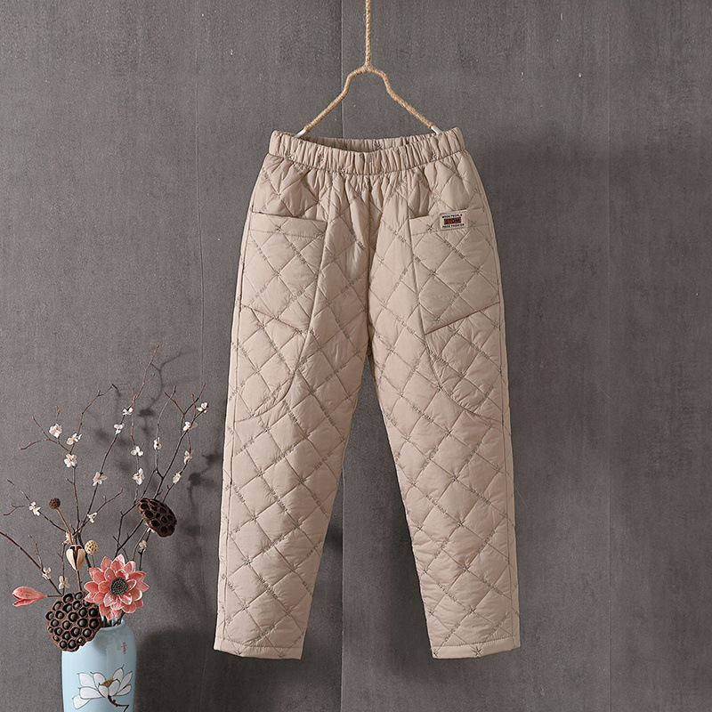新款中老年羽绒棉裤女外穿高腰防风加厚宽松显瘦百搭直筒女士棉裤