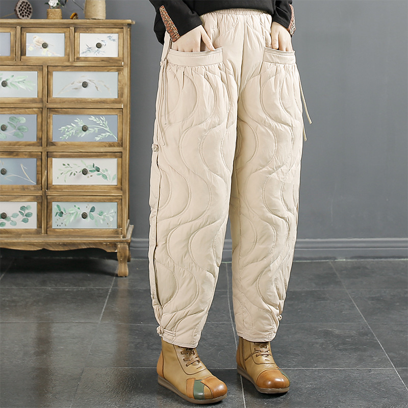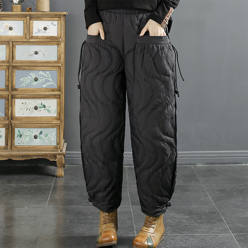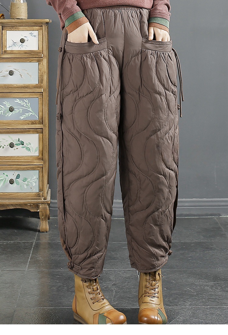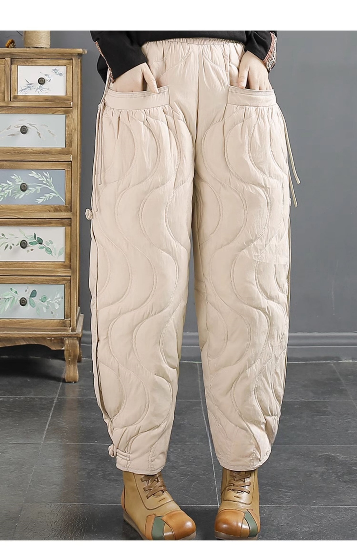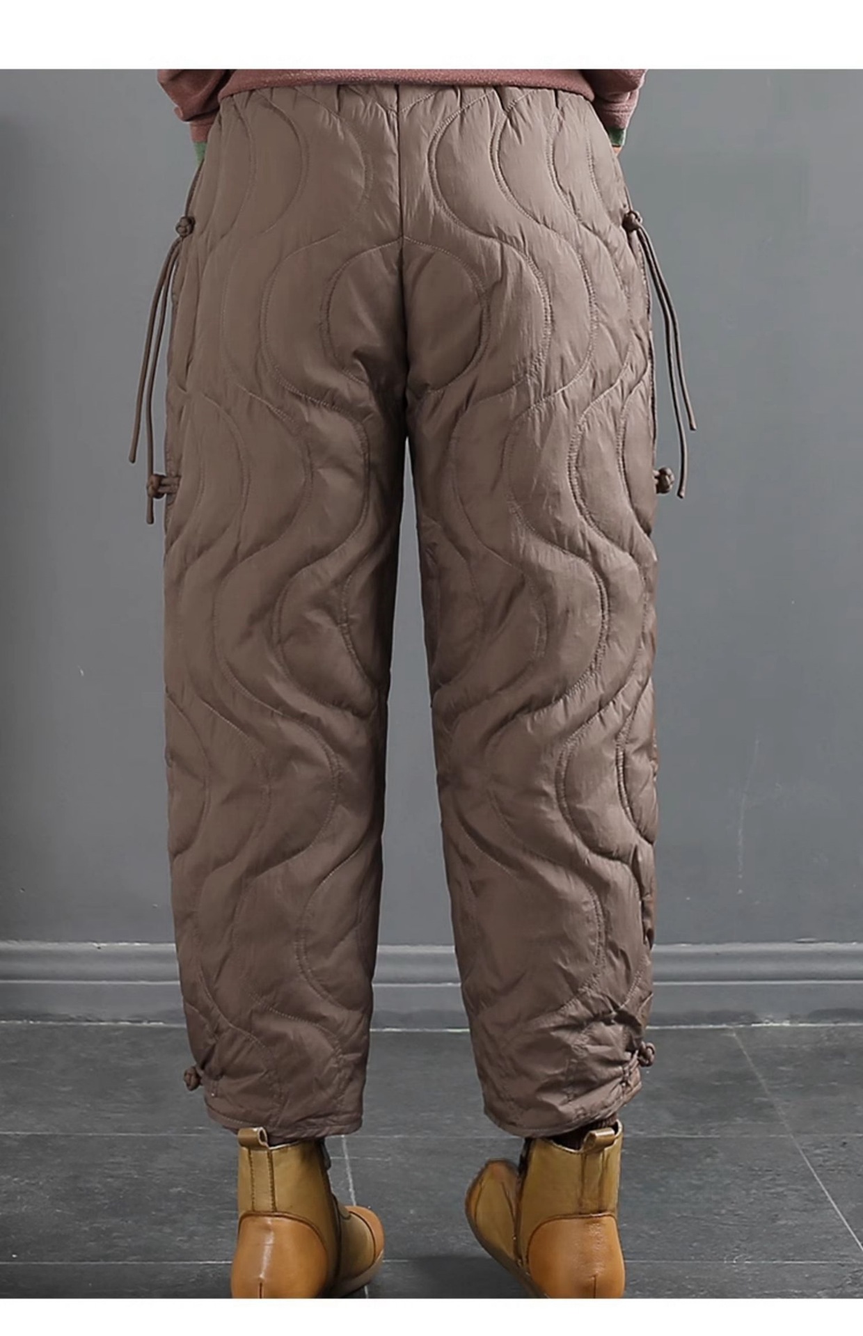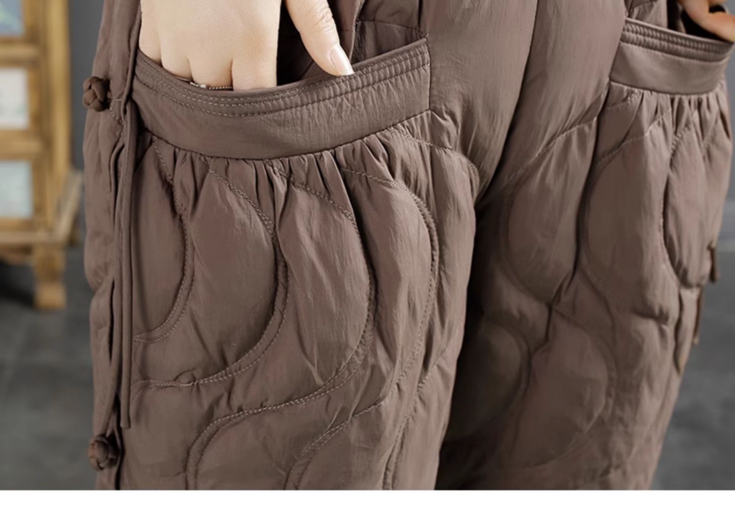 『欣幸』2024冬季新款国风休闲盘扣水波纹羽绒棉裤加厚保暖灯笼裤