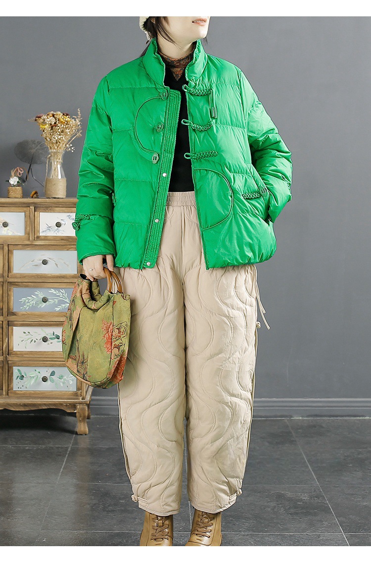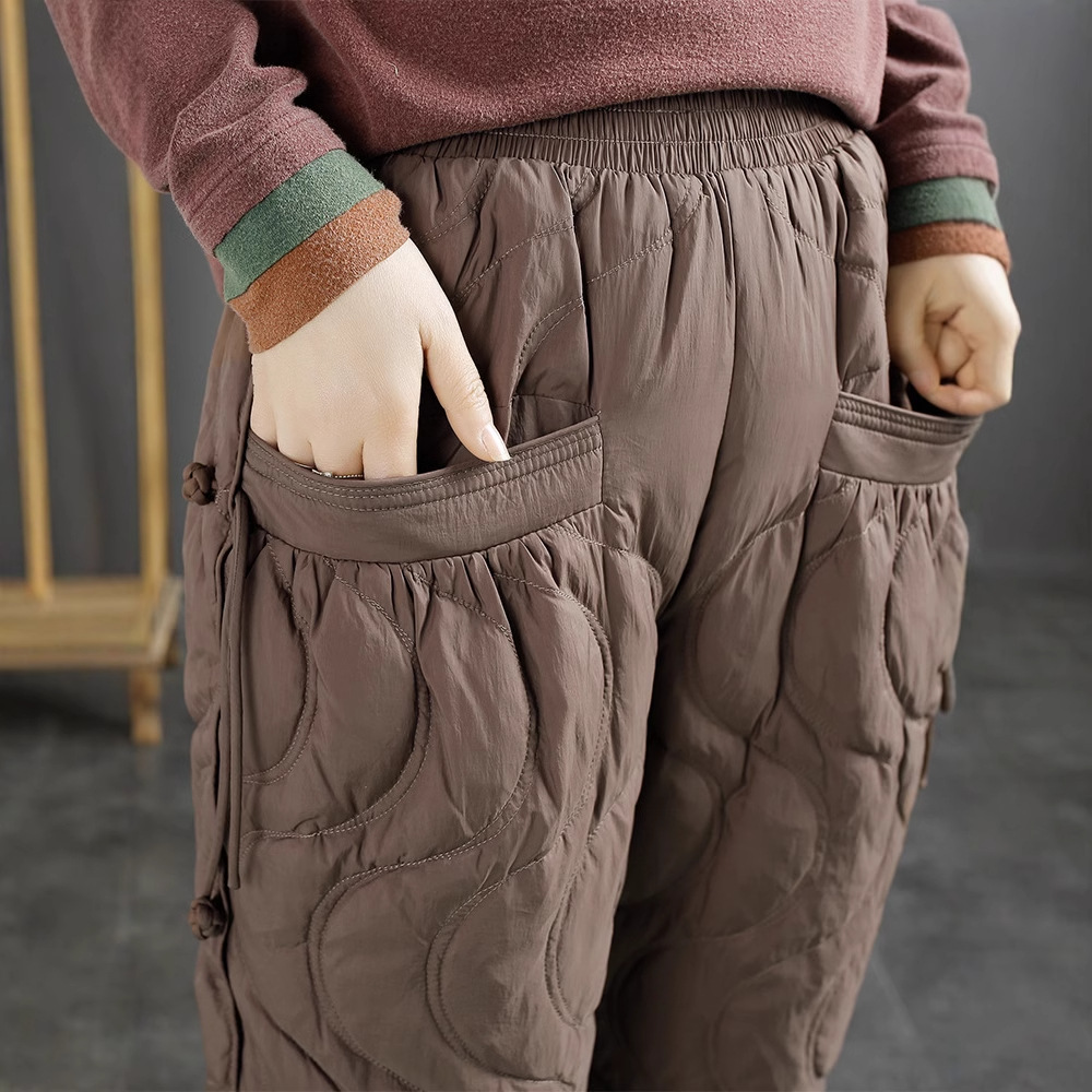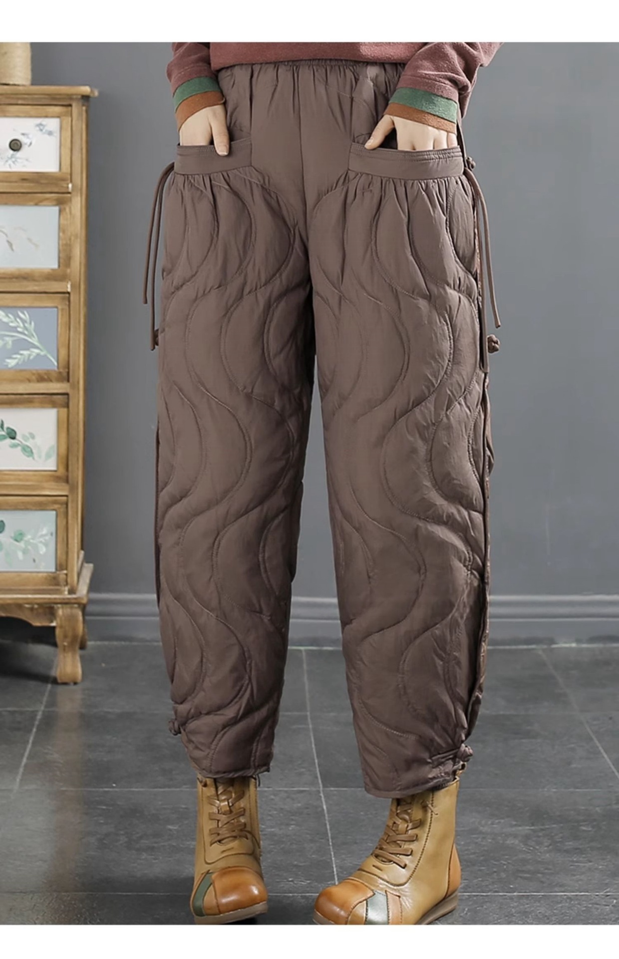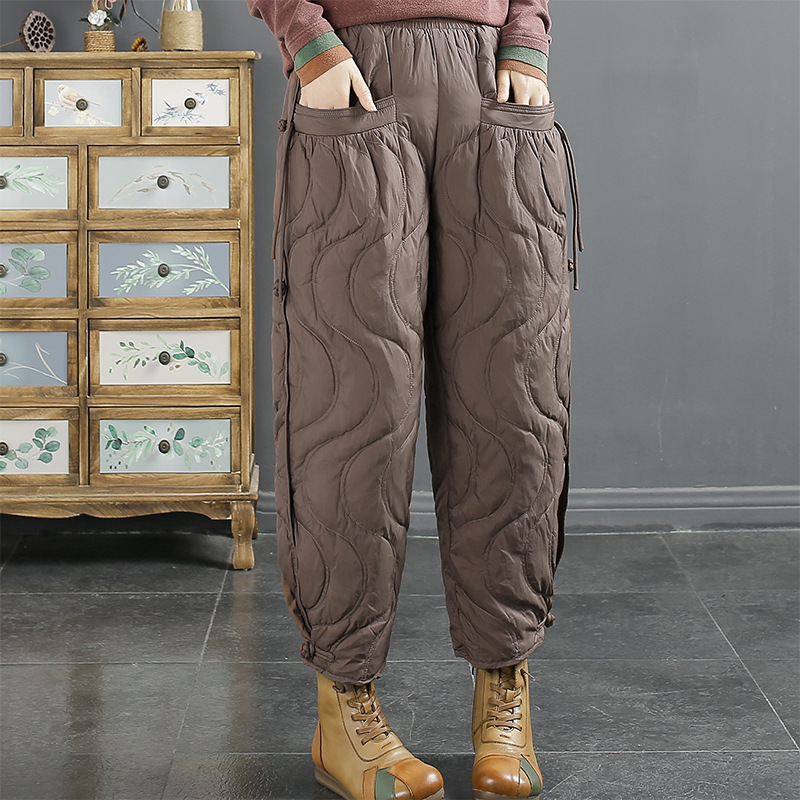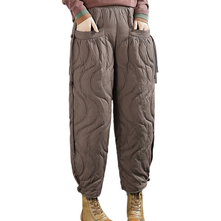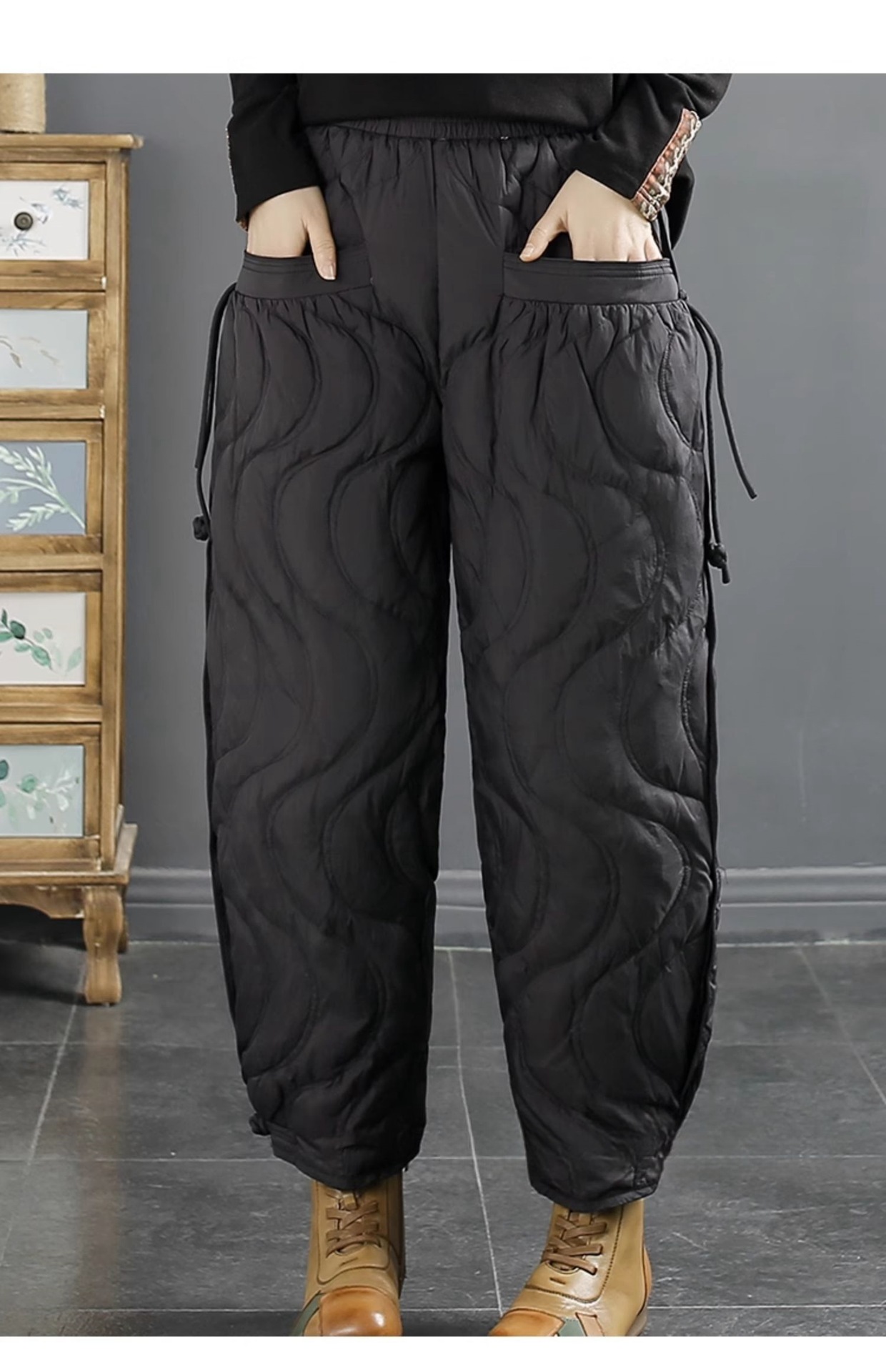 『欣幸』2024冬季新款国风休闲盘扣水波纹羽绒棉裤加厚保暖灯笼裤