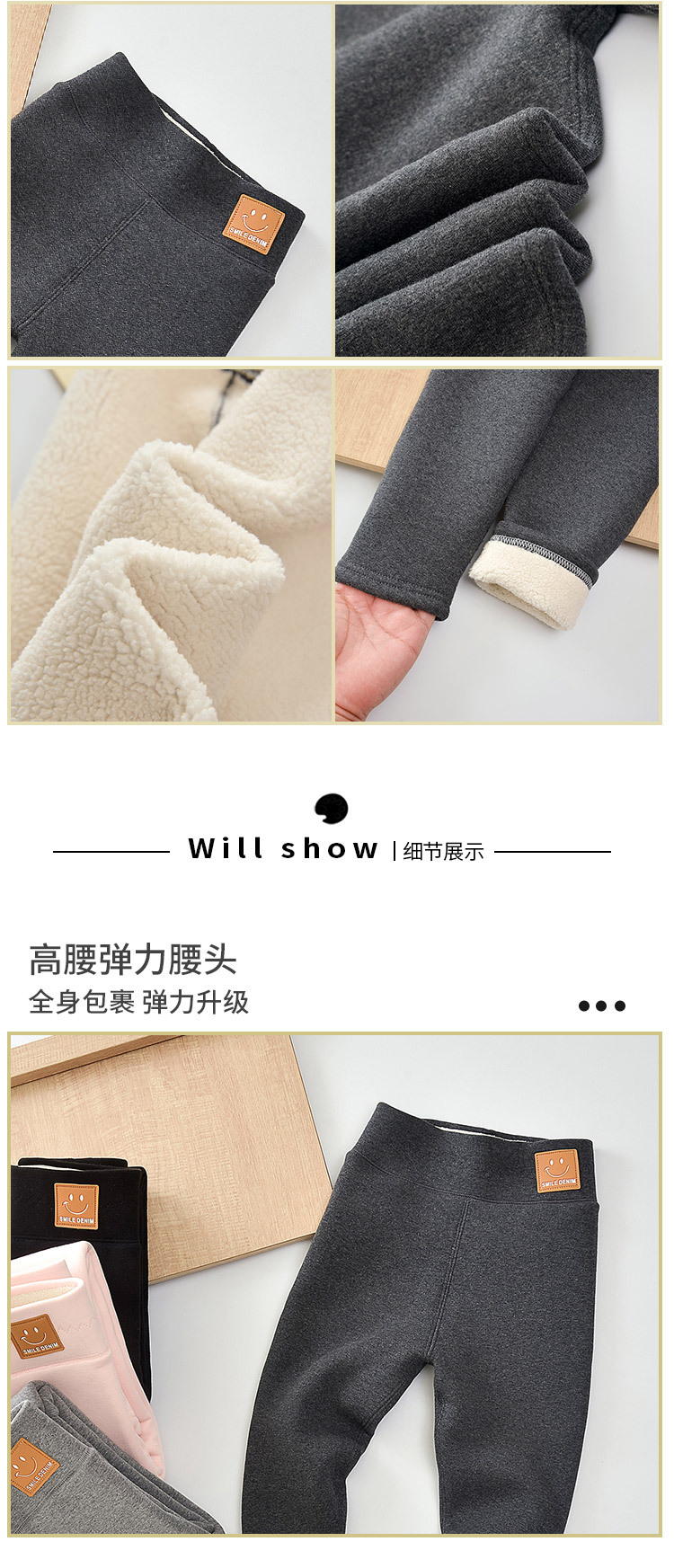 女童羊羔绒打底裤加绒加厚秋冬款高腰保暖外穿洋气韩版一体纯棉裤