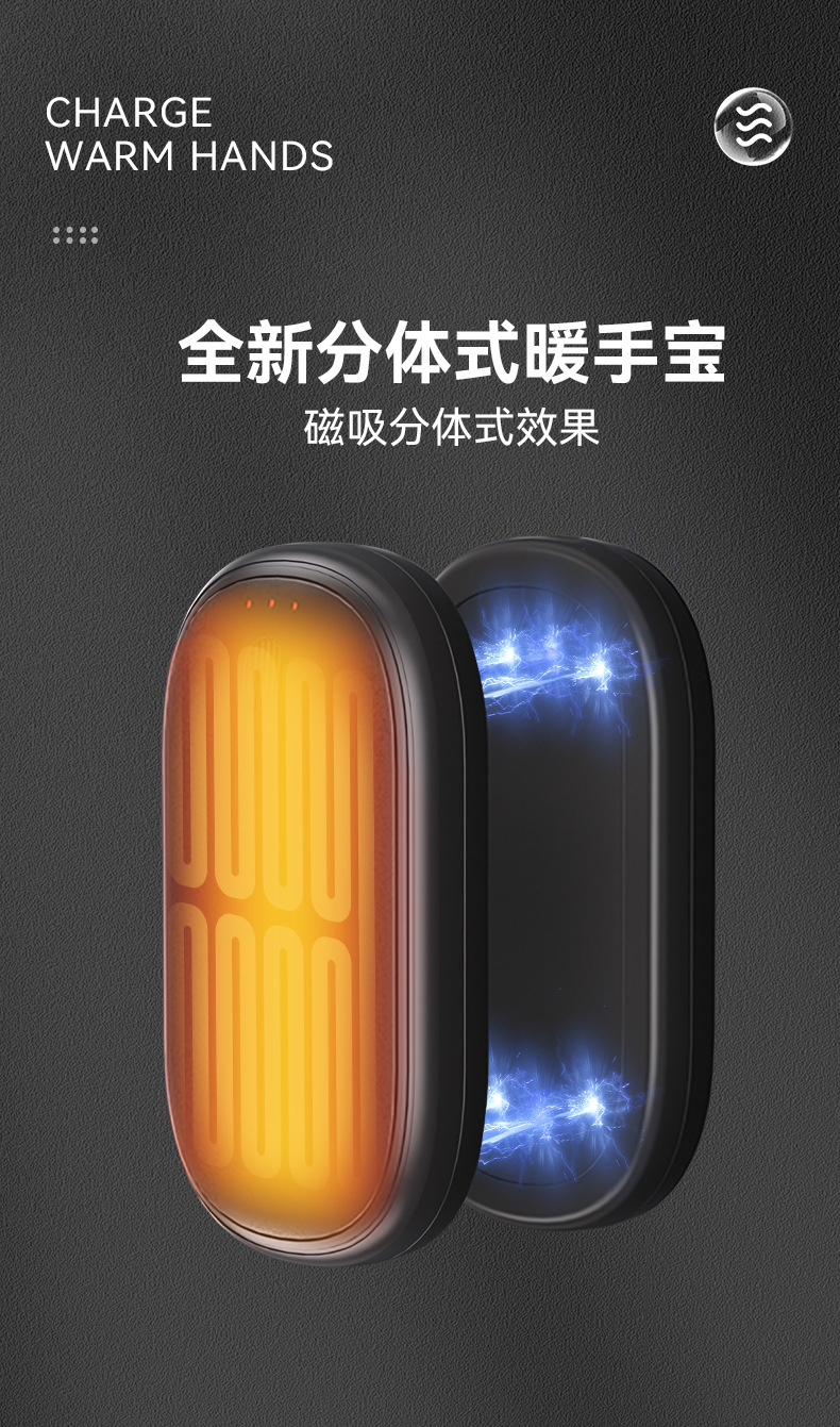 跨境磁吸暖手宝分体式迷你手套袜子暖手宝usb充电便携暖宝宝批发