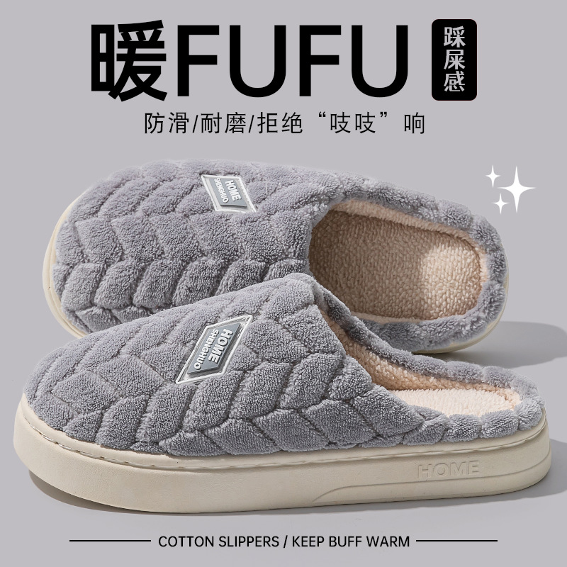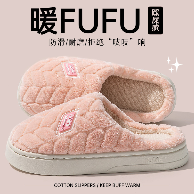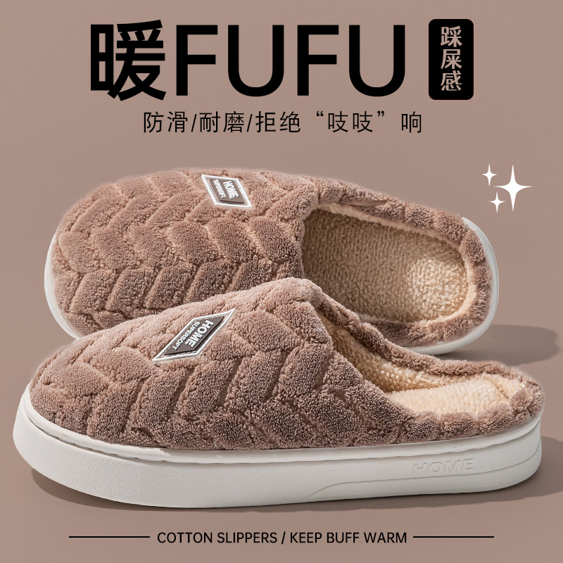 秋冬厚底毛绒拖鞋家用女士室内家居简约保暖防滑月子冬季棉拖鞋男