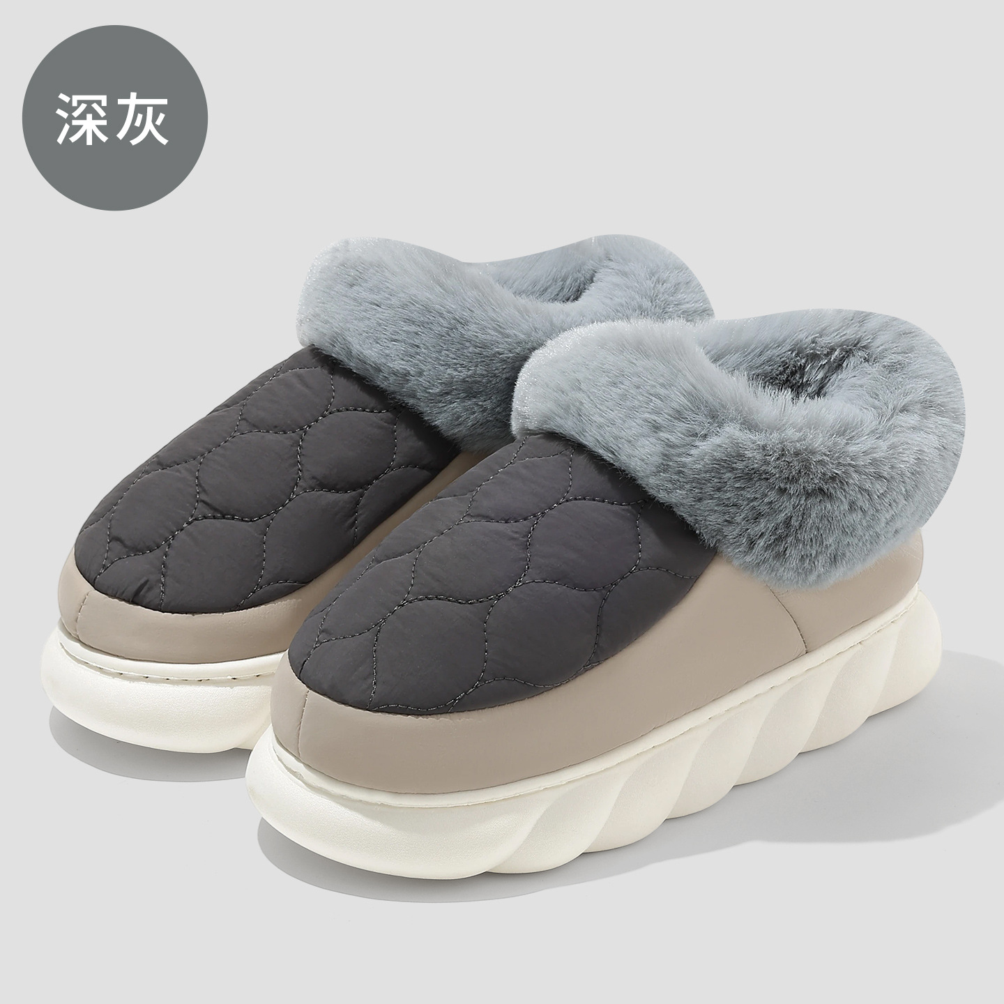 羽绒棉拖鞋男士防滑保暖居家防水棉拖女款家居厚底毛拖鞋冬季批发